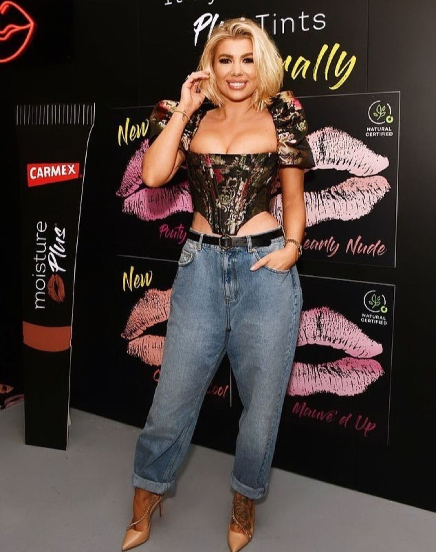 La voluptuosa estrella inglesa de reality TV Olivia Buckland fue vista mientras asistía al lanzamiento de la nueva tienda emergente Carmex Moisture Plus en Noho Studios, Great Titchfield Street en Londres, 12/03/2019.