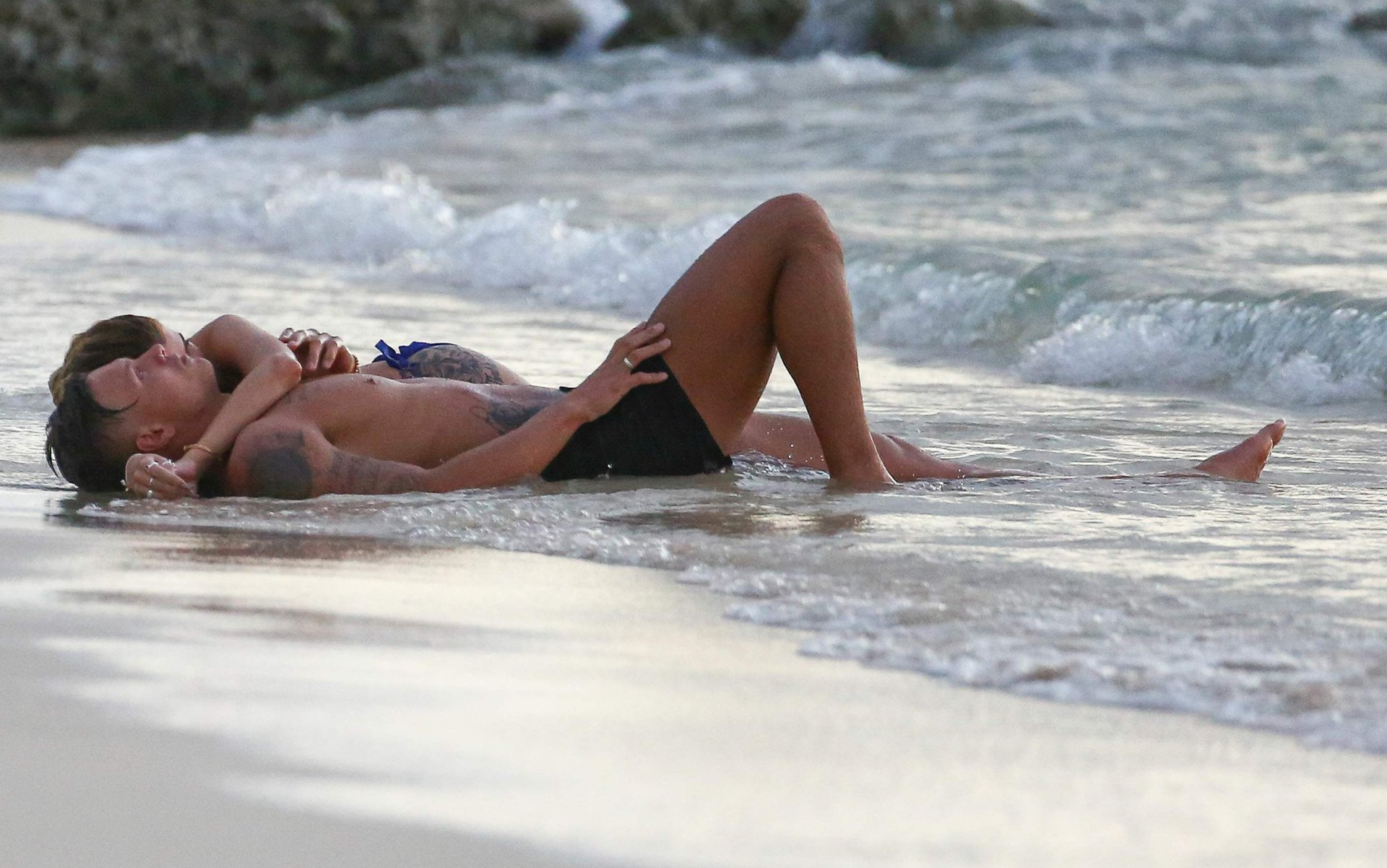 Olivia Buckland lleva un pequeño bikini azul con su pareja en Barbados, 31/10/2016. ¡Está lista para tener sexo en la playa! Olivia Buckland es una estrella británica de reality (Love Island). Edad: 22