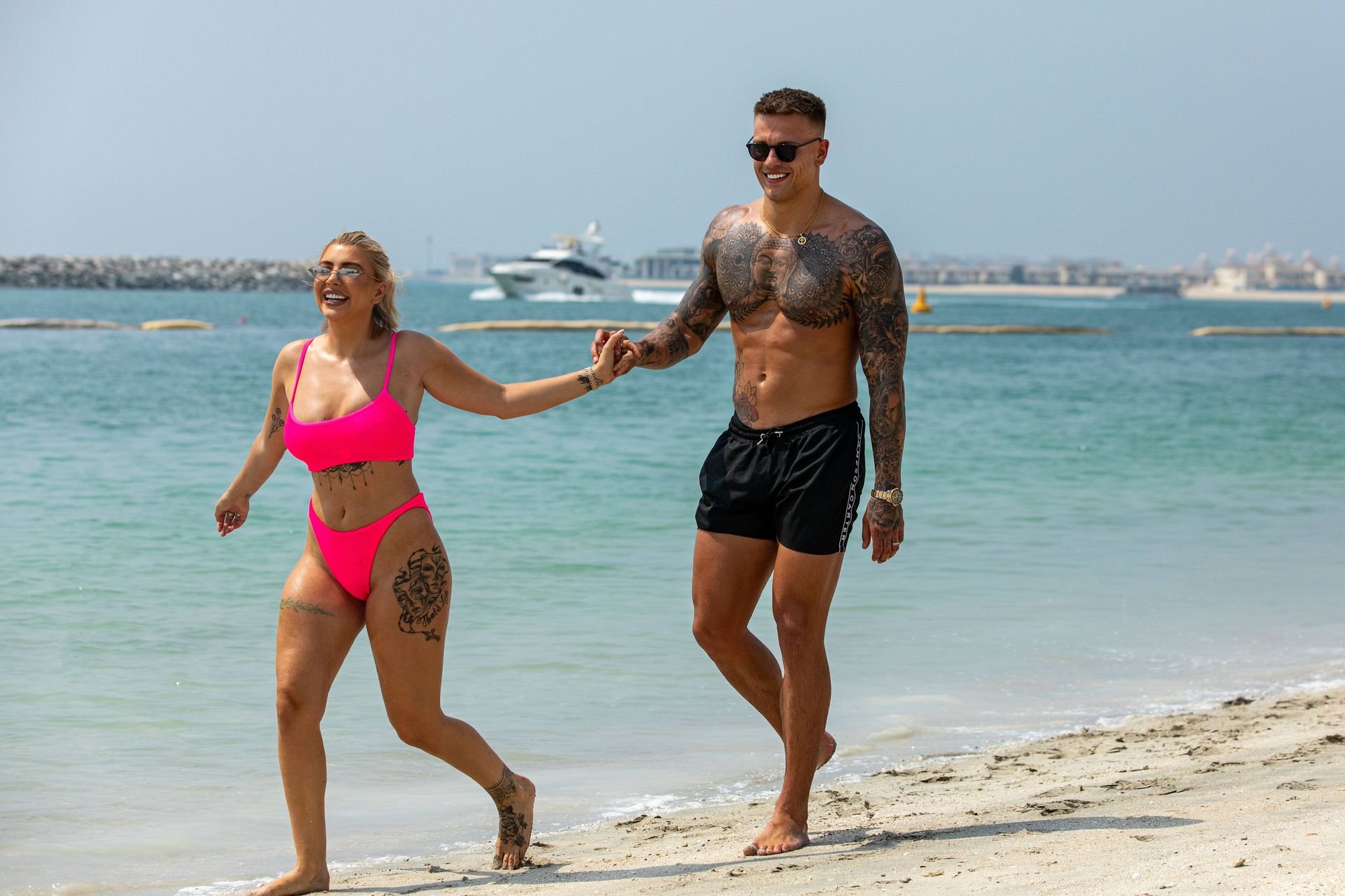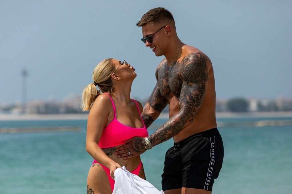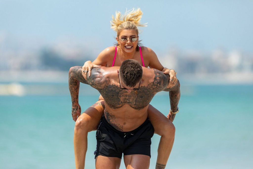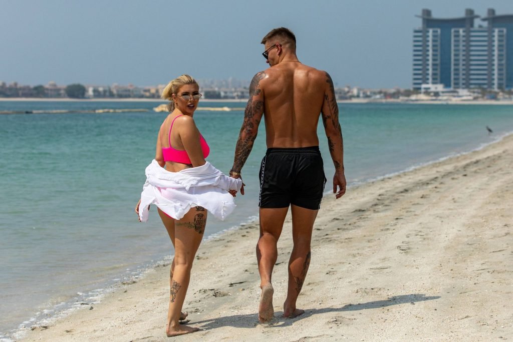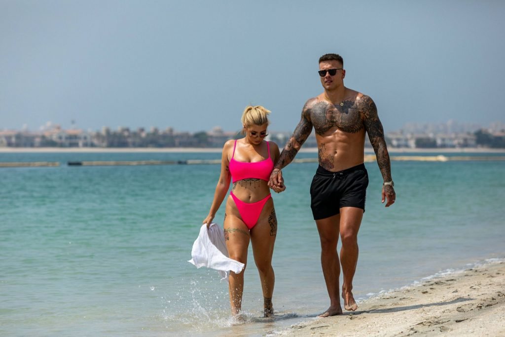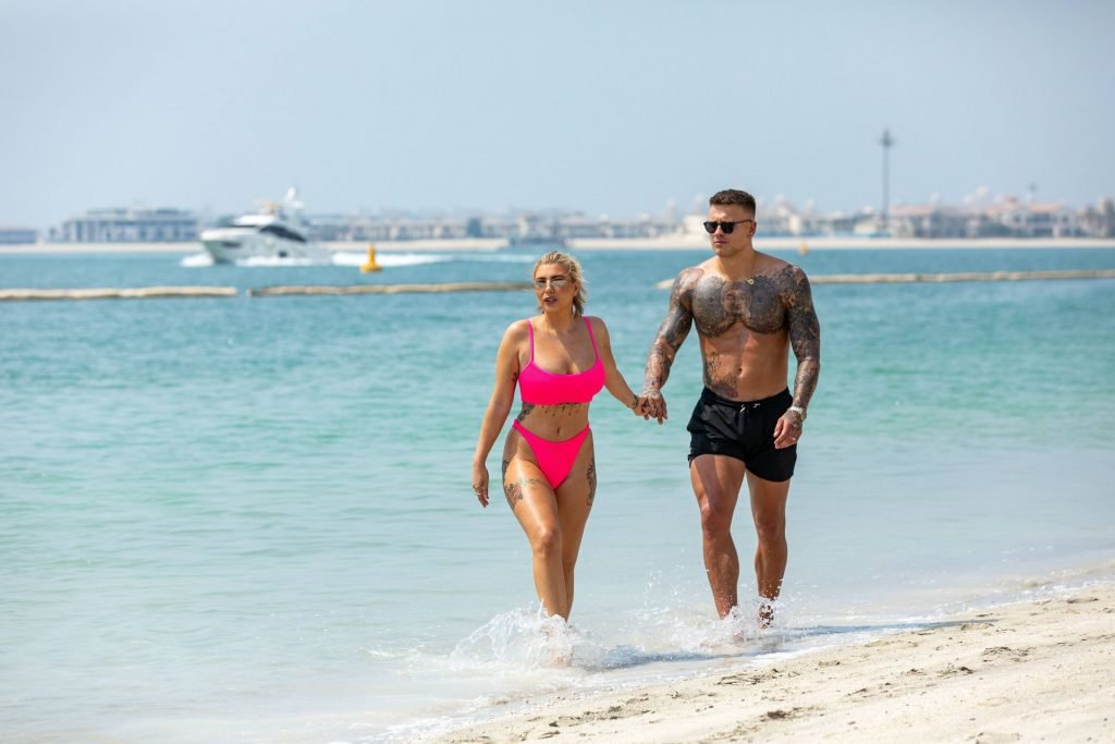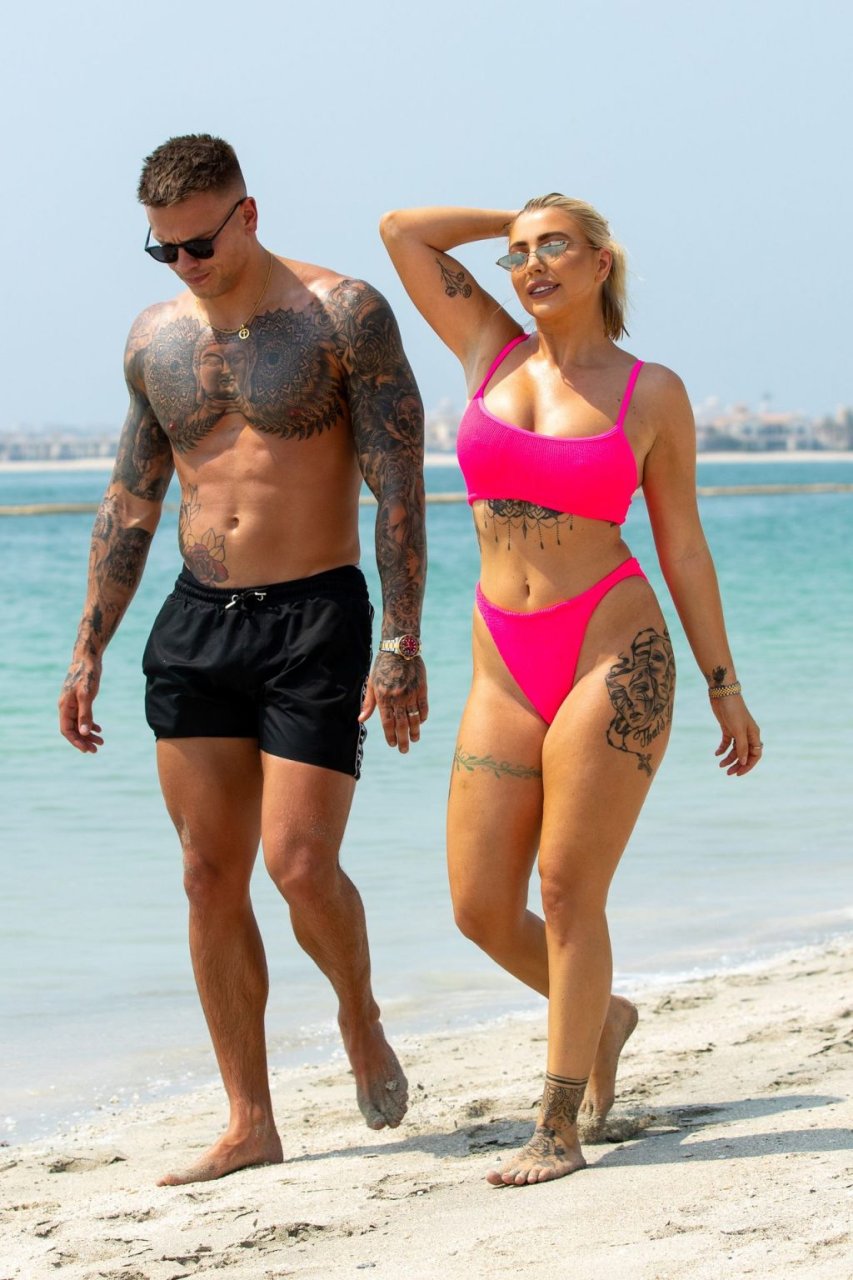 Las estrellas de la televisión de realidad Olivia Buckland y Alex Bowen fueron vistas en una playa en Dubái, 10/03/2019. Olivia fue vista mostrando su envidiable cuerpo con un bikini rosa.