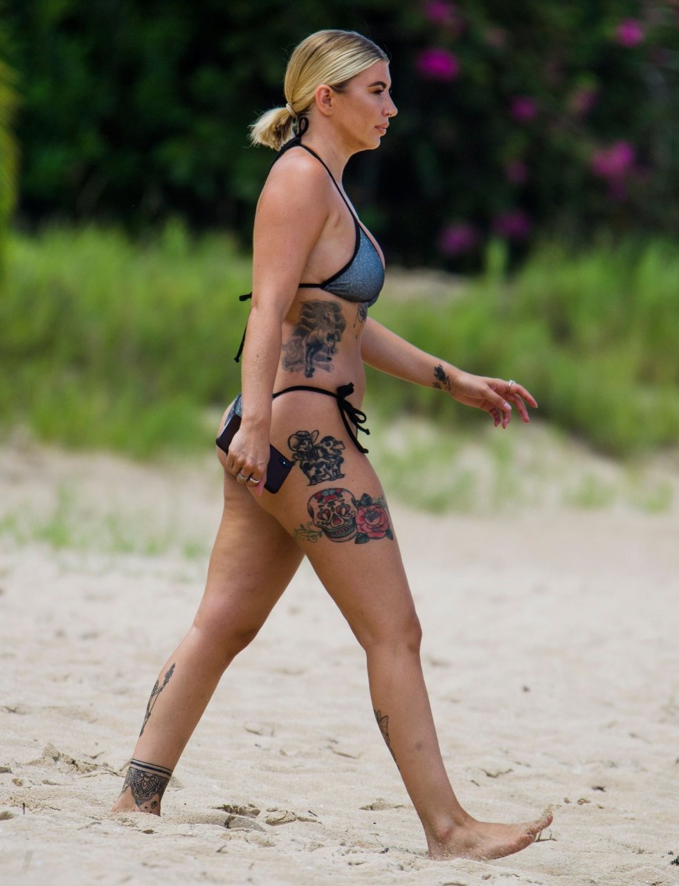 La estrella curvilínea de la televisión de realidad Olivia Buckland muestra su cuerpo en bikini durante sus vacaciones en Barbados, 28/07/2019.
