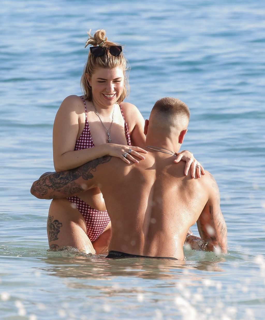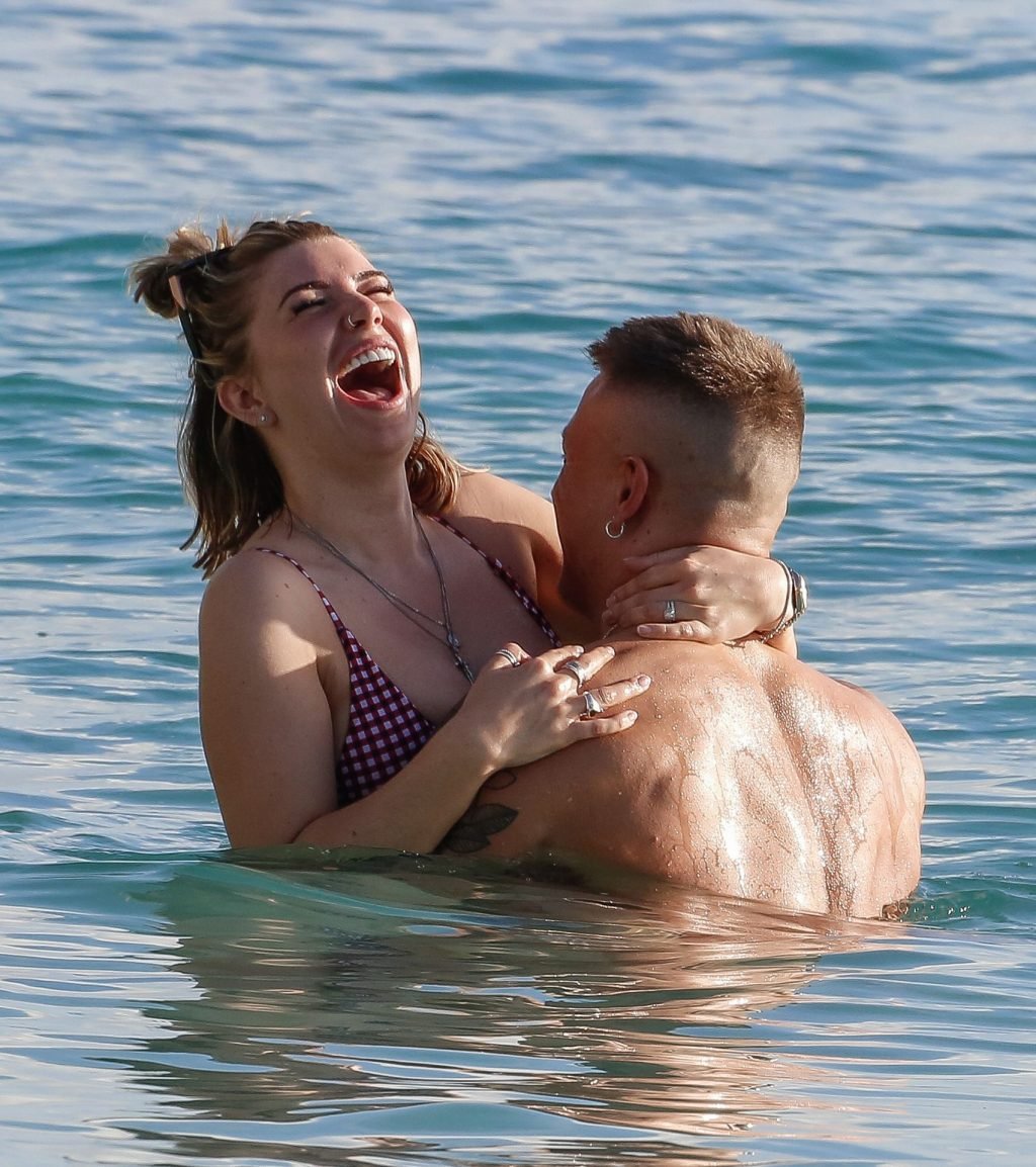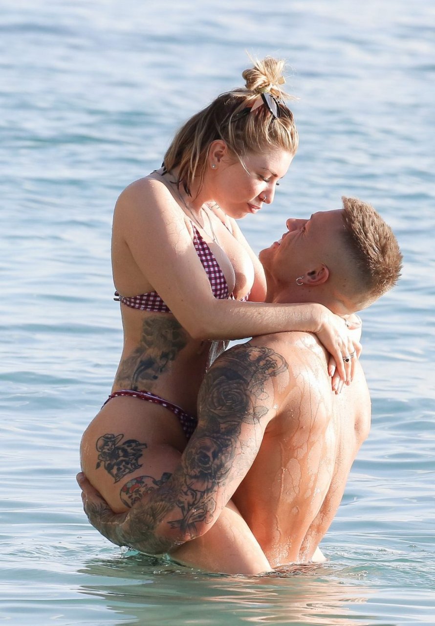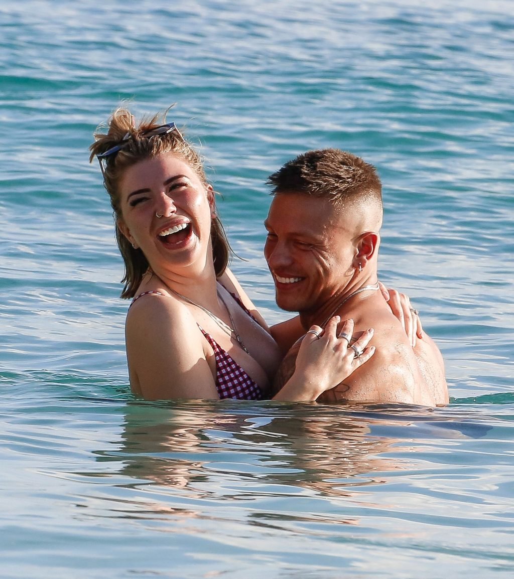 La estrella de reality TV Olivia Buckland y su esposo Alex Bowen son vistos en la playa durante sus vacaciones en Barbados, 20/03/2019.