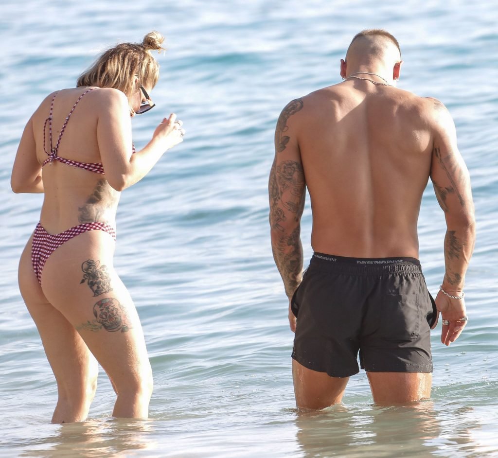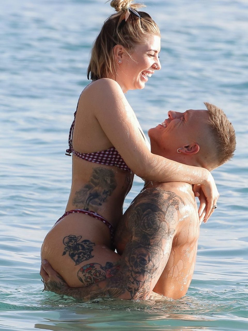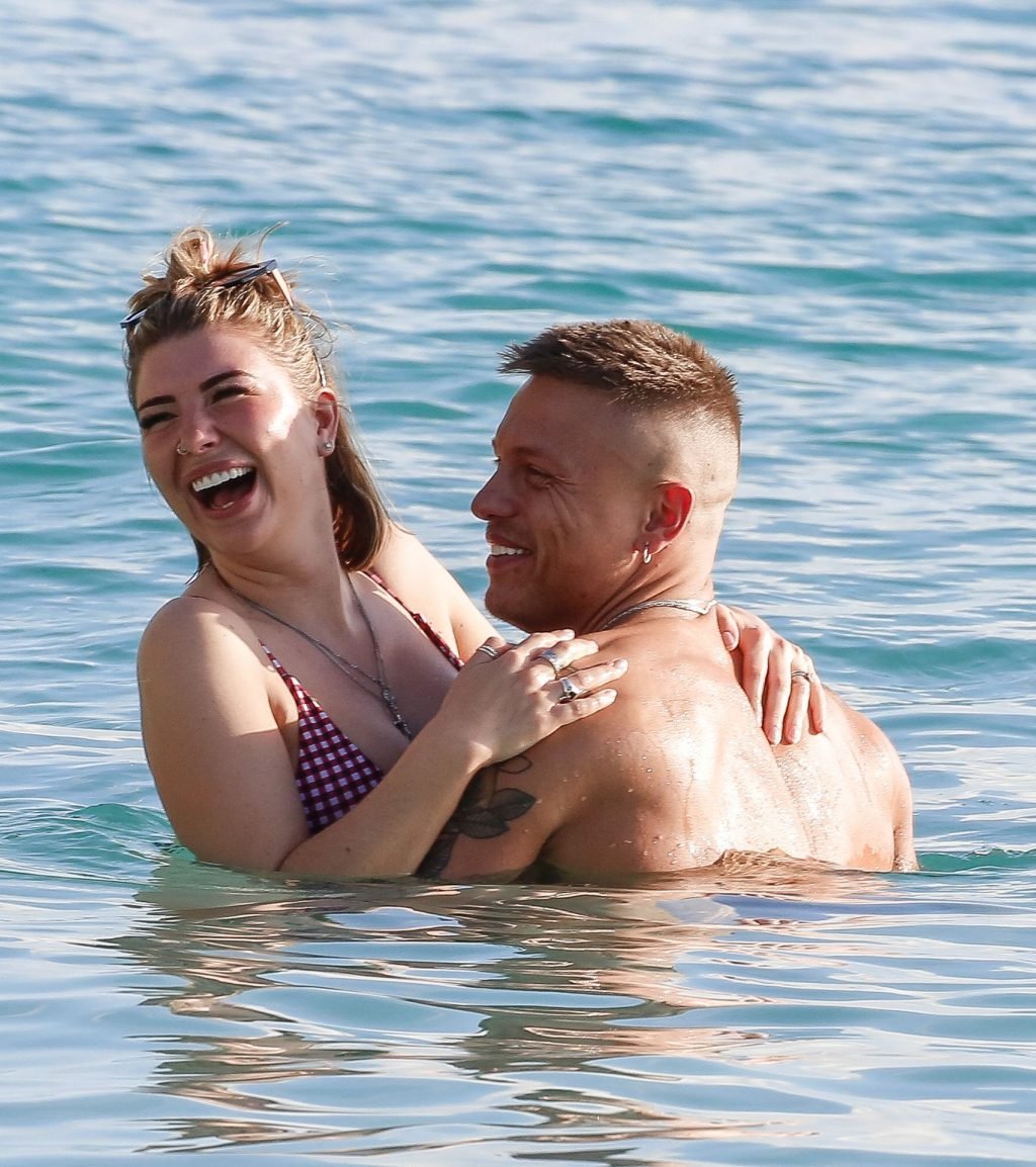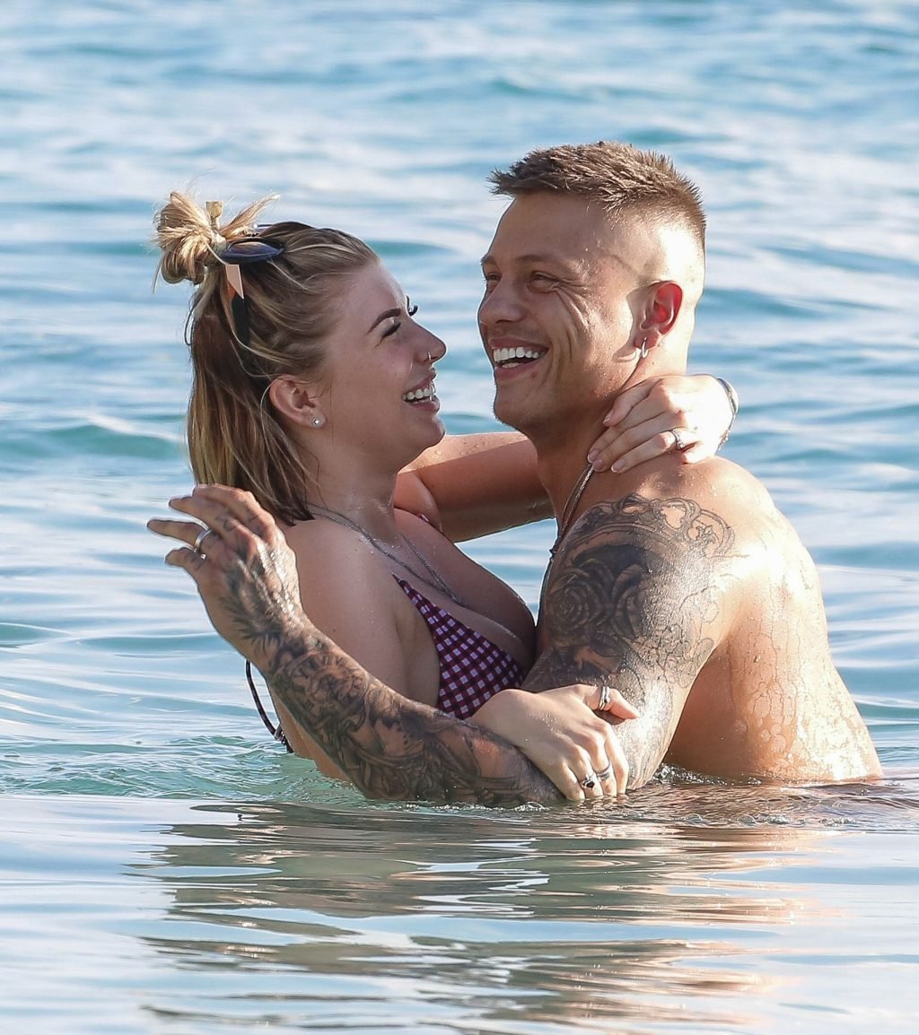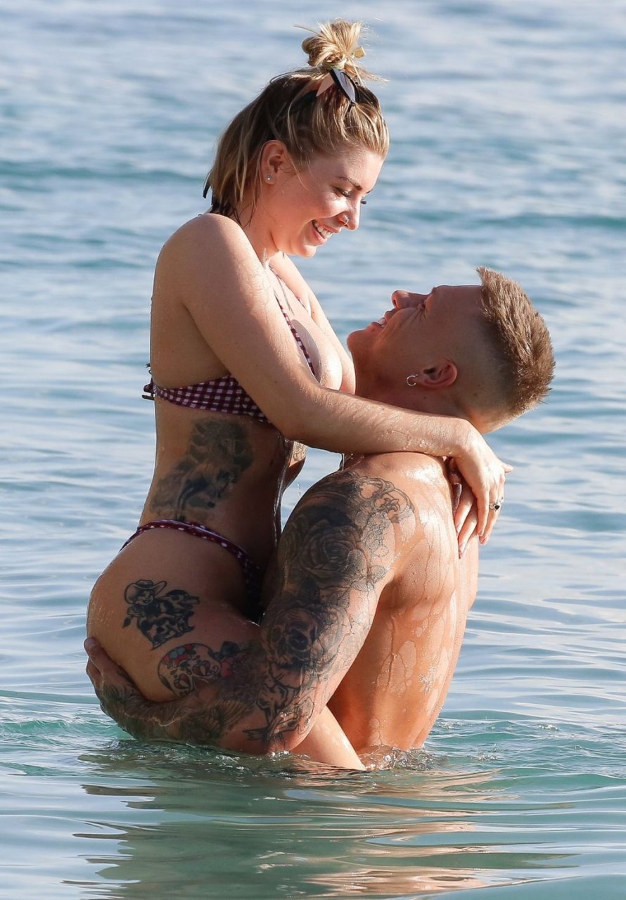 La estrella de reality TV Olivia Buckland y su esposo Alex Bowen son vistos en la playa durante sus vacaciones en Barbados, 20/03/2019.