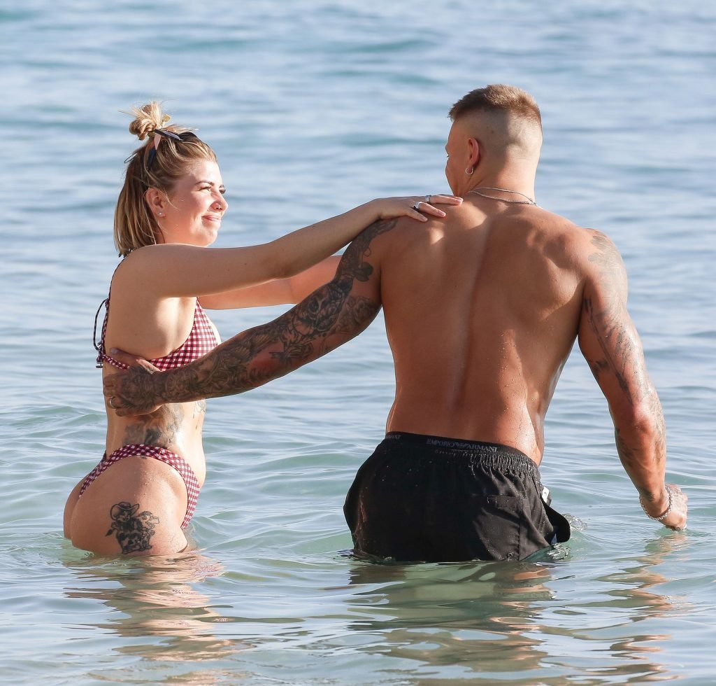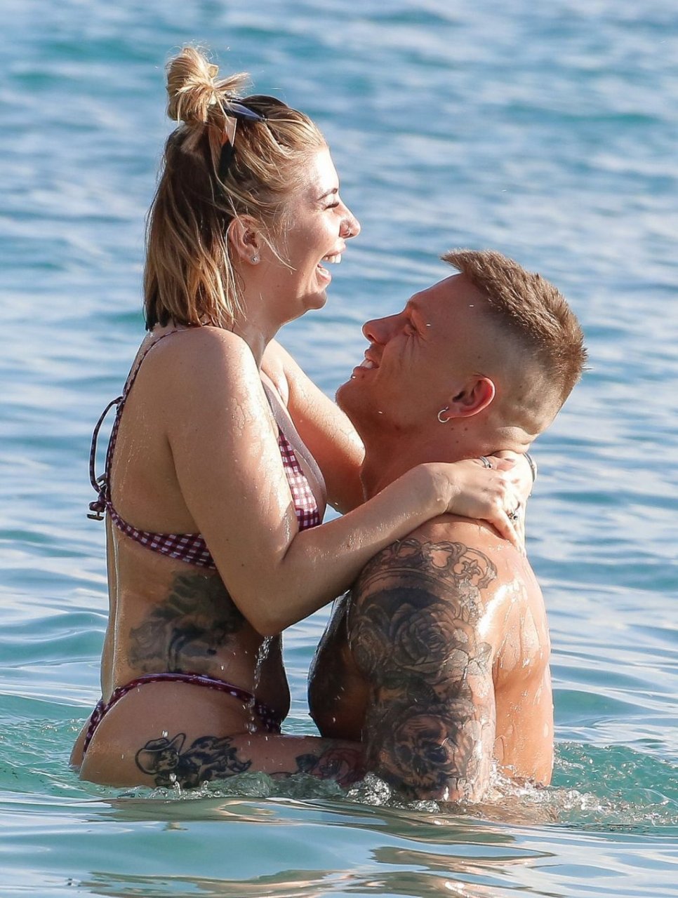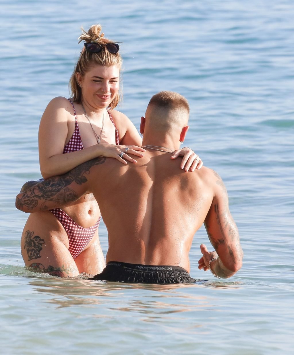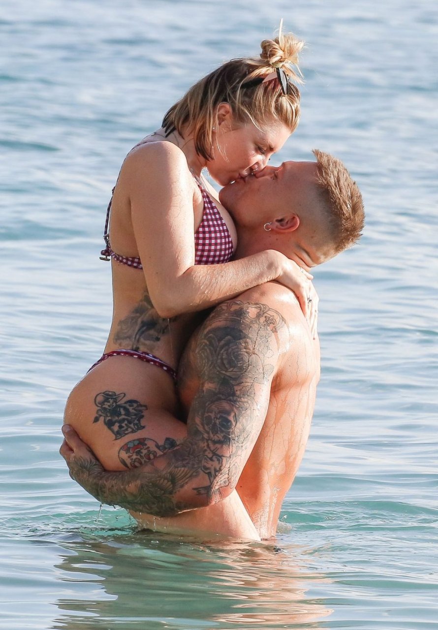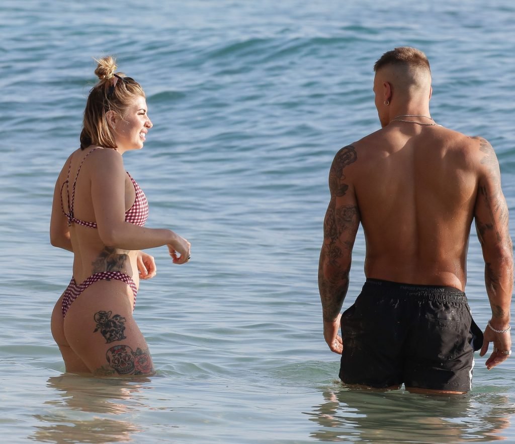 La estrella de reality TV Olivia Buckland y su esposo Alex Bowen son vistos en la playa durante sus vacaciones en Barbados, 20/03/2019.