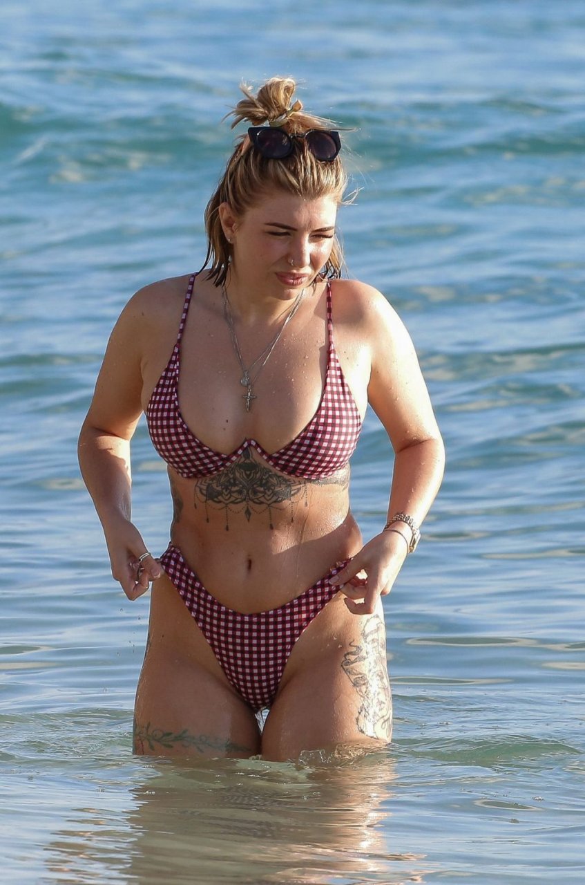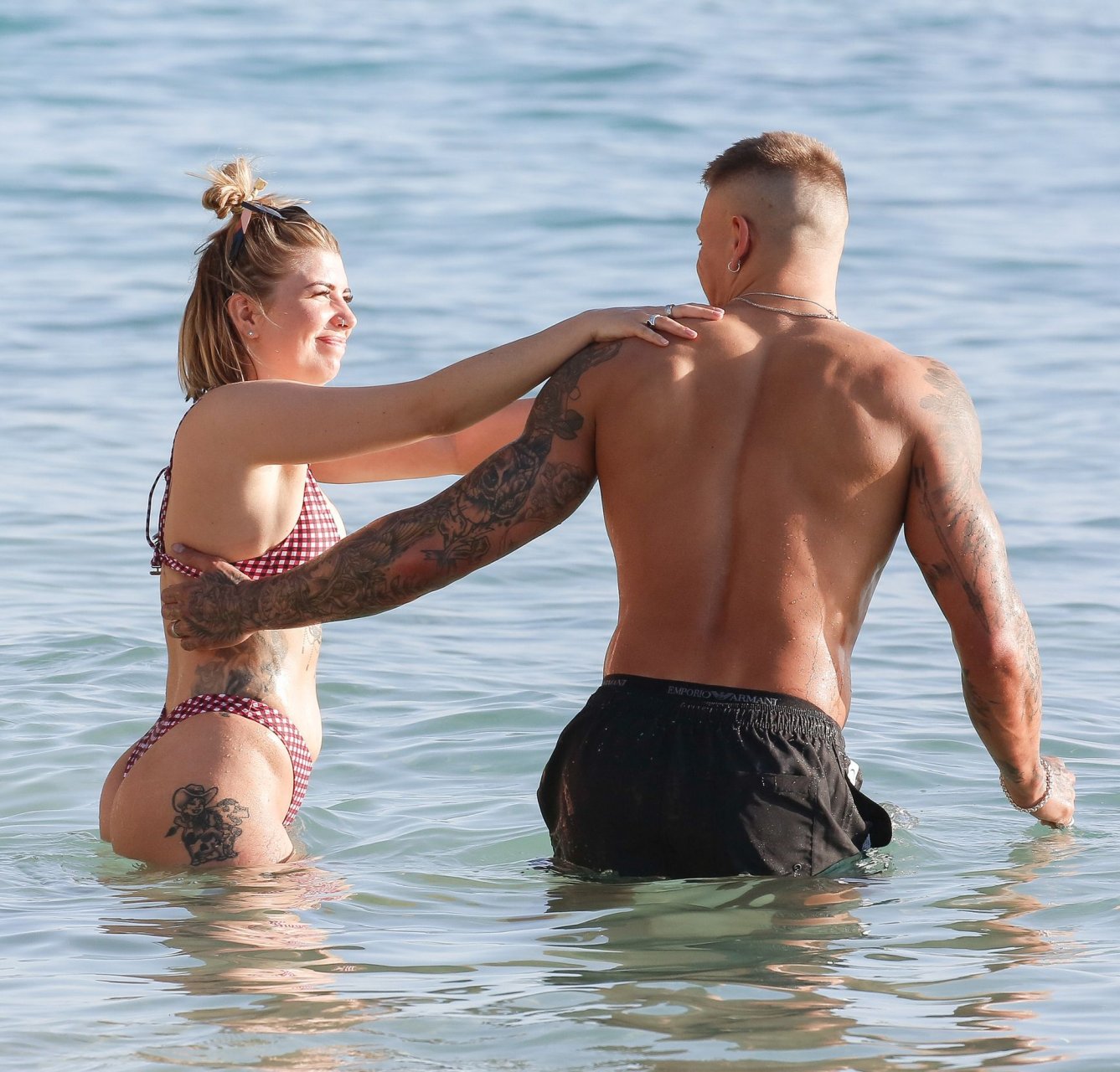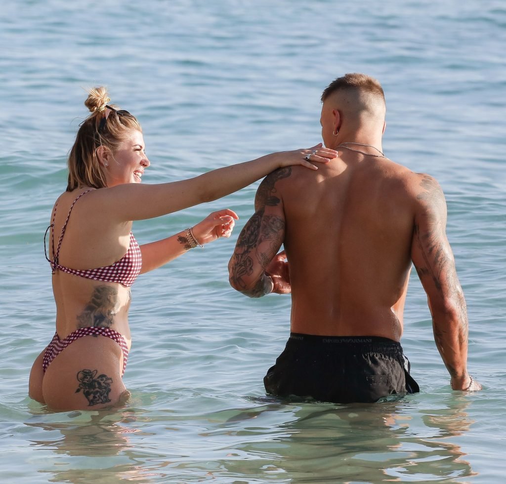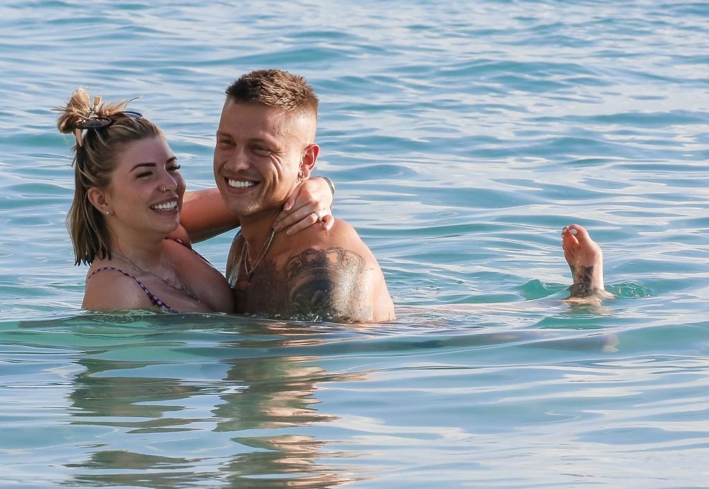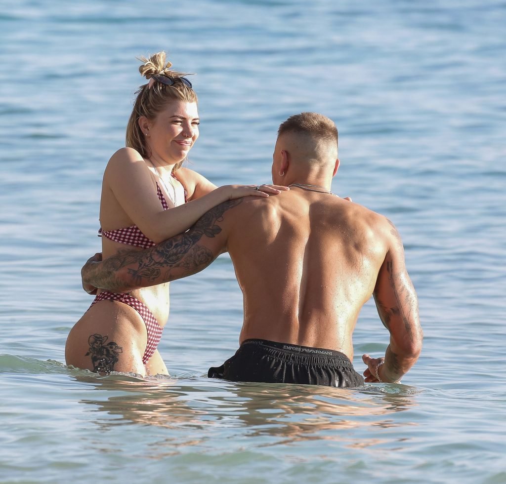 La estrella de reality TV Olivia Buckland y su esposo Alex Bowen son vistos en la playa durante sus vacaciones en Barbados, 20/03/2019.