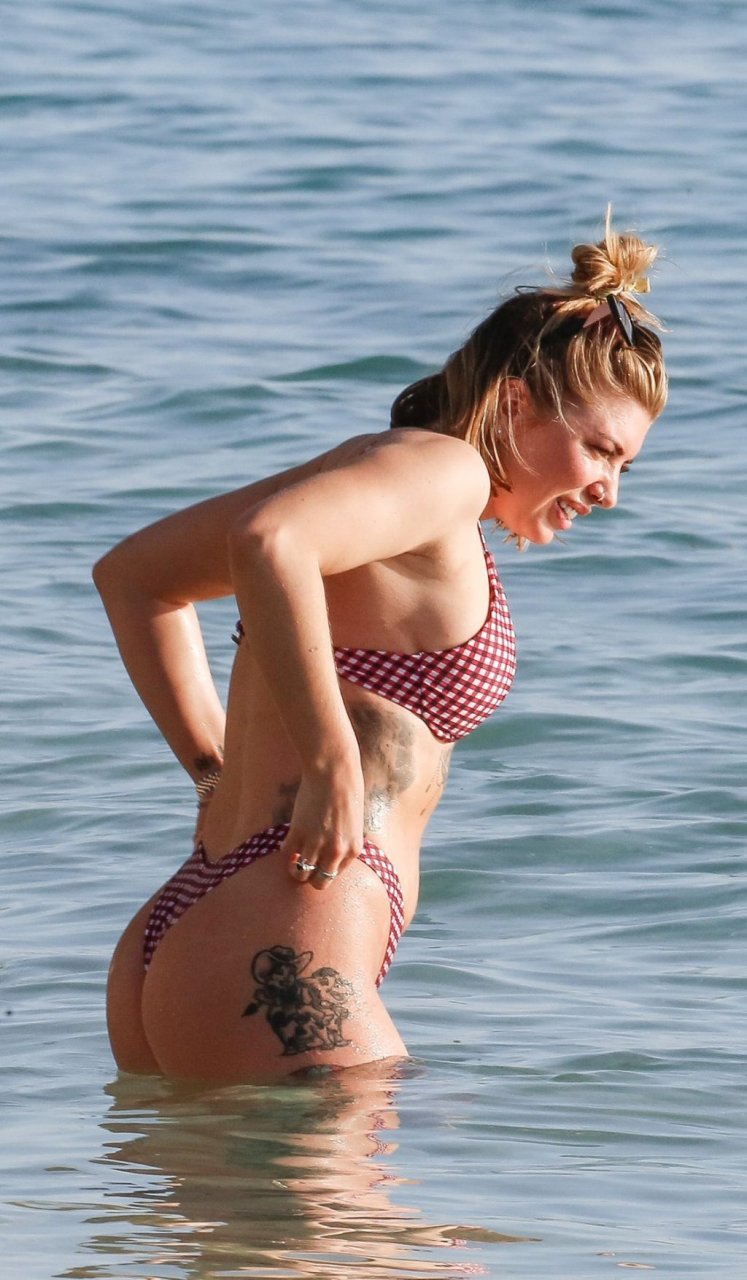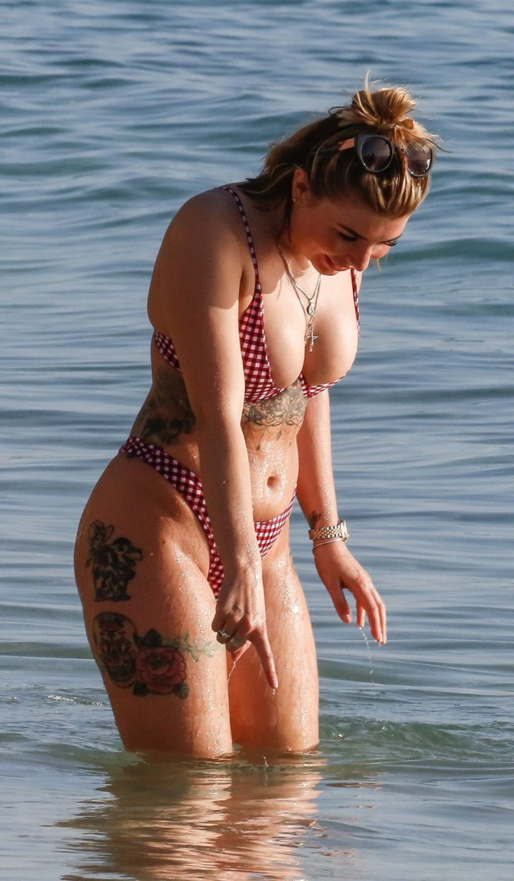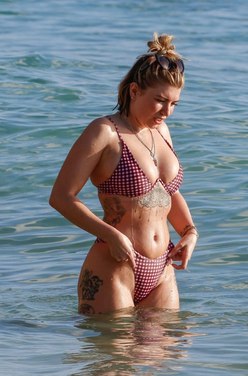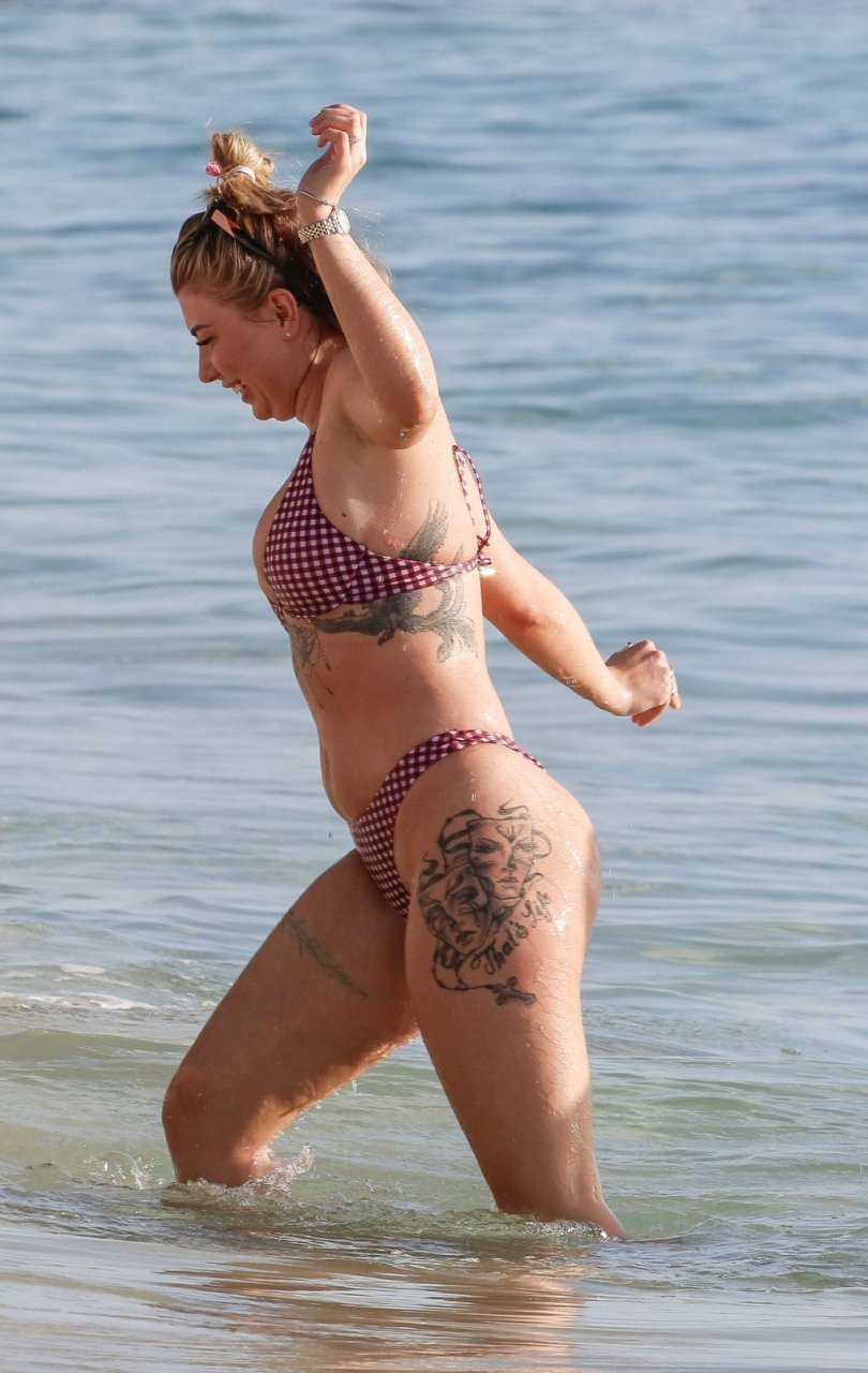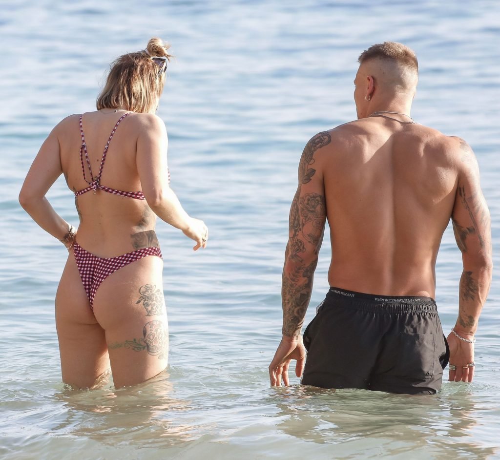 La estrella de reality TV Olivia Buckland y su esposo Alex Bowen son vistos en la playa durante sus vacaciones en Barbados, 20/03/2019.