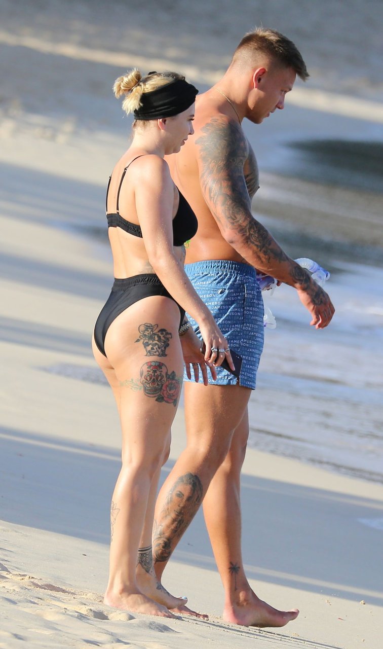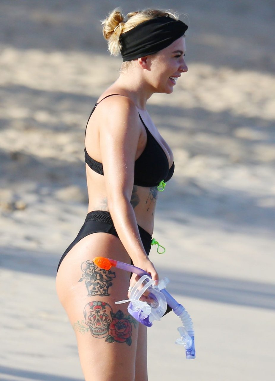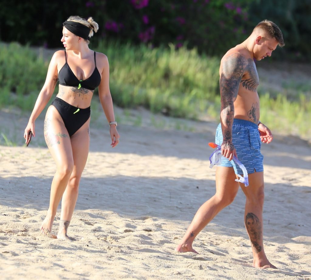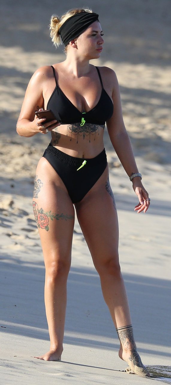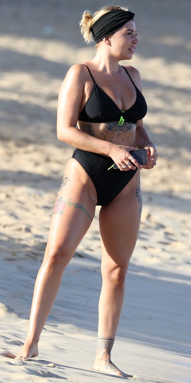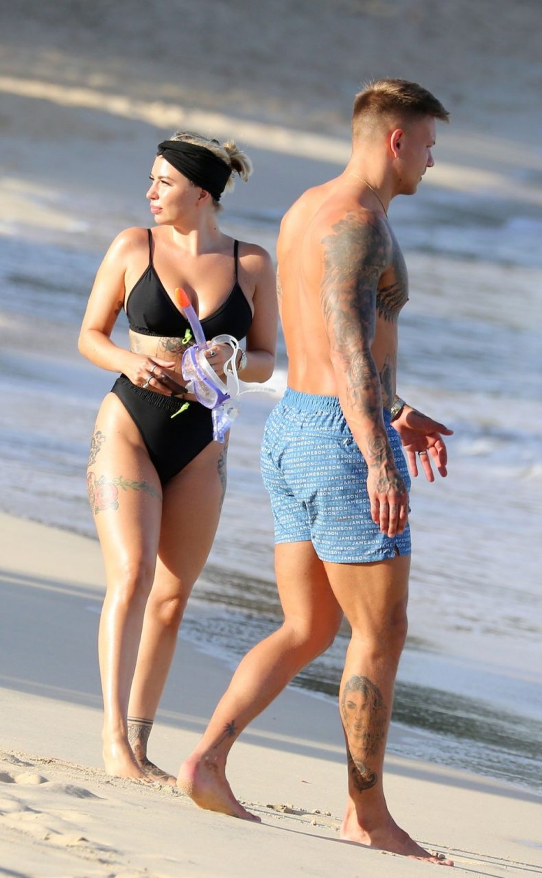 “Love Island” Olivia Buckland luce fenomenal con un bikini negro mientras disfruta en la playa con su esposo Alex para verlo hacer esnórquel en Barbados, 24/07/2019.