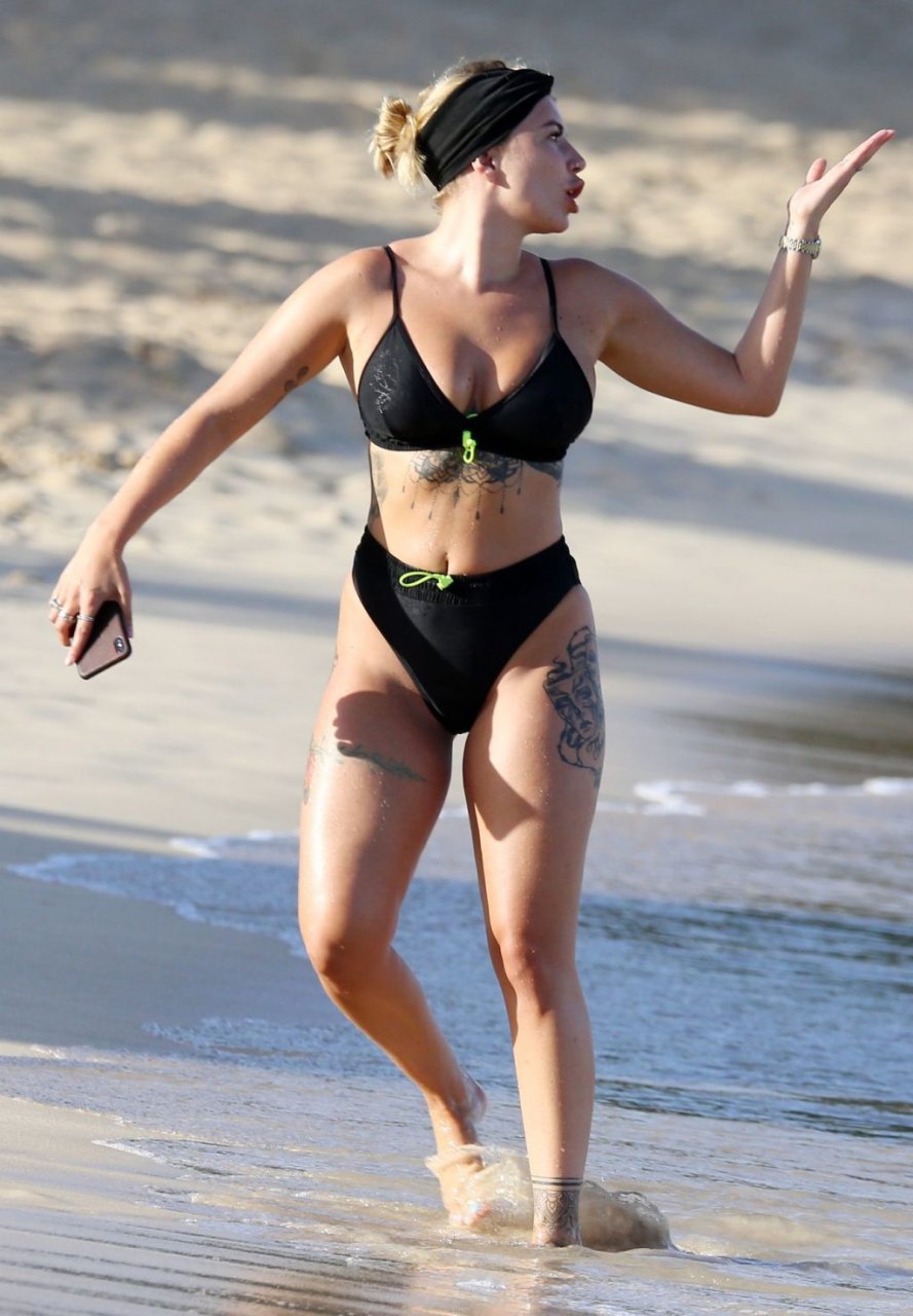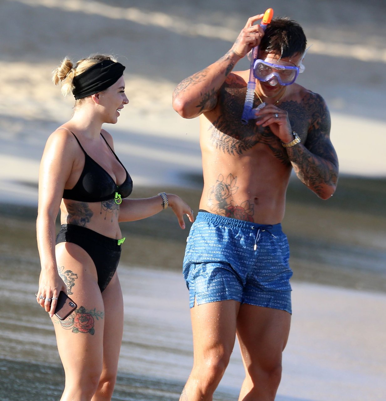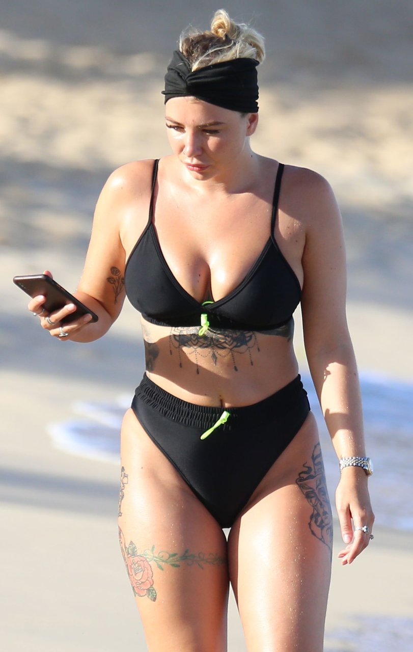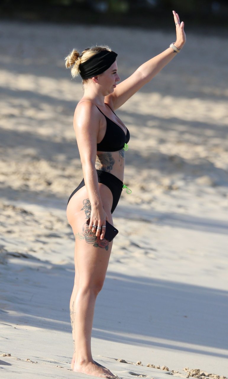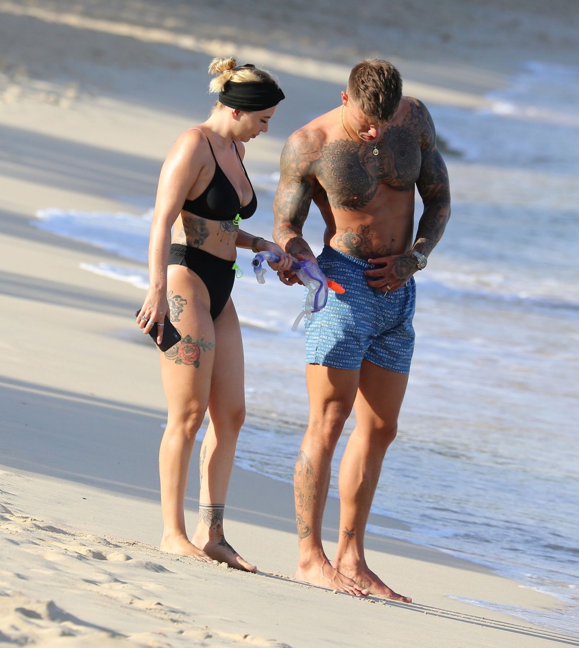 “Love Island” Olivia Buckland luce fenomenal con un bikini negro mientras disfruta en la playa con su esposo Alex para verlo hacer esnórquel en Barbados, 24/07/2019.