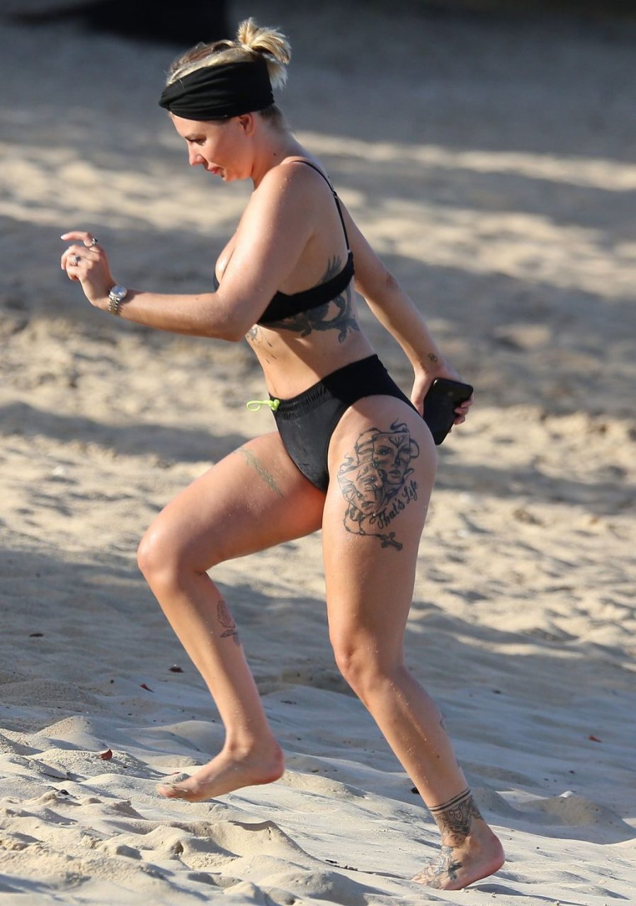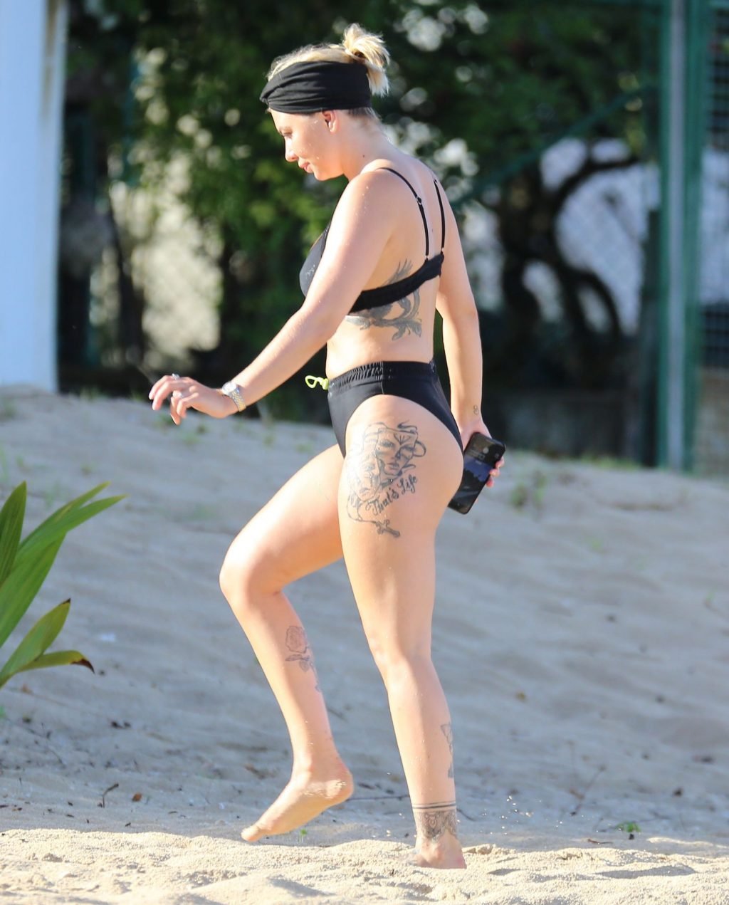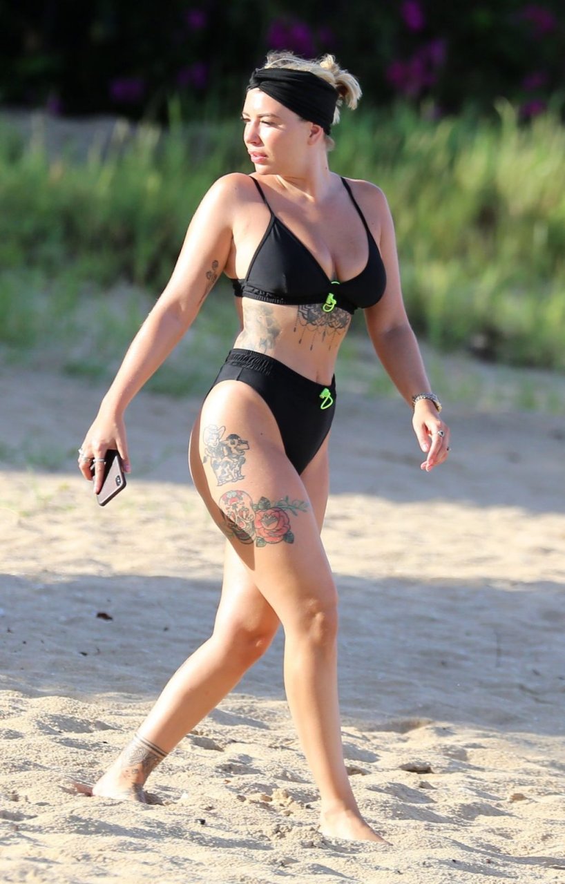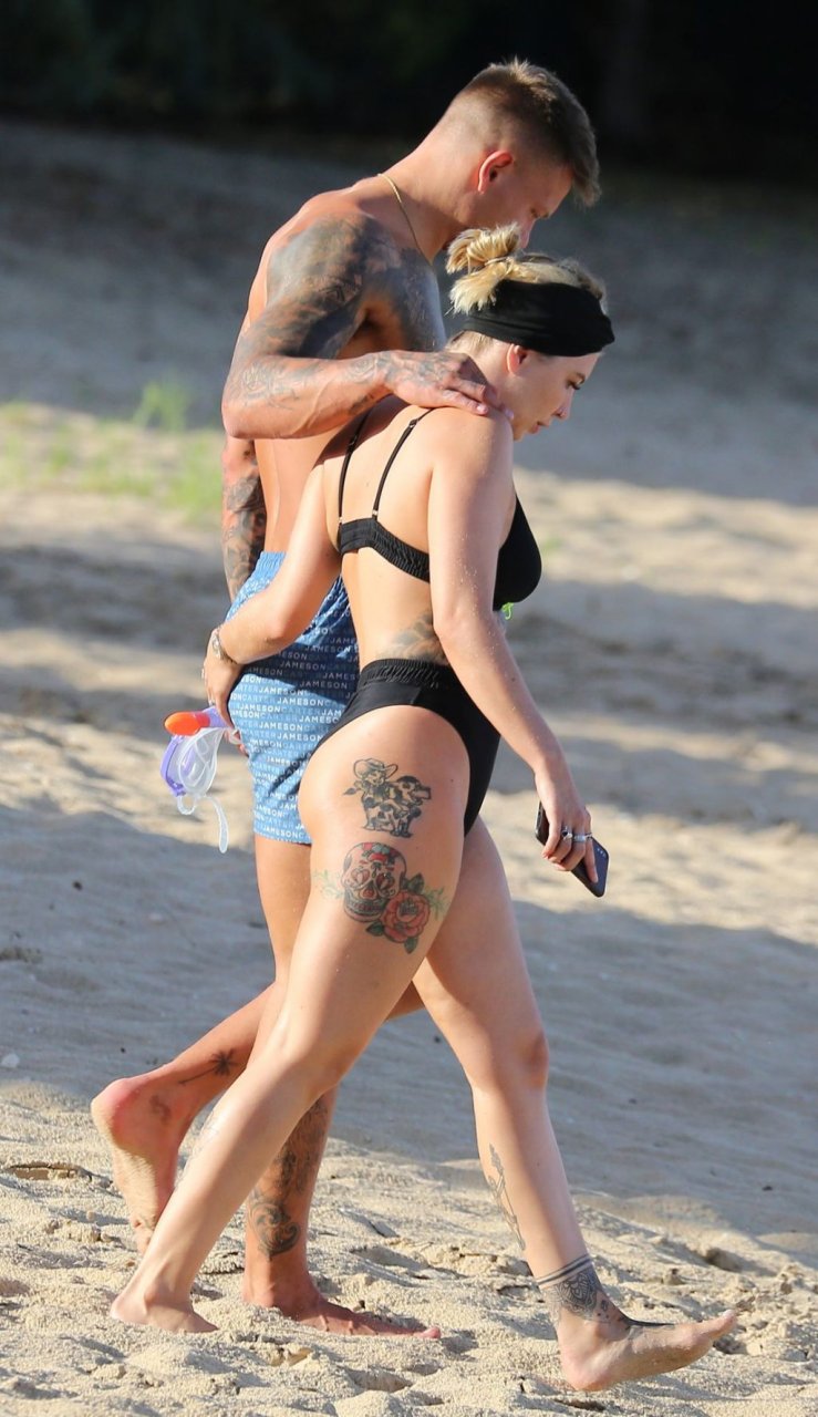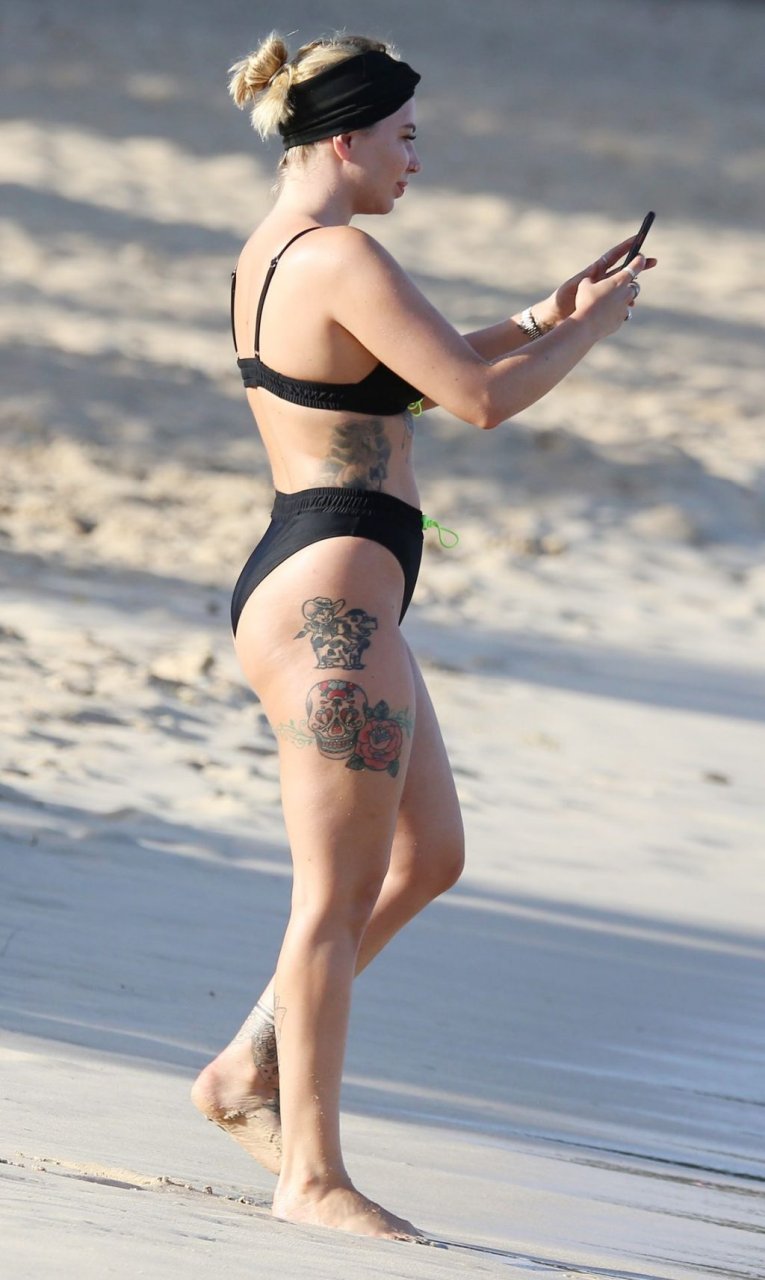 “Love Island” Olivia Buckland luce fenomenal con un bikini negro mientras disfruta en la playa con su esposo Alex para verlo hacer esnórquel en Barbados, 24/07/2019.