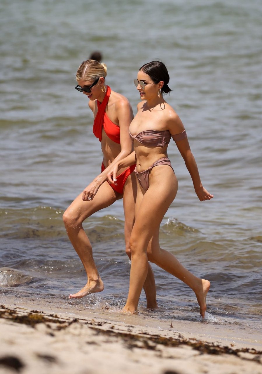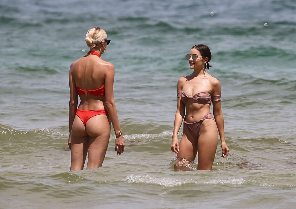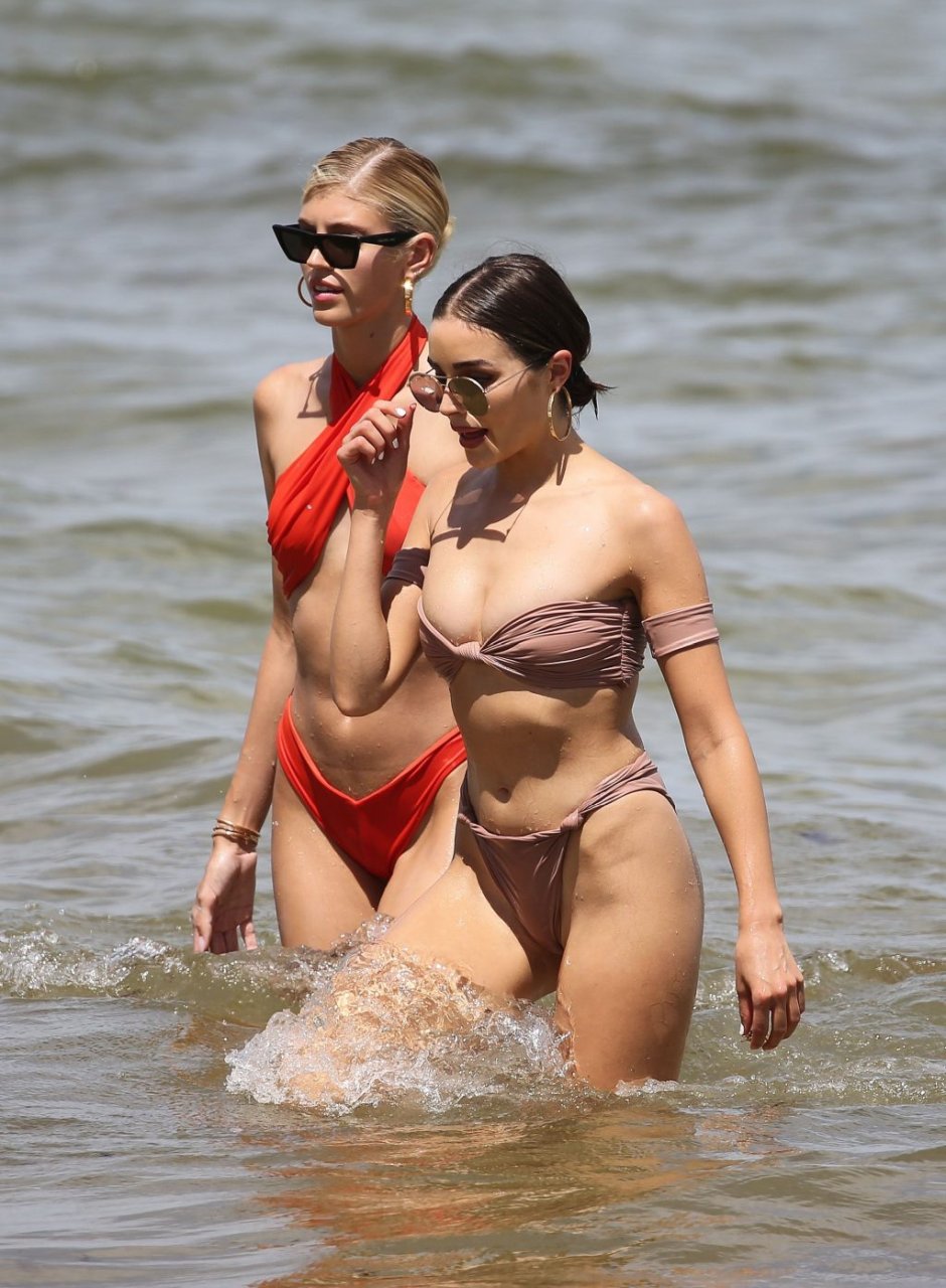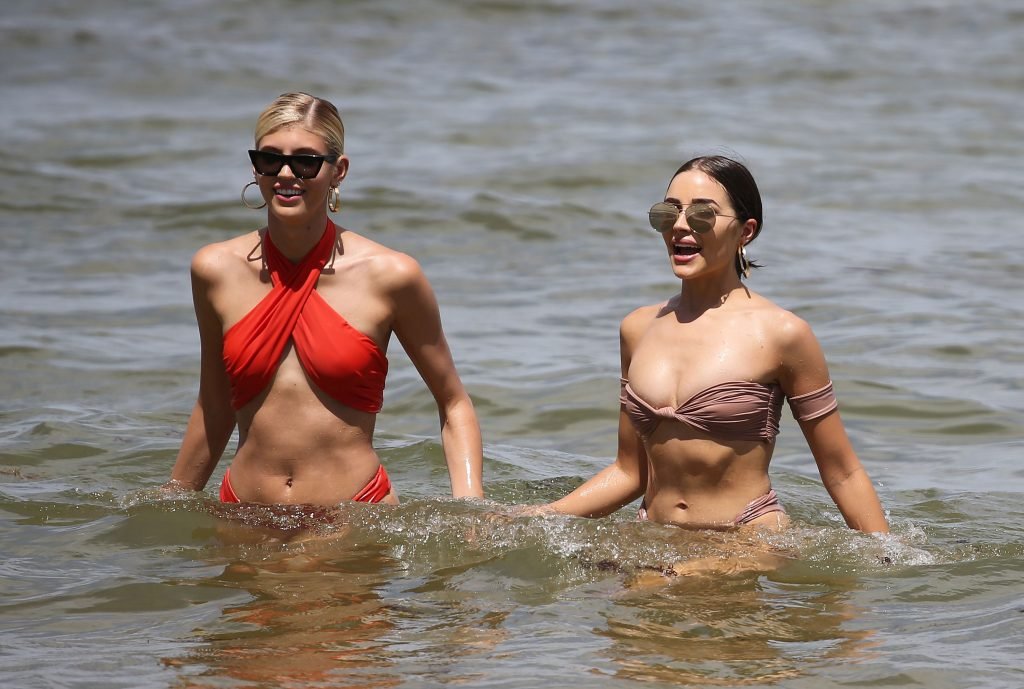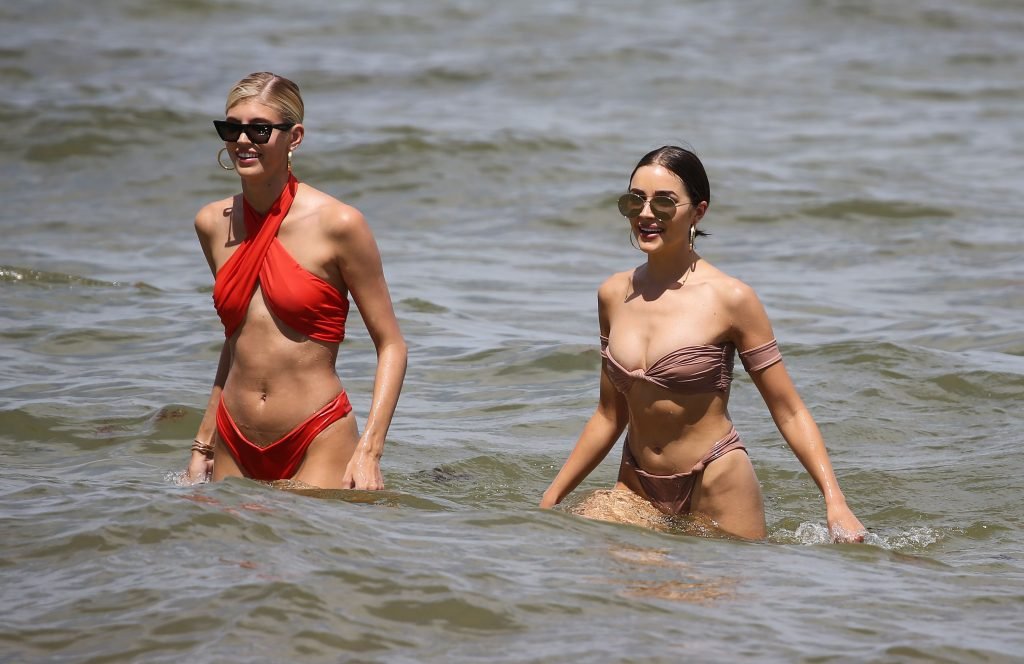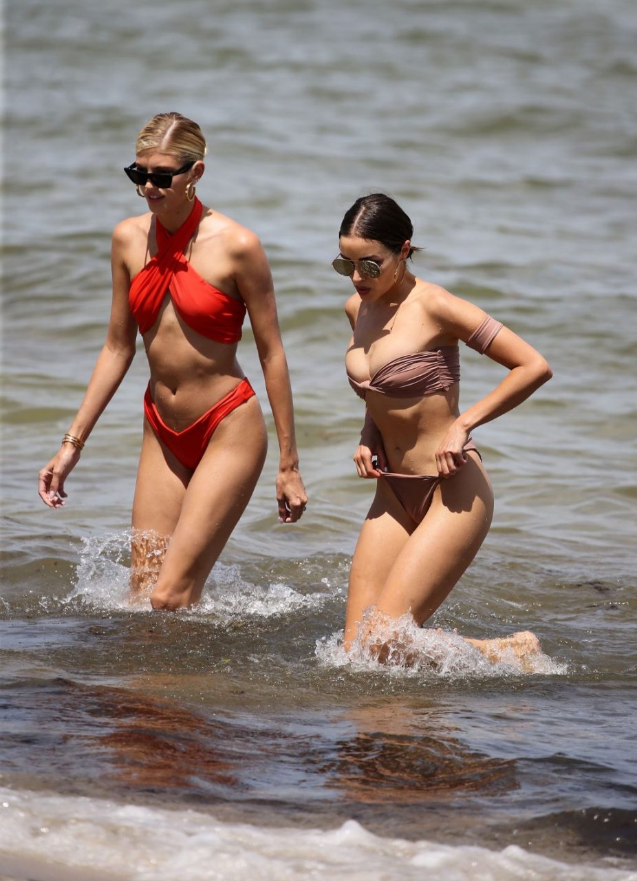 Olivia Culpo y Devon Windsor fueron vistas usando bikinis reveladores mientras se daban un chapuzón en el océano en Miami, 13/08/2018.