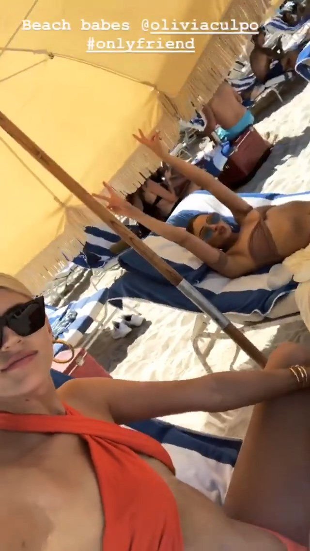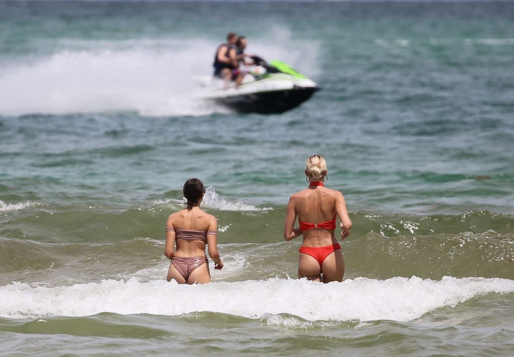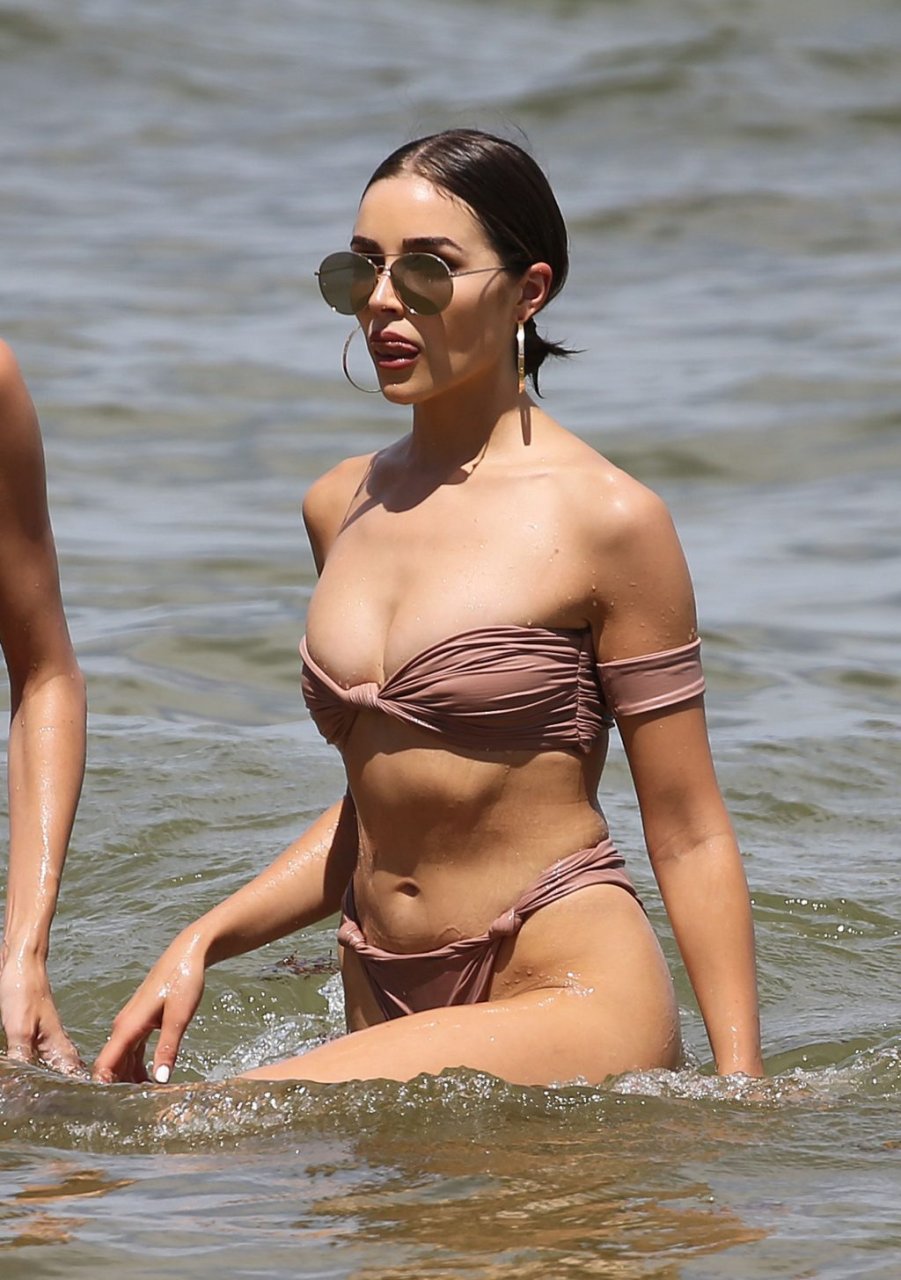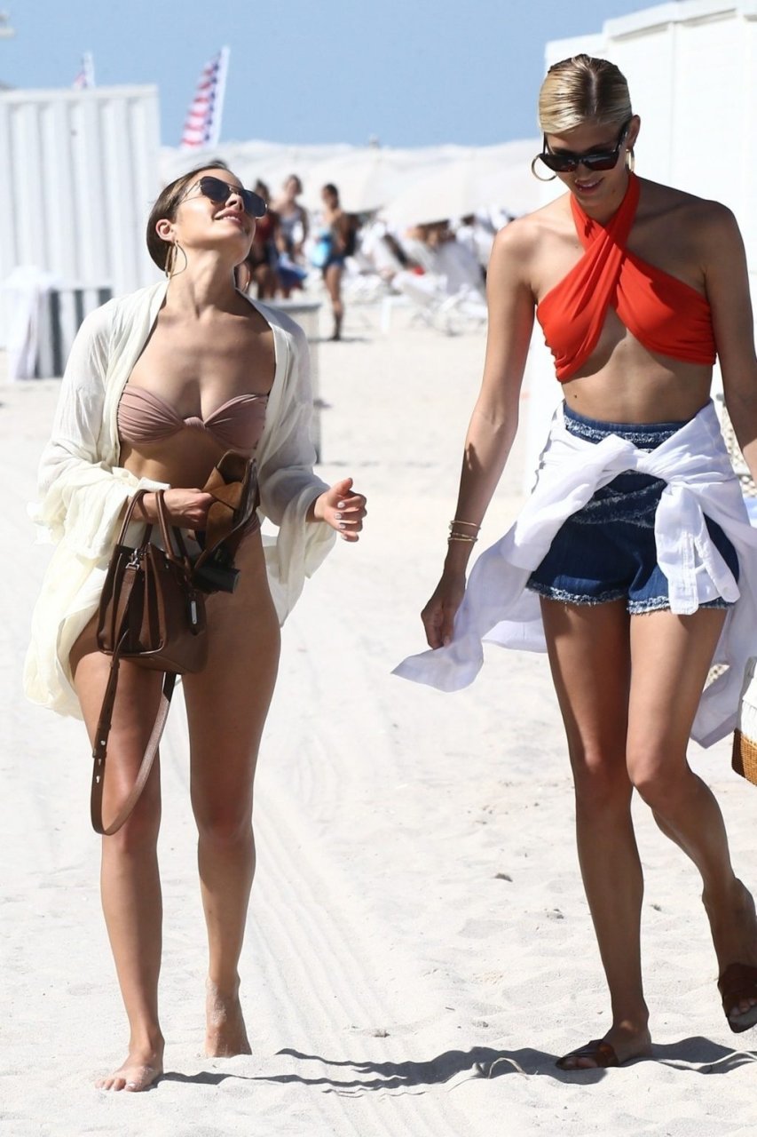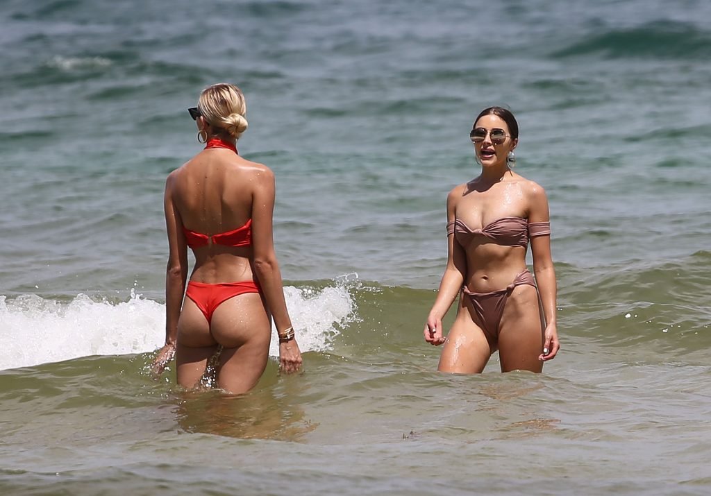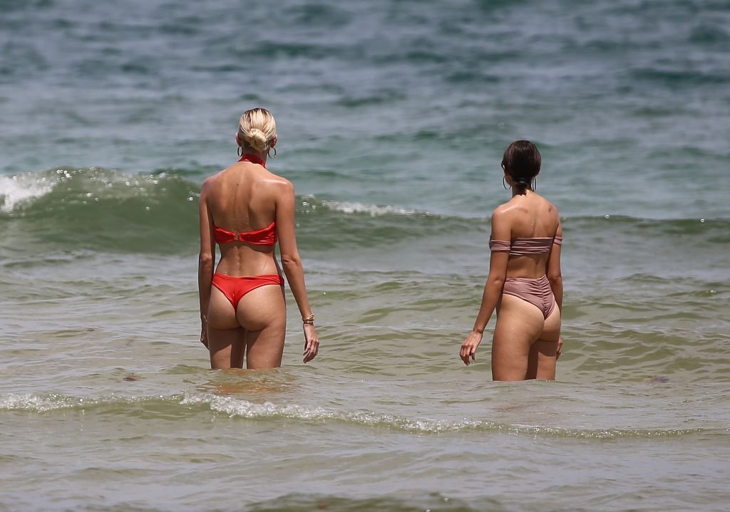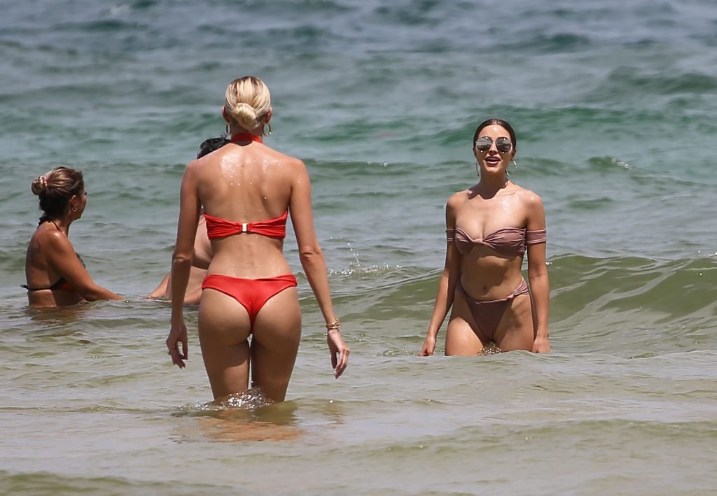Olivia Culpo y Devon Windsor fueron vistas usando bikinis reveladores mientras se daban un chapuzón en el océano en Miami, 13/08/2018.