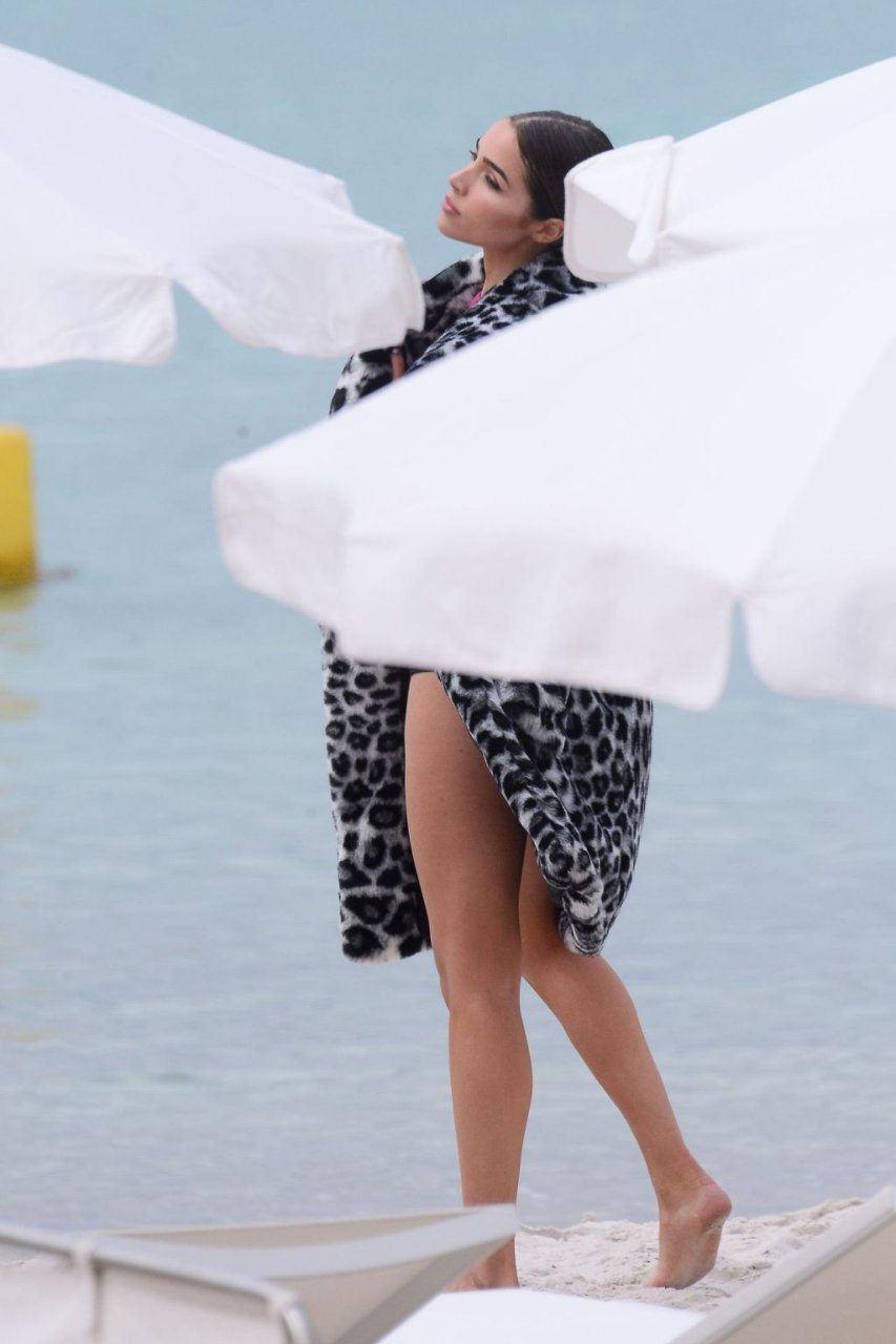 Model Olivia Culpo aprovecha el hermoso paisaje de Cannes mientras posa para una sesión de fotos en la playa, 23/05/2019. ¡La modelo atractiva luce perfecta en las fotos mientras exhibe varios tipos de estampados animales!