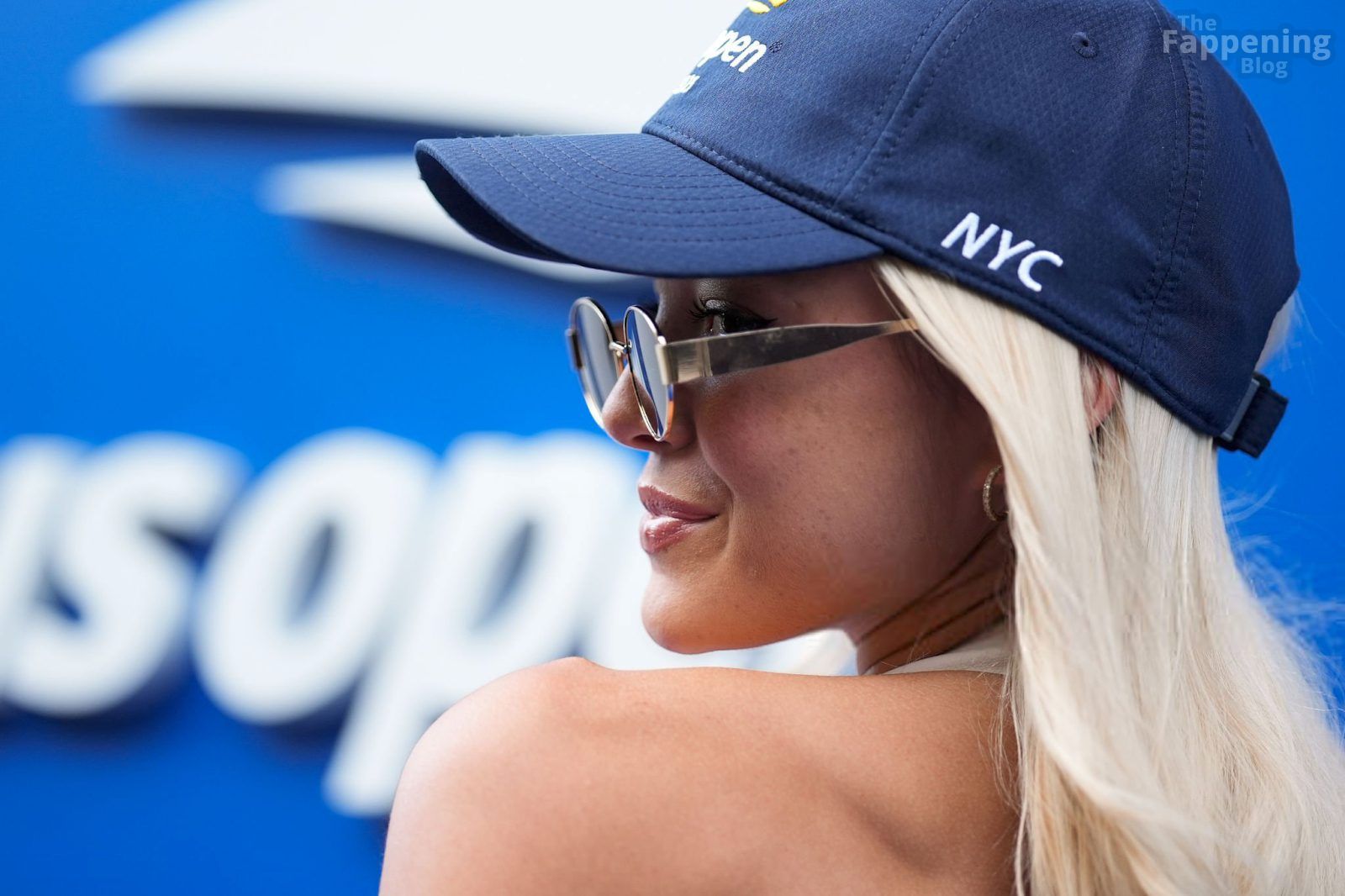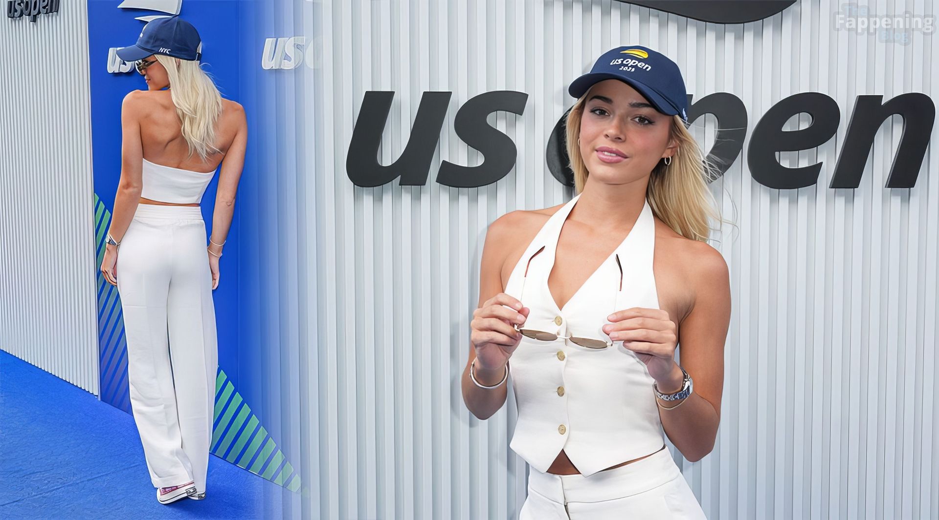 La influencer estadounidense y ex gimnasta artística Olivia Dunne lució un halter sin espalda y pantalones ajustados en el US Open.