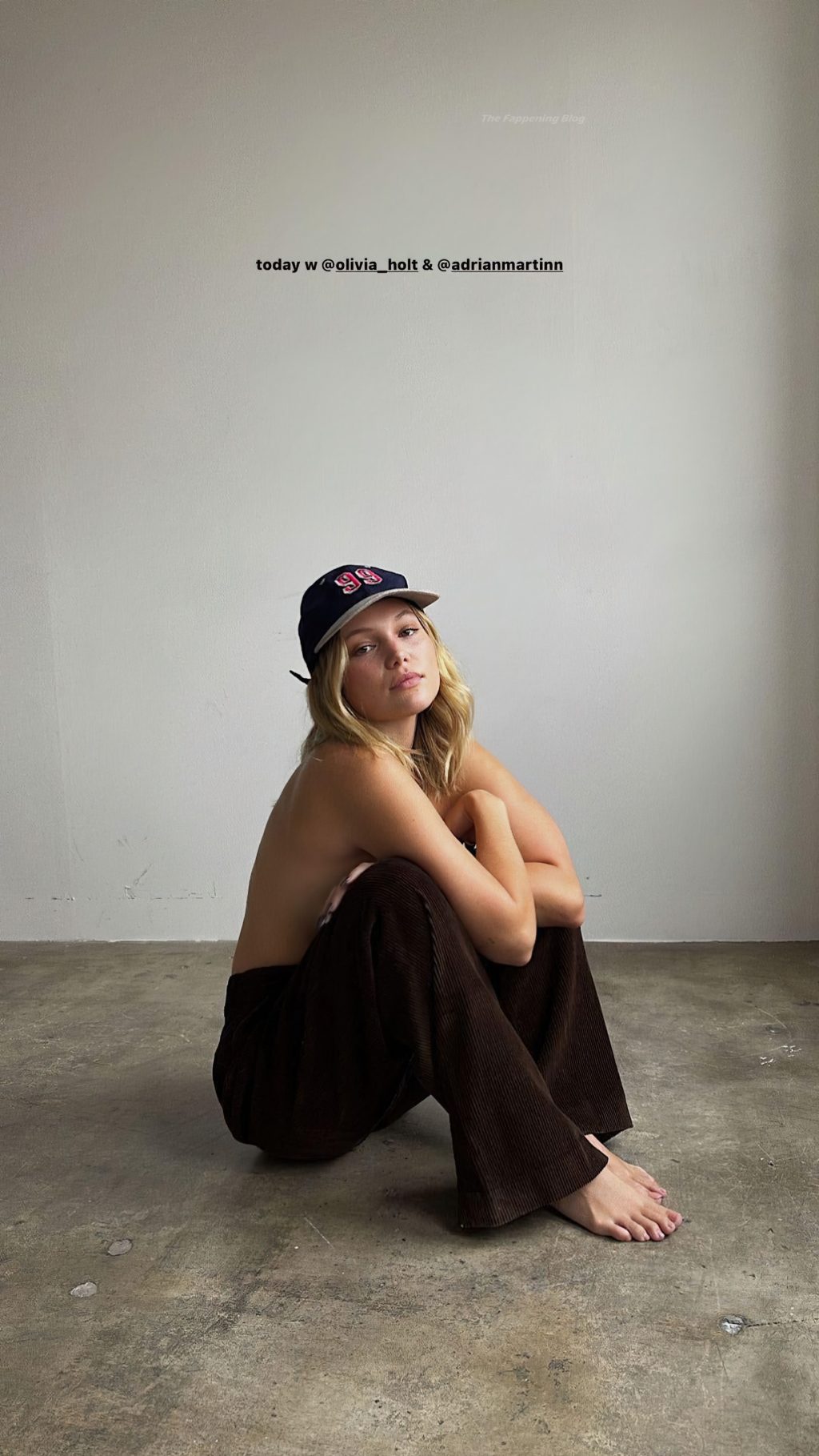 Mira la nueva colección de Olivia Holt, que incluye, entre otras, fotos sin camiseta, sin sostén y en bikini de Instagram, mostrando sus pequeños y sexys pechos y sus hermosas piernas.