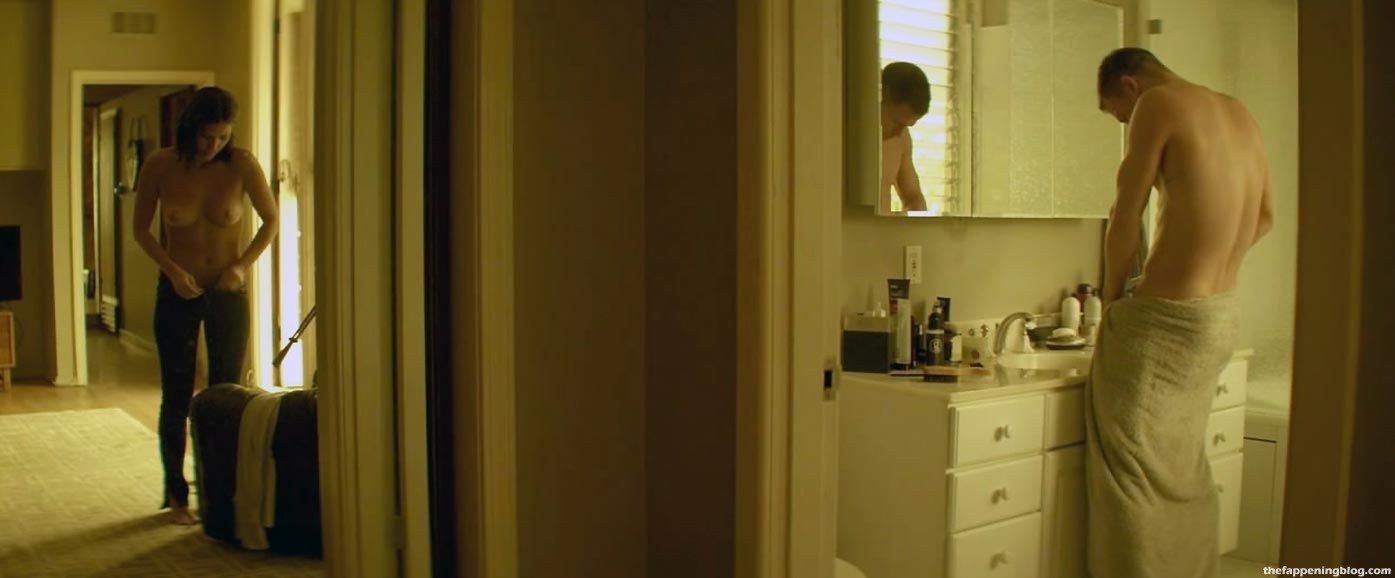 The first scene is from a movie called ‘Magic Mike’. Olivia Munn makes her nude debut when we see her being dressed topless in a bedroom while talking to a man who comes by. Olivia then stands in a tight white camisole, staring at a nude girl sitting on the bunk, her buttocks exposed.