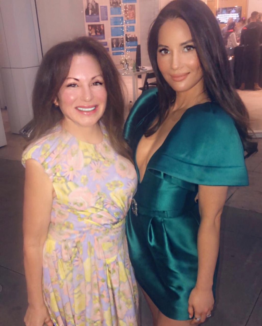 La actriz Olivia Munn lleva un vestido corto verde con escote pronunciado en la fiesta de Hollywood Reporter en Avra en Beverly Hills, 12/03/2019.