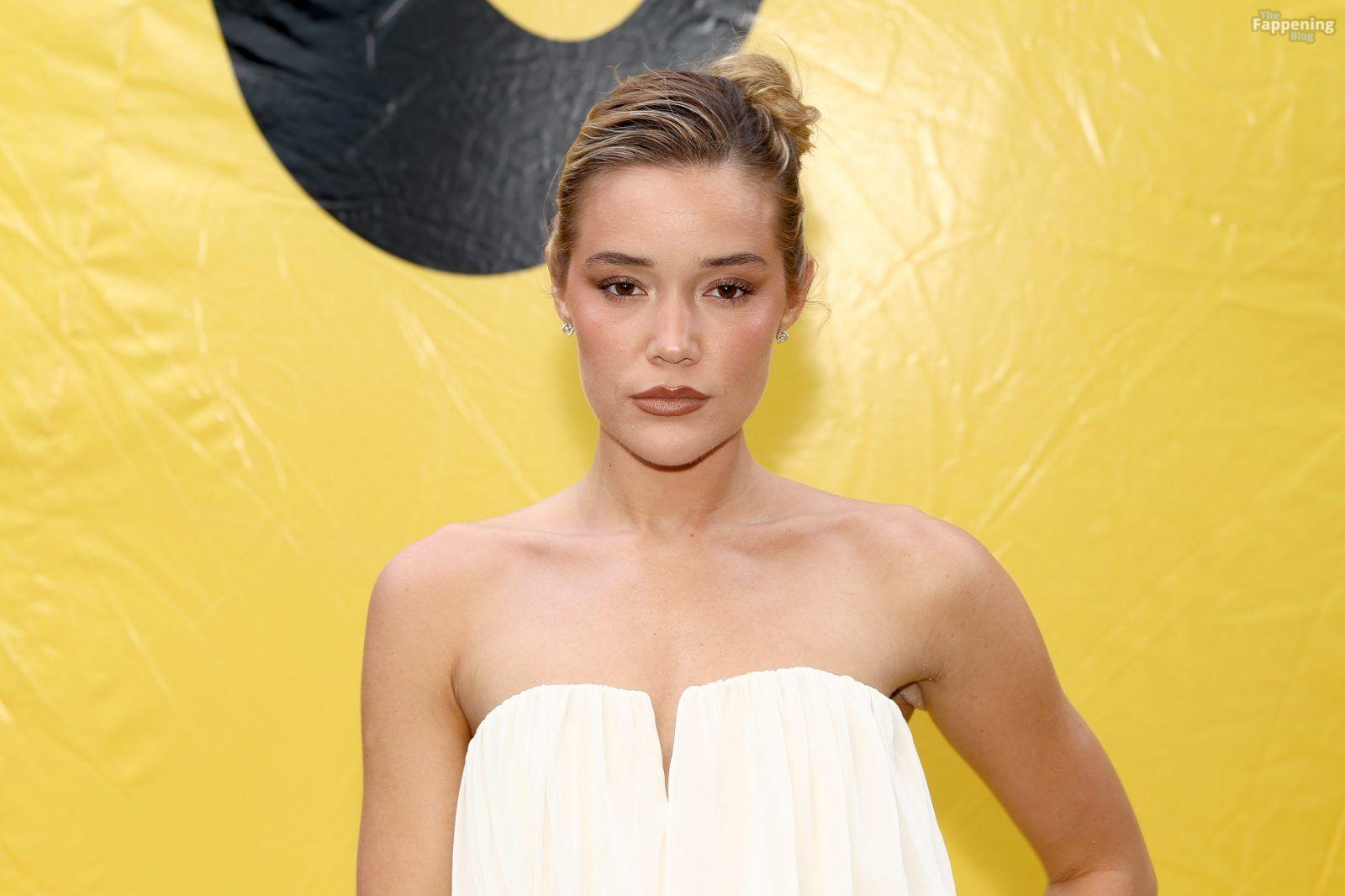 Olivia Ponton deslumbra con un vestido mini blanco ajustado sin tirantes, mostrando sus piernas sexys en la fiesta Breitling x NFL.
