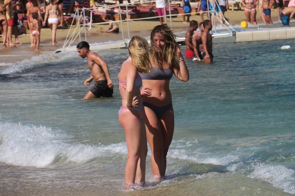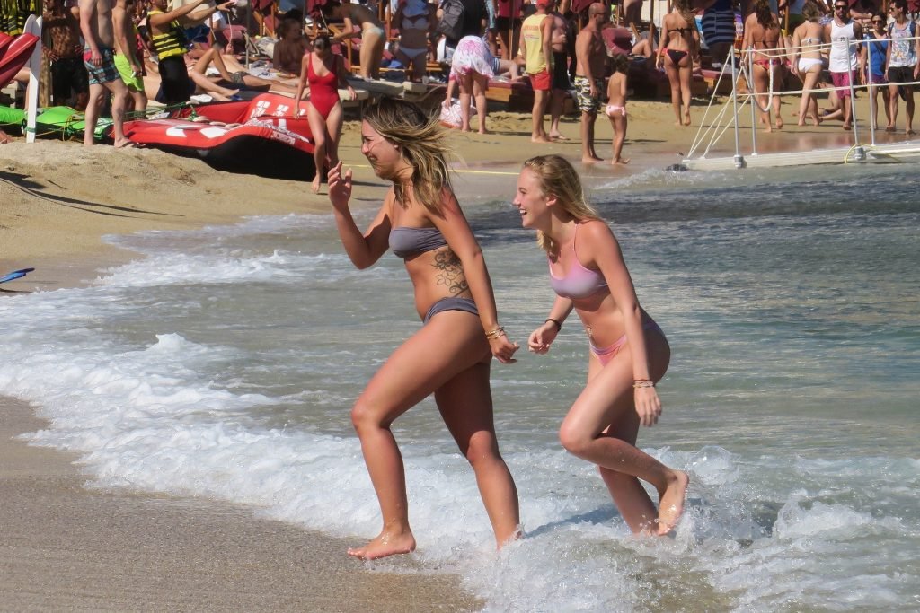Olympia Valance vista en la playa en Mykonos, 07/07/2017. Olympia Valance es una modelo, actriz (Neighbours (Serie de TV), 2017) de Melbourne, Australia. Edad: 24 años.