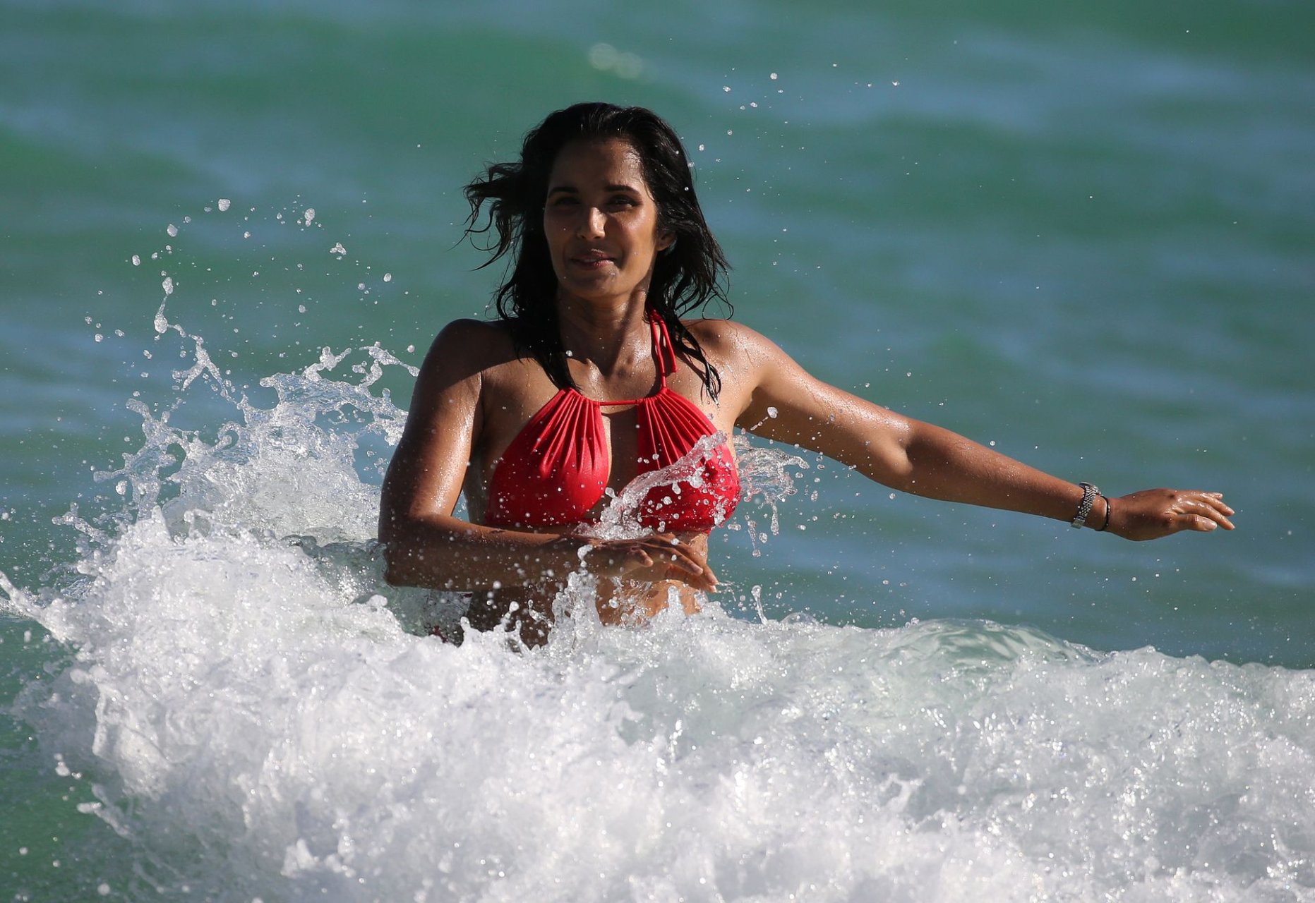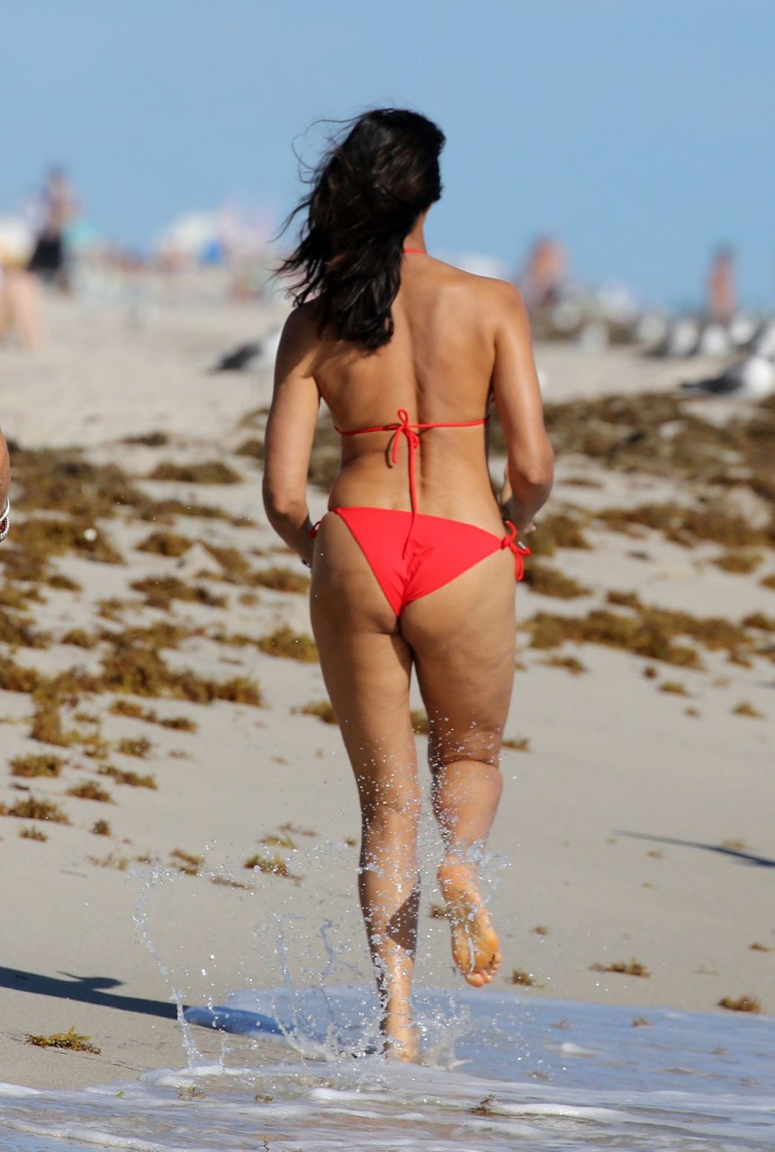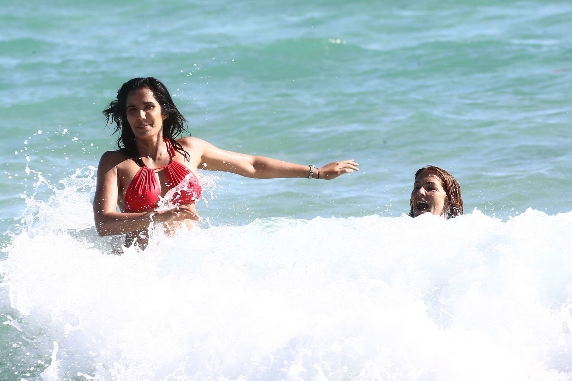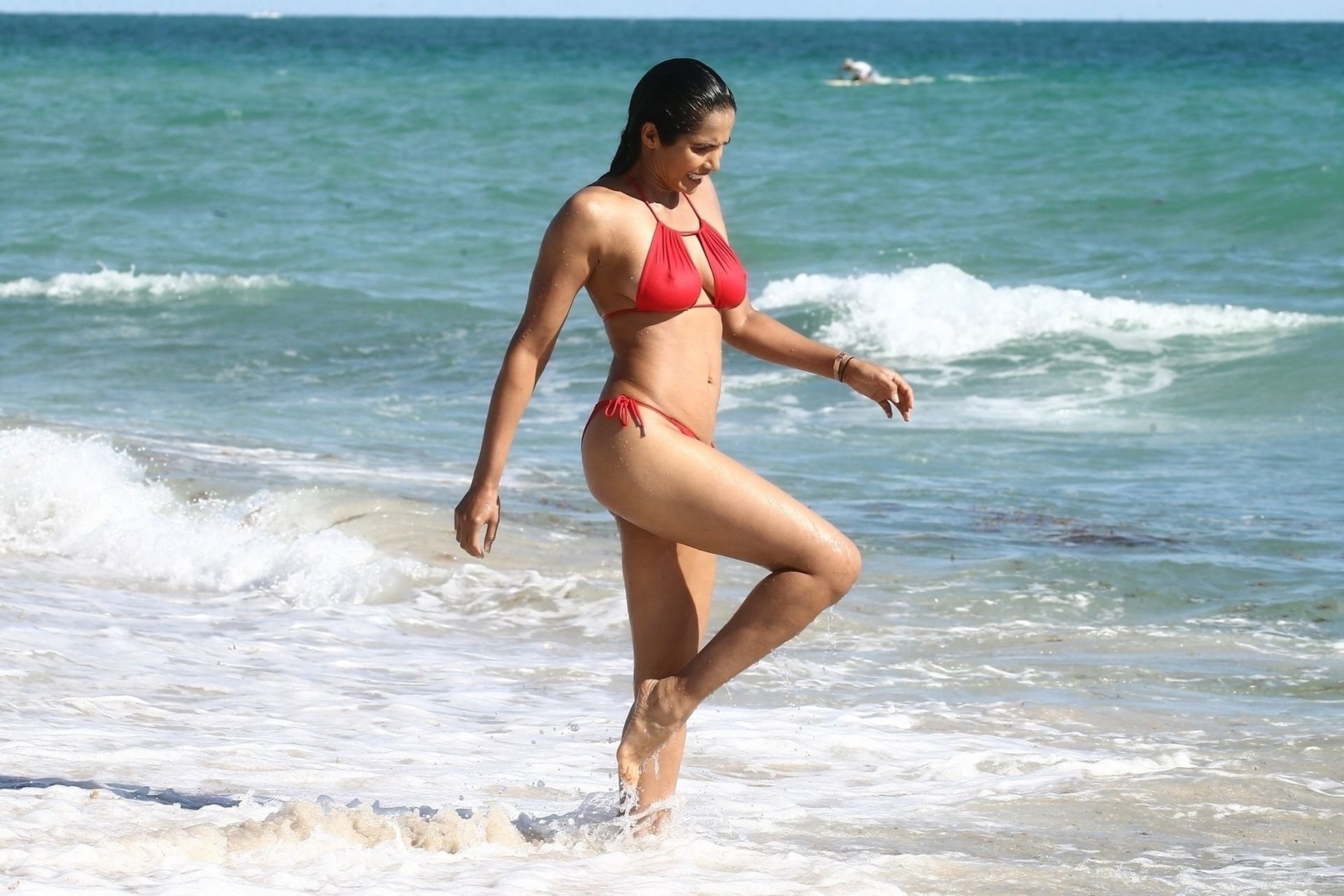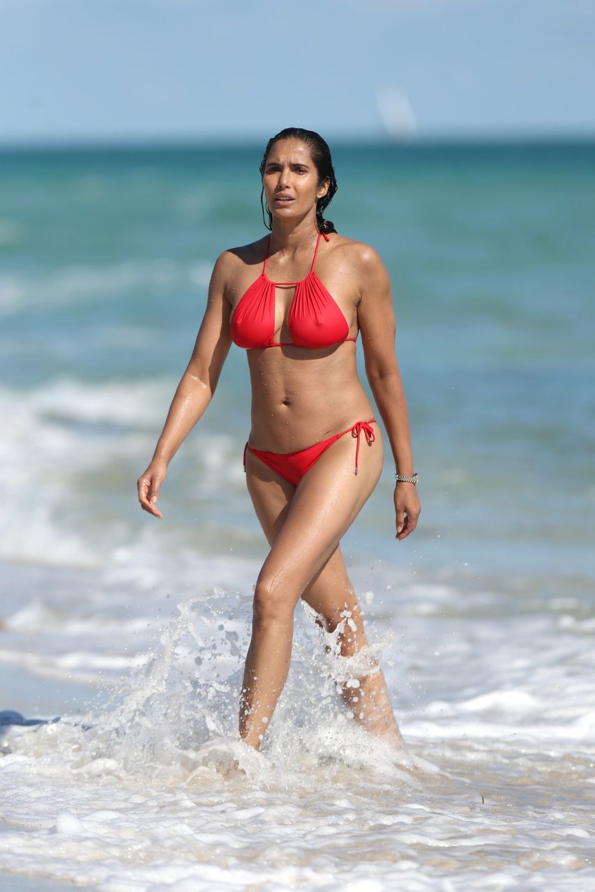 Padma Lakshmi con curvas está que arde mientras muestra su figura con un bikini rojo revelador mientras se da un chapuzón en Miami Beach, 01/07/2019. La estrella del reality show de 48 años incluso tiene su propio momento Baywatch mientras corría por la playa a toda velocidad.