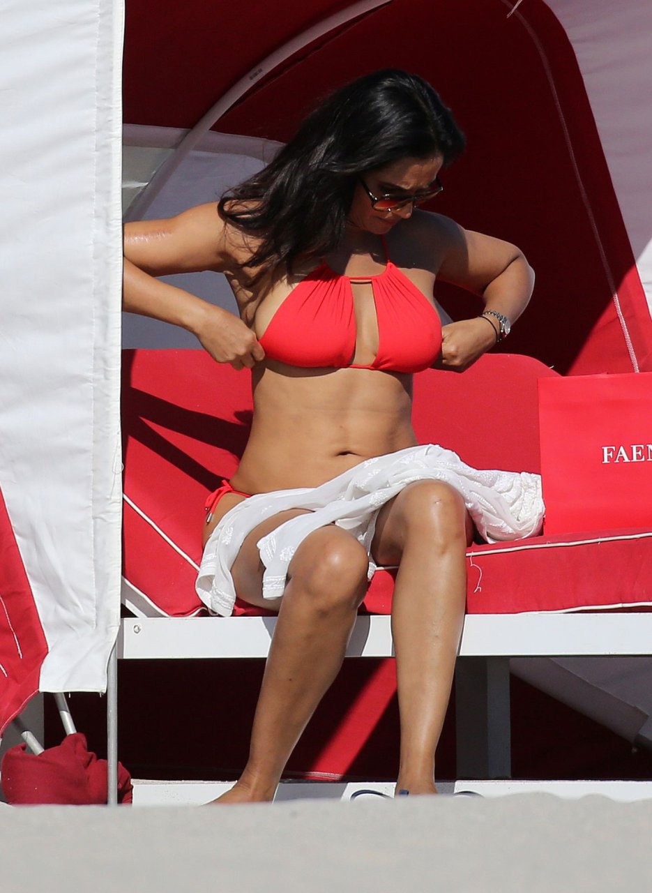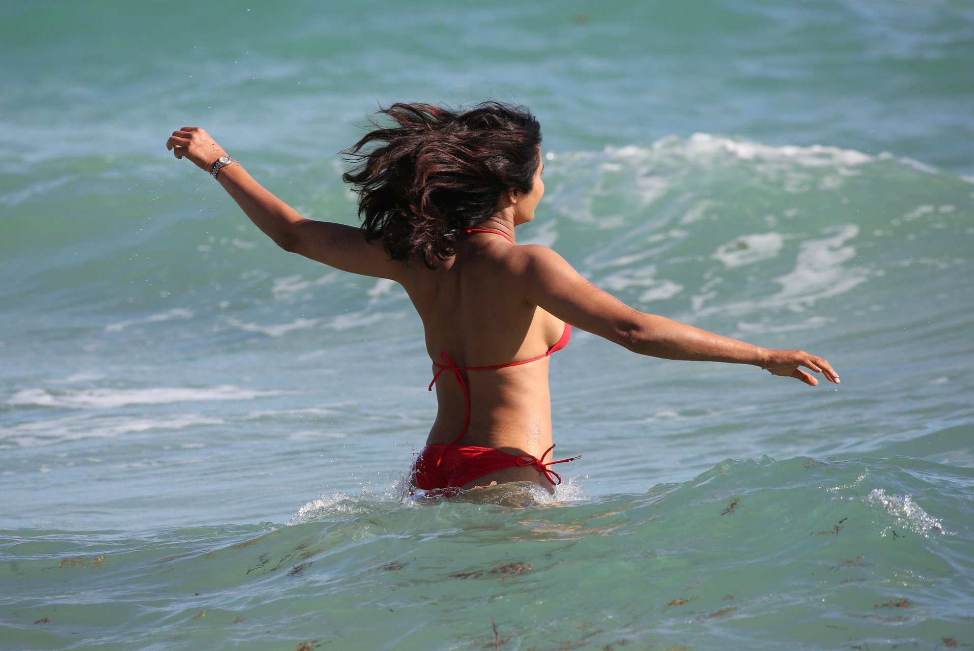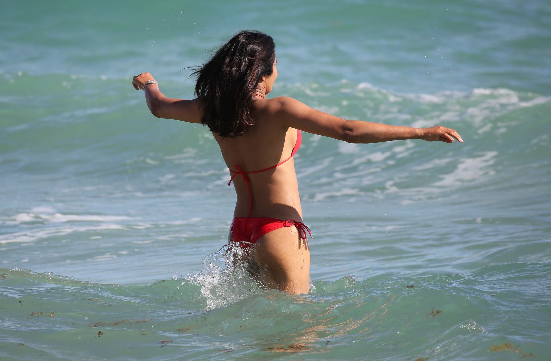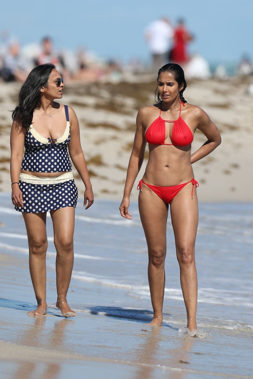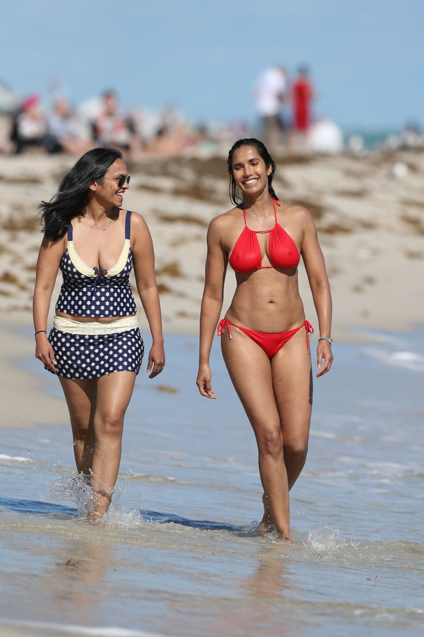 Padma Lakshmi con curvas está que arde mientras muestra su figura con un bikini rojo revelador mientras se da un chapuzón en Miami Beach, 01/07/2019. La estrella del reality show de 48 años incluso tiene su propio momento Baywatch mientras corría por la playa a toda velocidad.