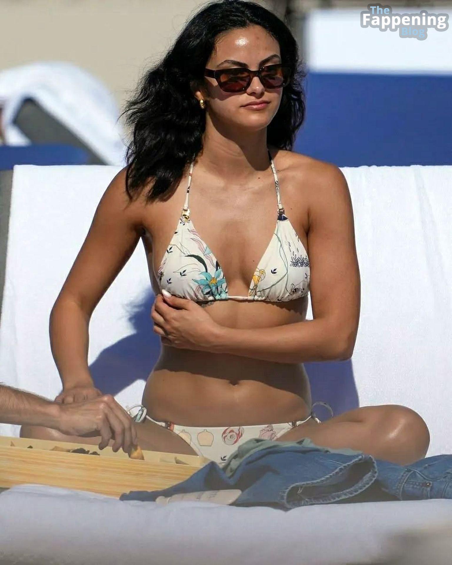Camila Mendes muestra su cuerpo sexy con un pequeño bikini en la playa de Miami.