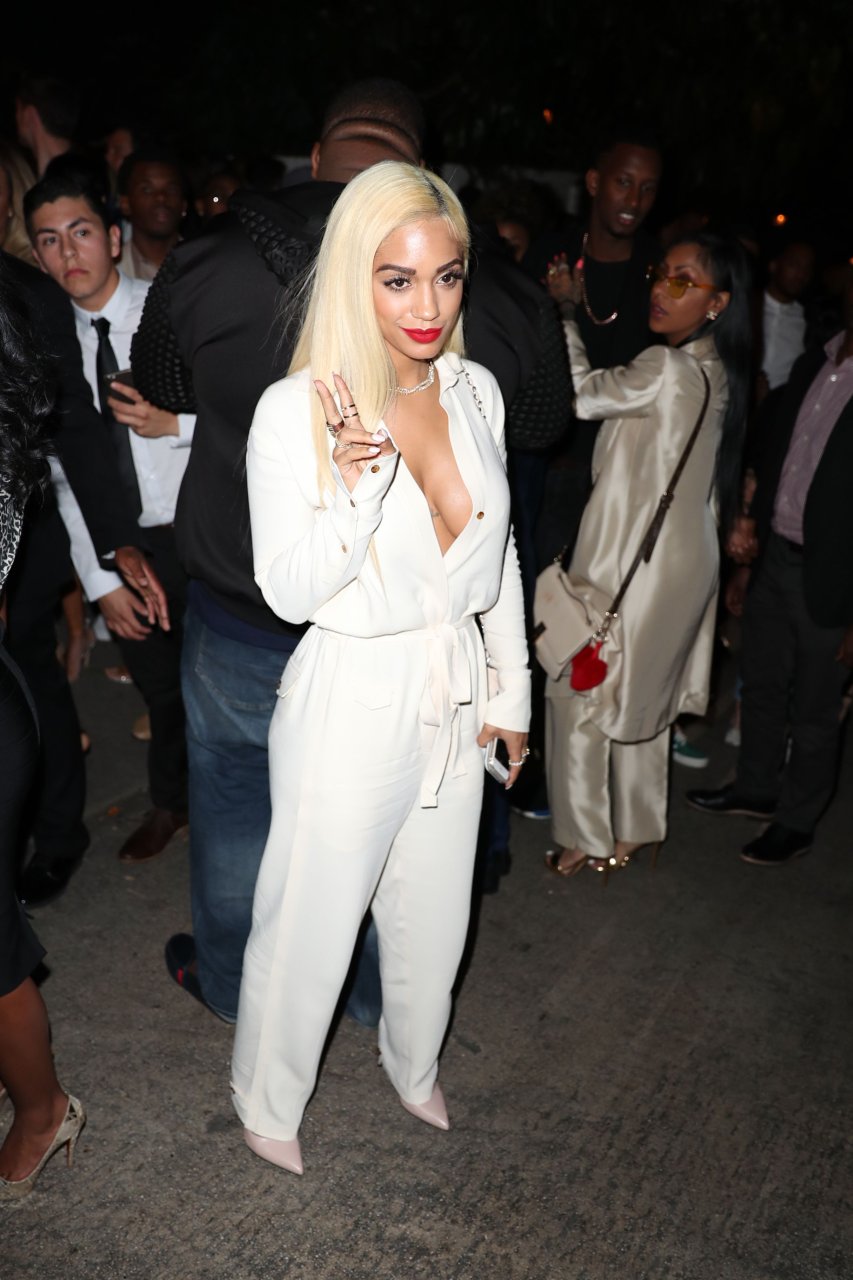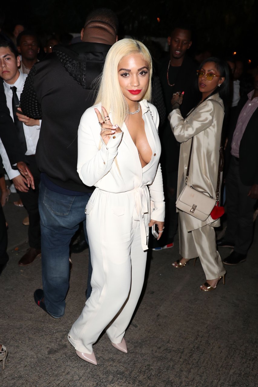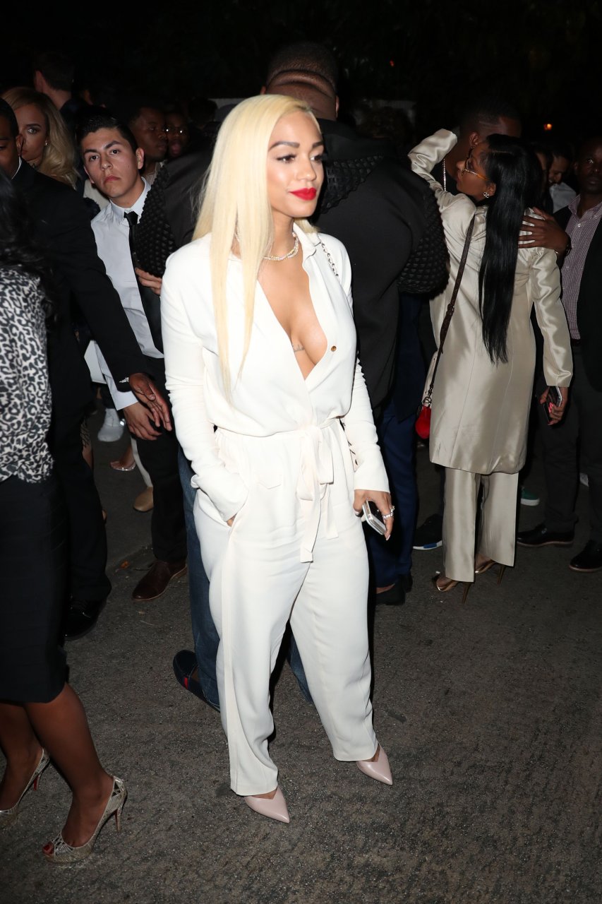 Paloma Ford sin sostén (con cubrepezones) luce impresionante con un disfraz blanco en la fiesta posterior a los Grammy de GQ en Los Ángeles, 13/02/2017. Paloma Ford es una vocalista estadounidense de R&B y rapera ocasional. Edad: 30 (nacida el 1 de agosto de 1986).