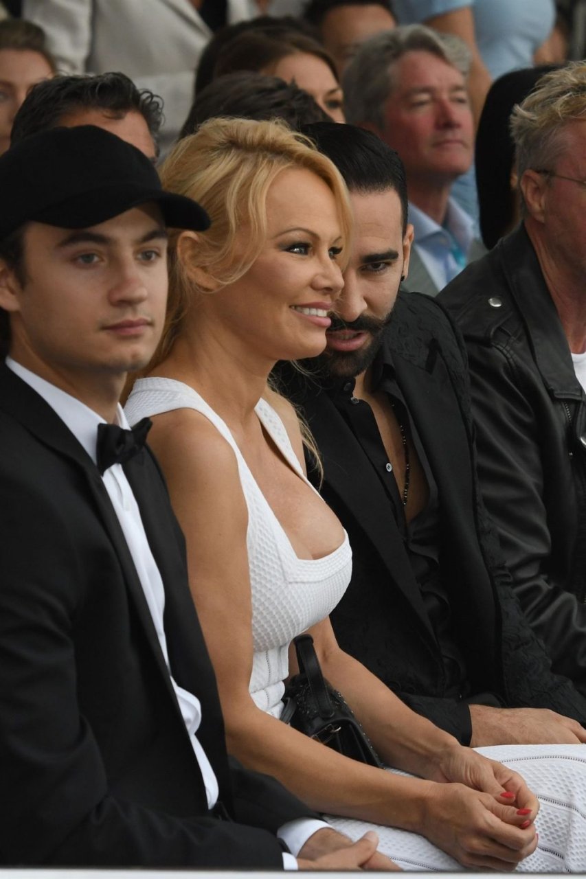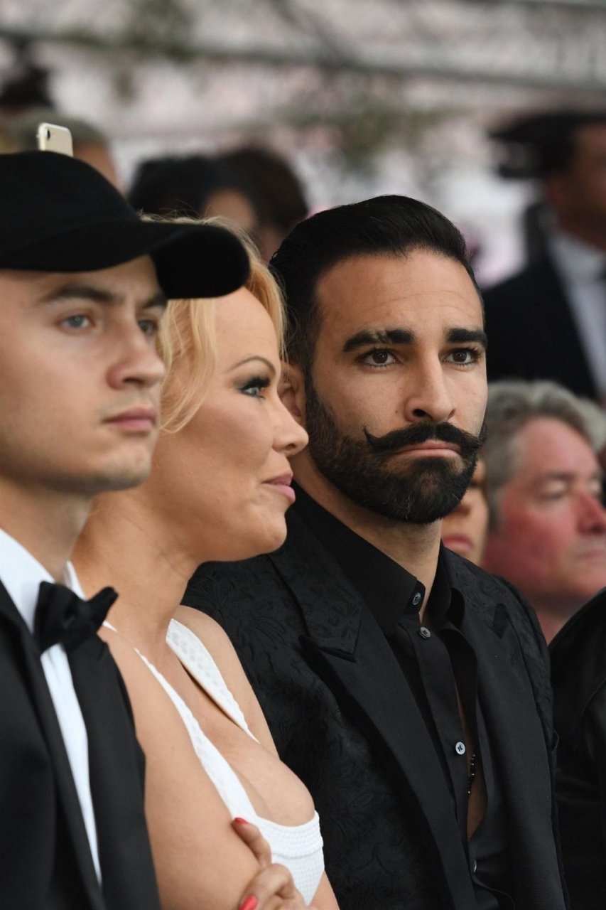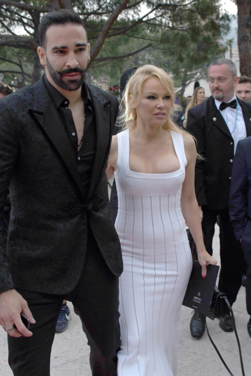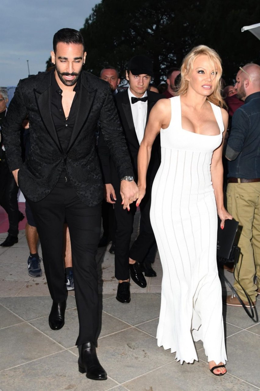 Busty Pamela Anderson (51) y Adil Rami (33) asisten a Amber Lounge U*NITE Fashion Mónaco 2019 en el Hotel Le Meridien Beach Plaza, 24/05/2019.