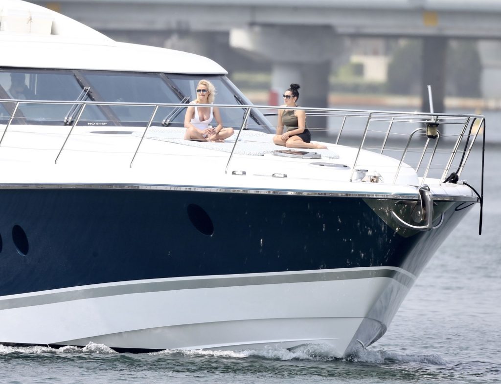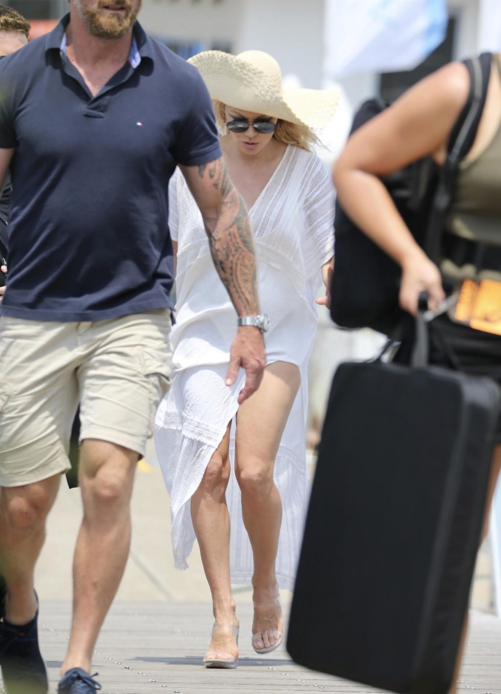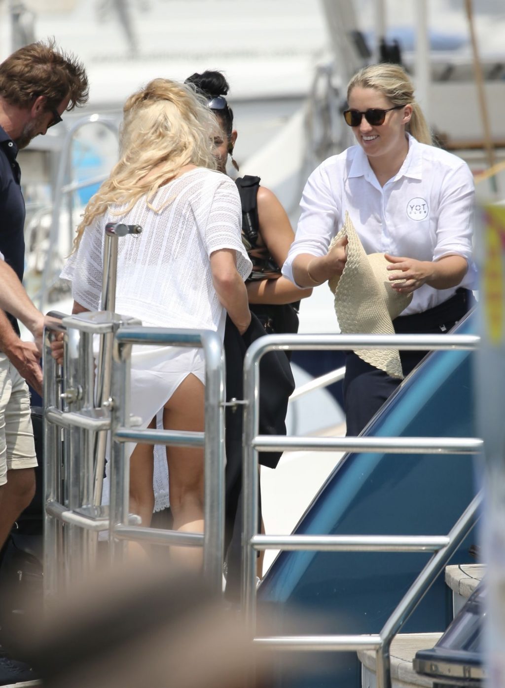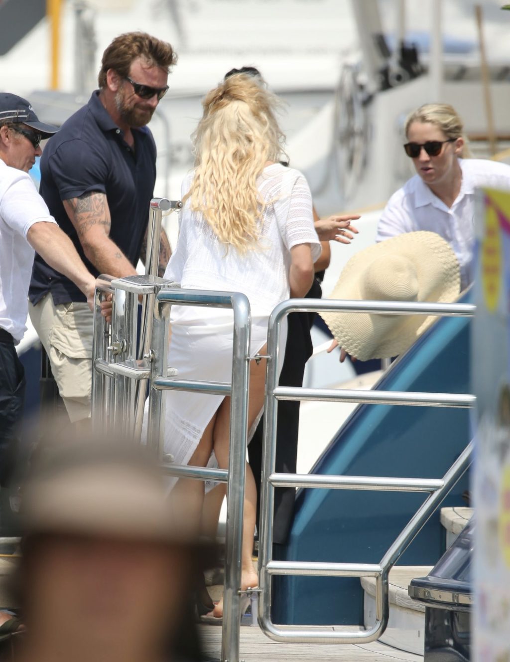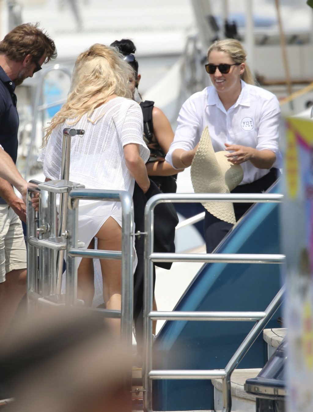 Pamela Anderson con busto posa en un traje de baño blanco en un yate para una sesión de fotos en la Costa Dorada, Australia, 27/11/2019. Han pasado 30 años desde que se estrenó “Baywatch”, pero Pamela todavía se asocia con la valiente y atractiva salvavidas C.J. Parker. ¡La abuela del Fappening luce bien hoy!