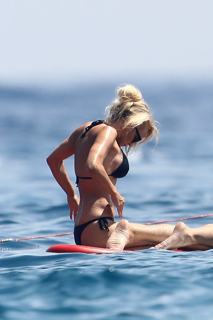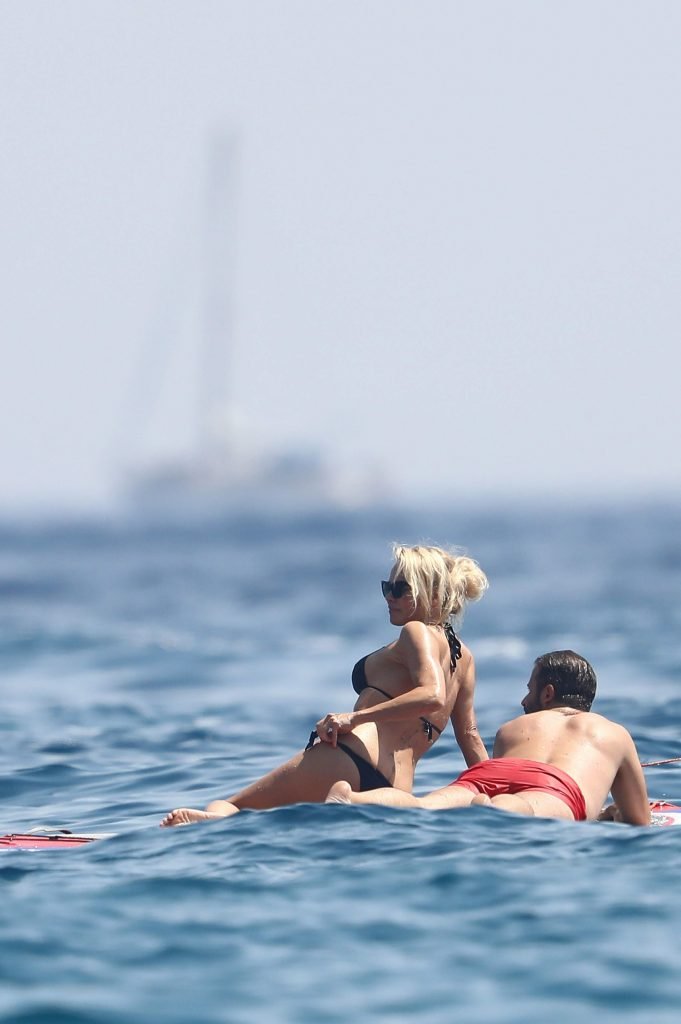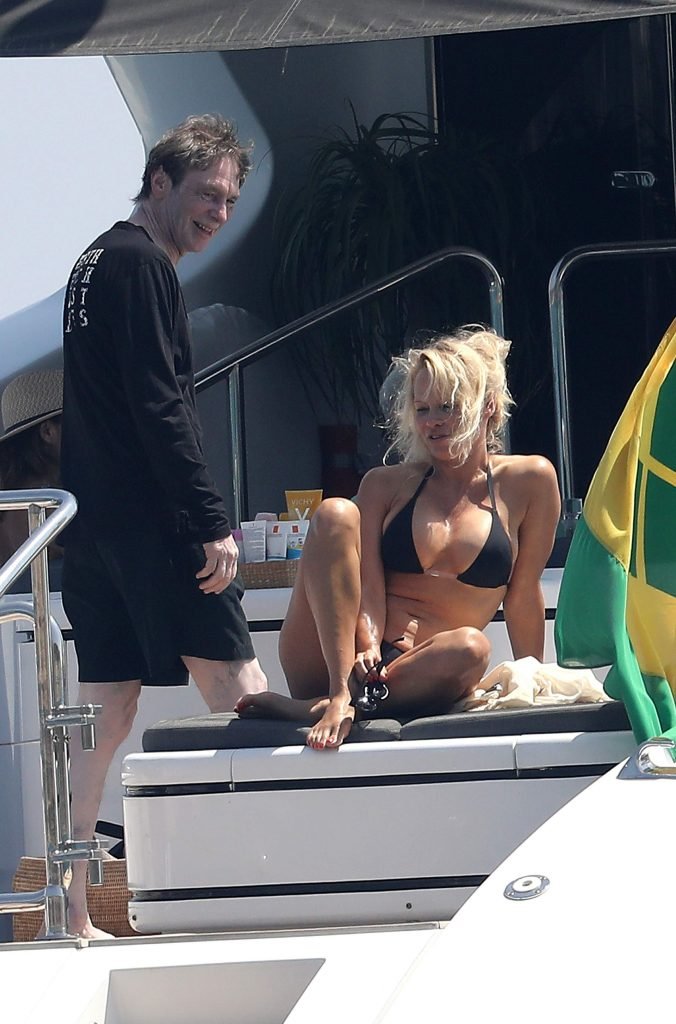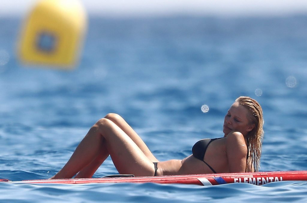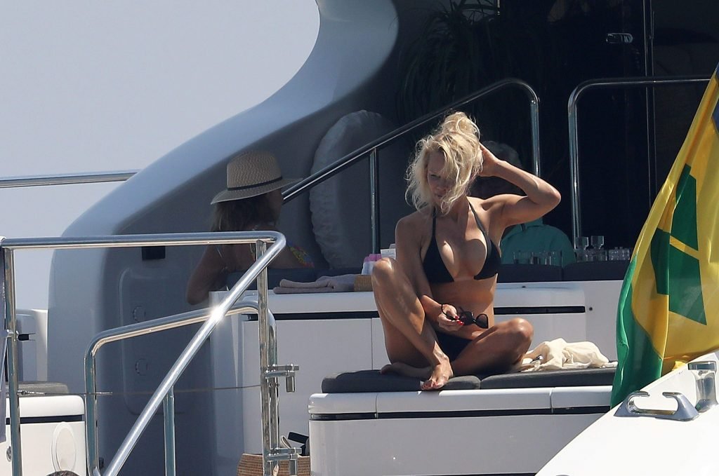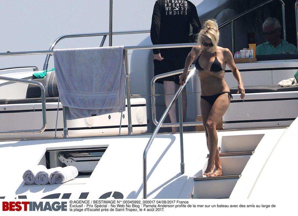 Pamela Anderson muestra su cuerpo ardiente en un bikini negro durante sus vacaciones en Francia, 04/08/2017. Pamela Anderson es una actriz canadiense-estadounidense (Baywatch, 2017), modelo, activista. Edad – 50.