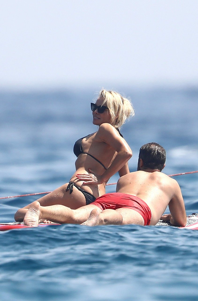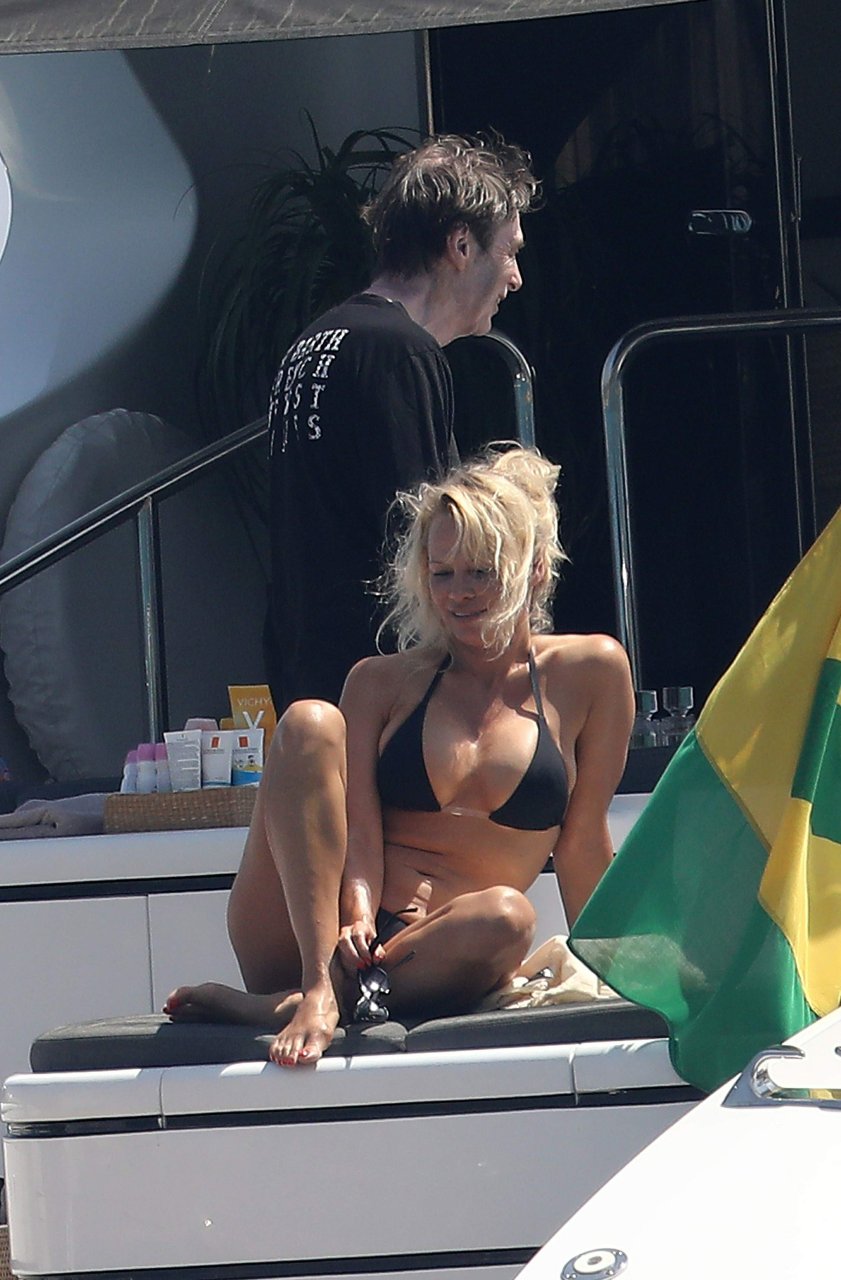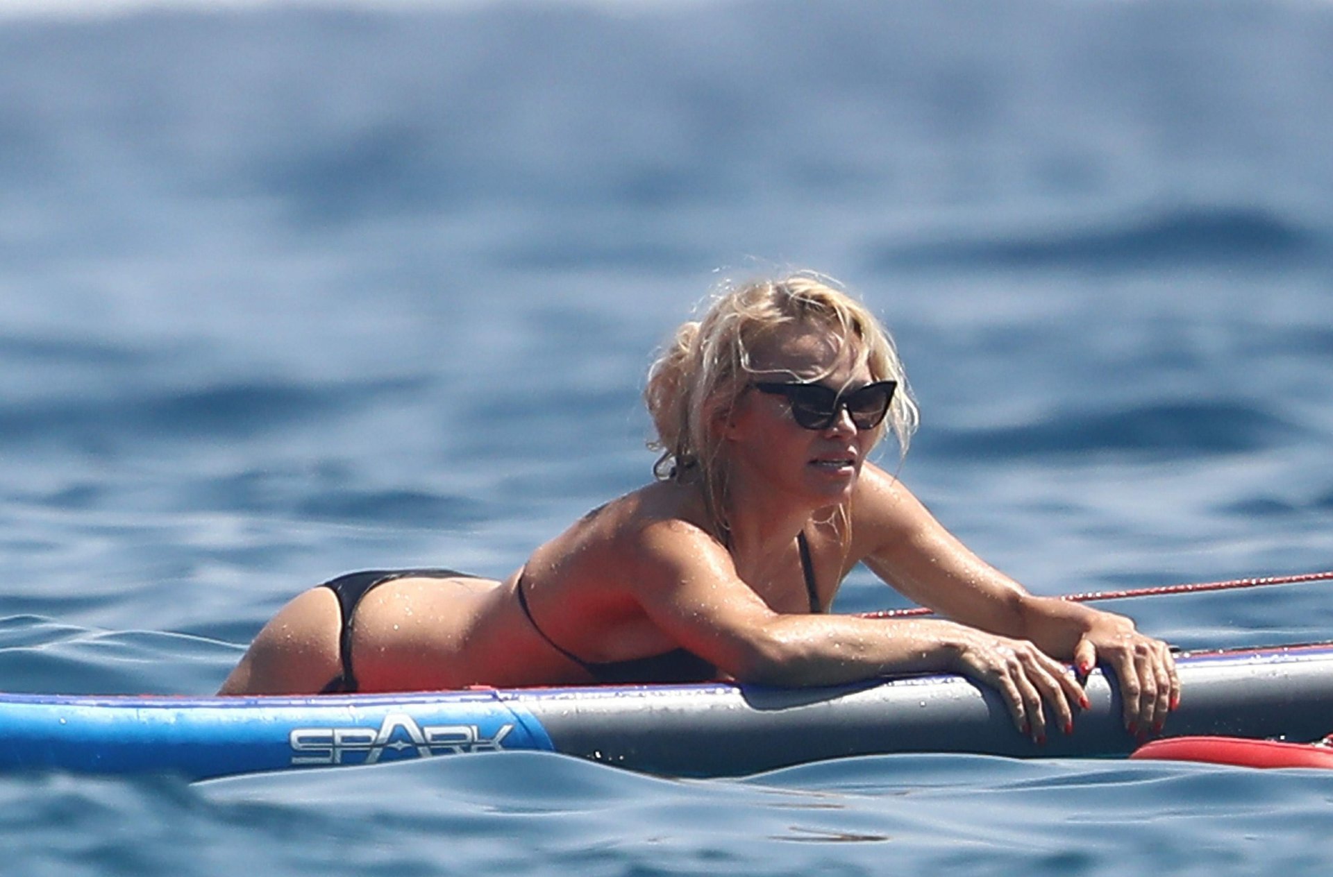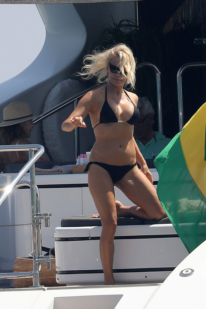 Pamela Anderson muestra su cuerpo ardiente en un bikini negro durante sus vacaciones en Francia, 04/08/2017. Pamela Anderson es una actriz canadiense-estadounidense (Baywatch, 2017), modelo, activista. Edad – 50.