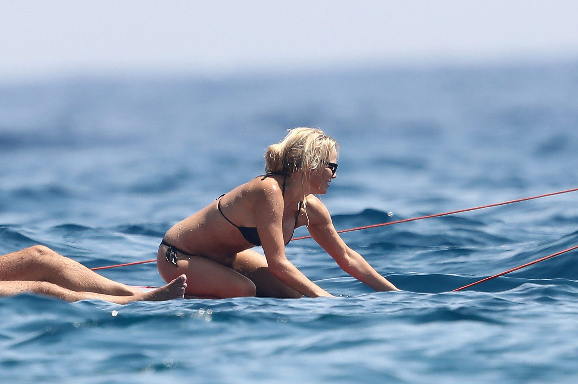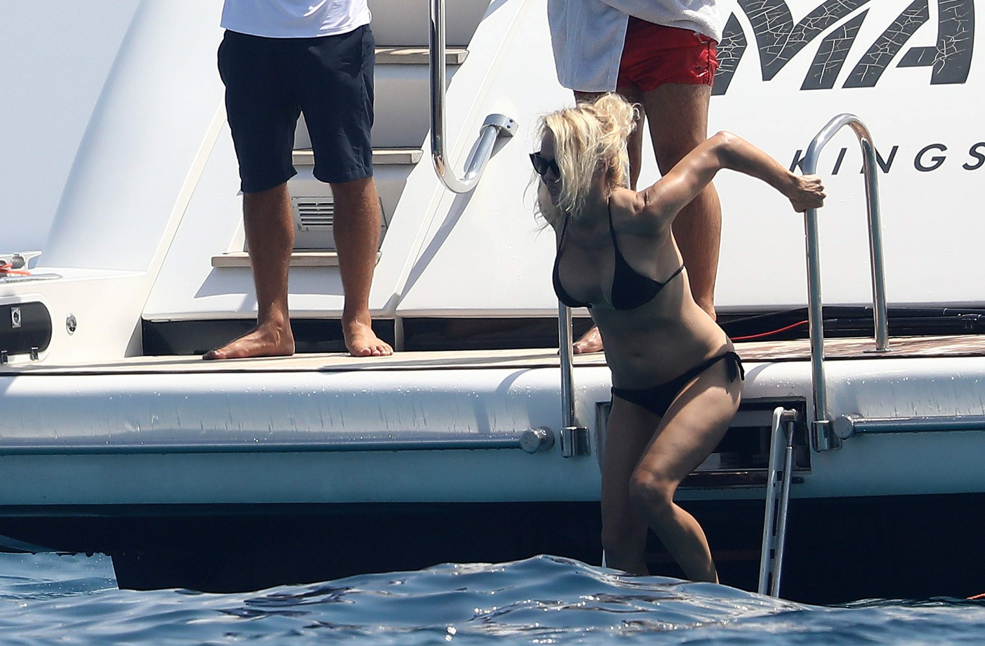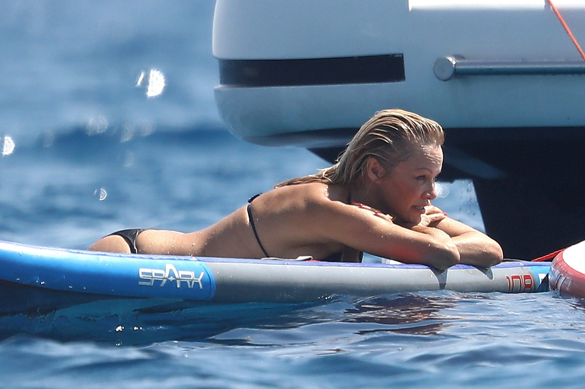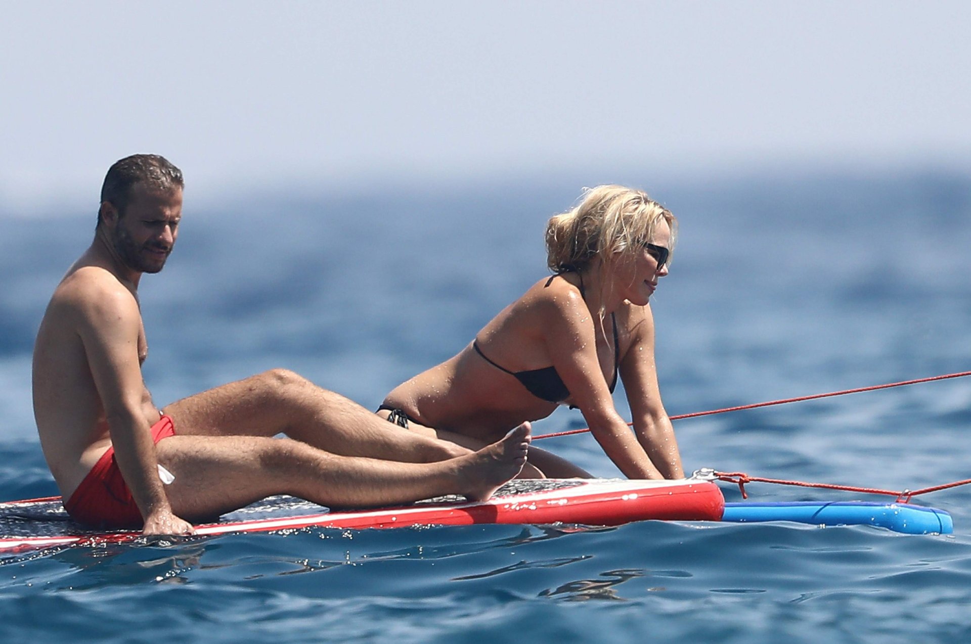 Pamela Anderson muestra su cuerpo ardiente en un bikini negro durante sus vacaciones en Francia, 04/08/2017. Pamela Anderson es una actriz canadiense-estadounidense (Baywatch, 2017), modelo, activista. Edad – 50.