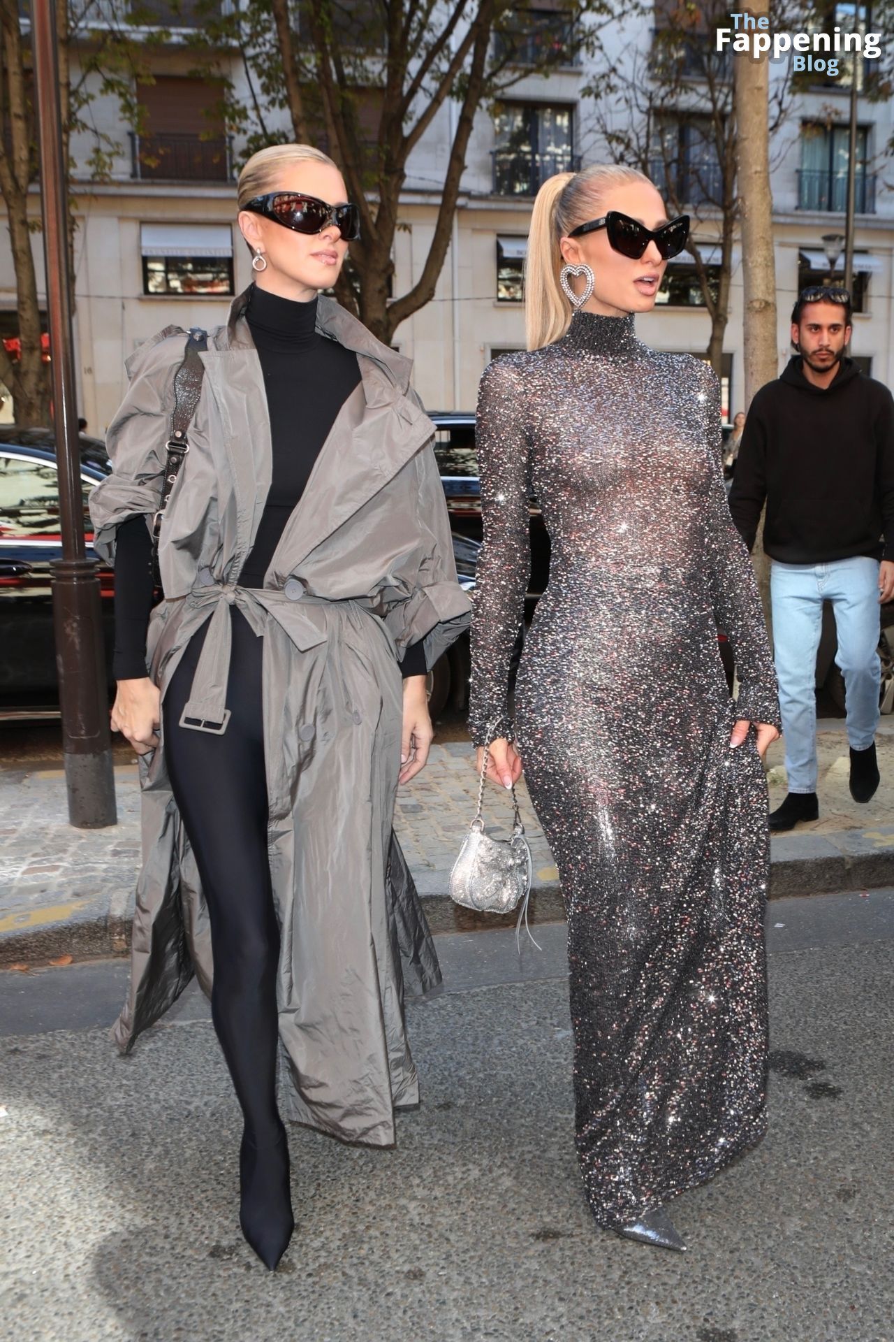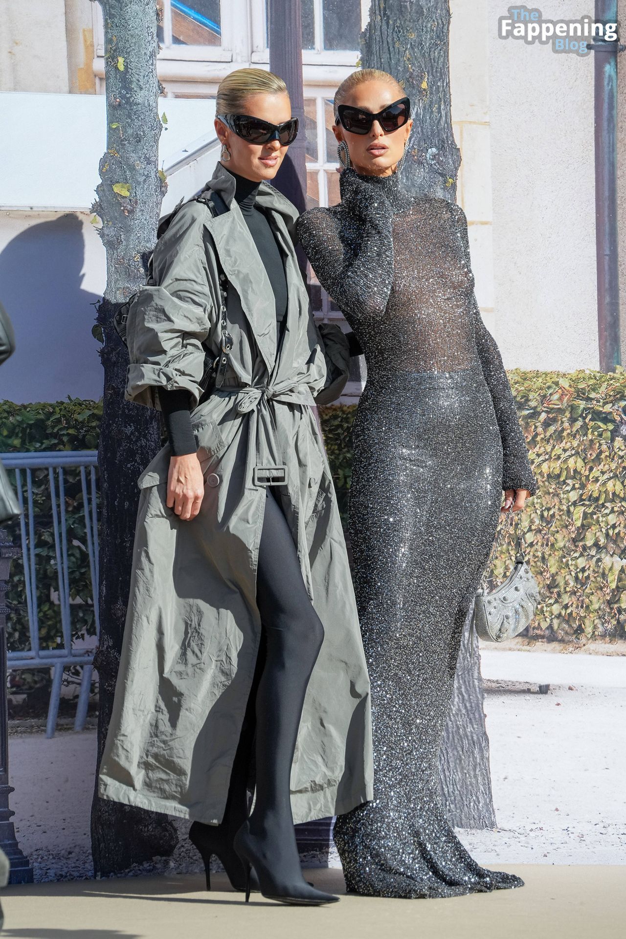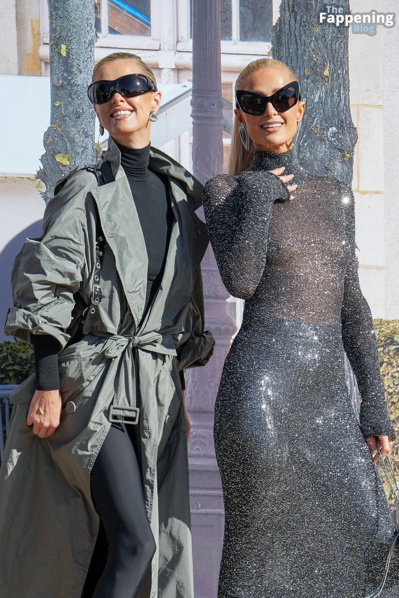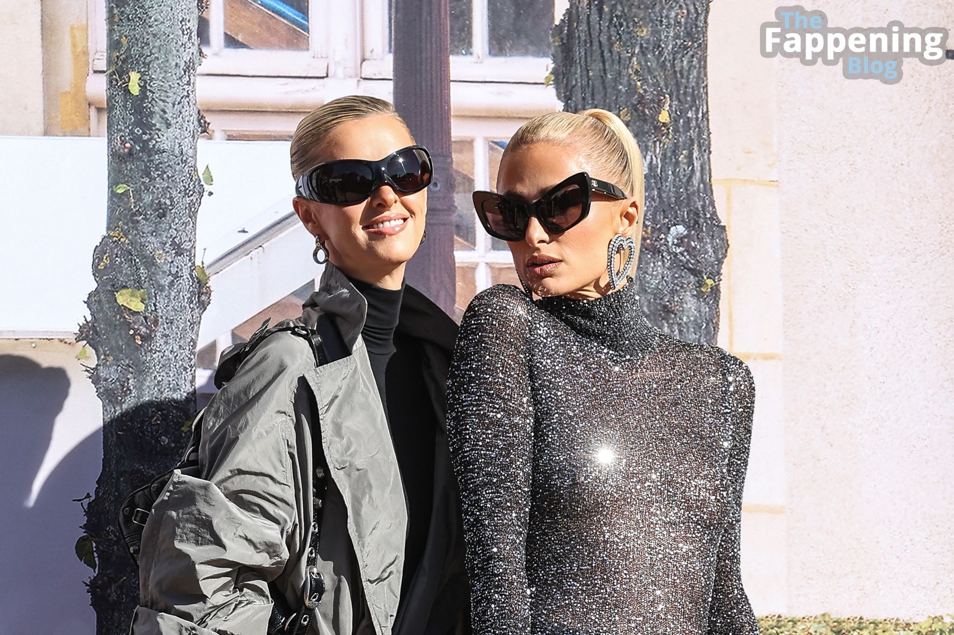 Las elegantes hermanas, Paris Hilton y Nicki Hilton Rothschild, dominando completamente el mundo de la moda mientras salen en París, Francia, después del desfile de Balenciaga. ¡Las miradas se giran a la izquierda y a la derecha, sin duda!