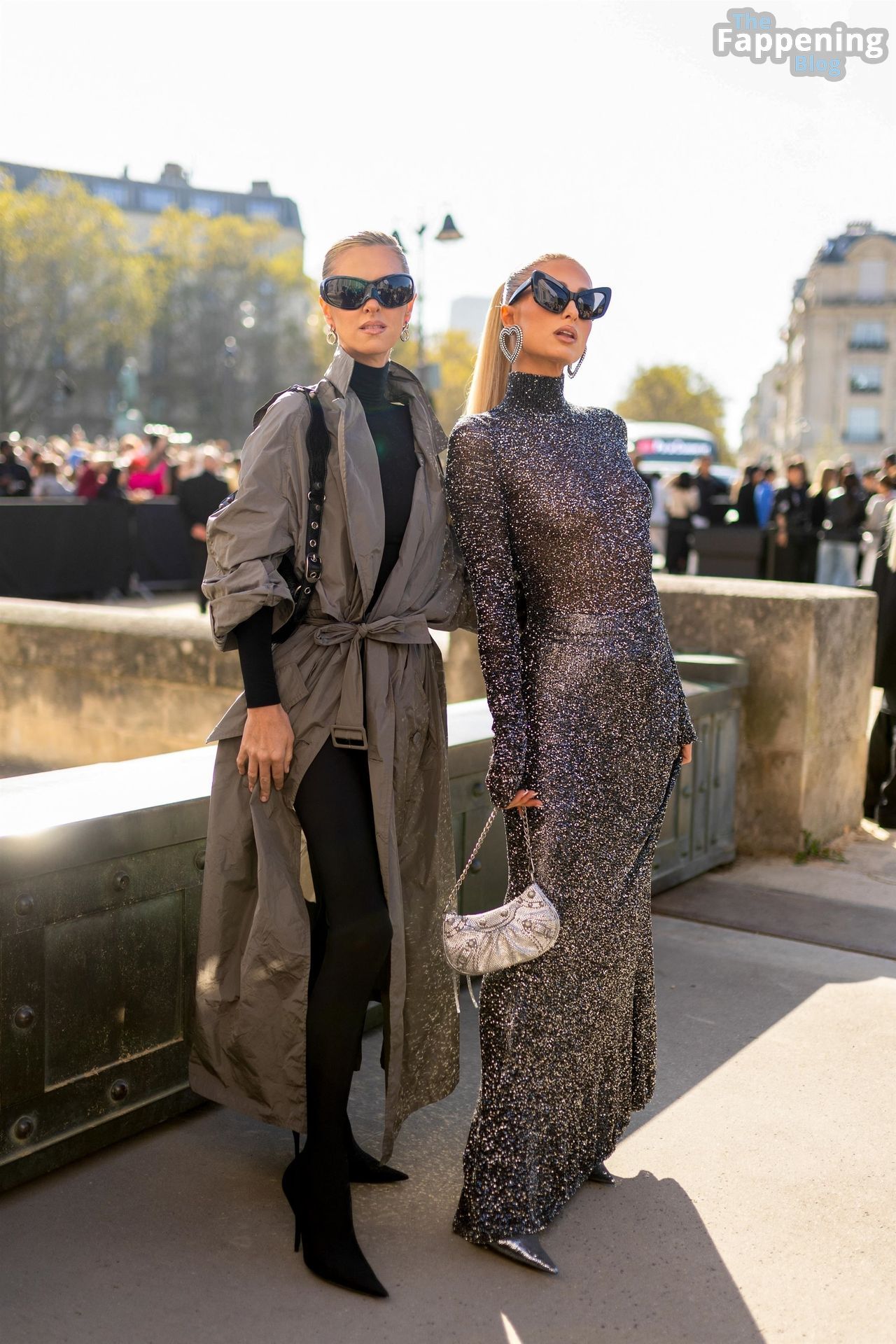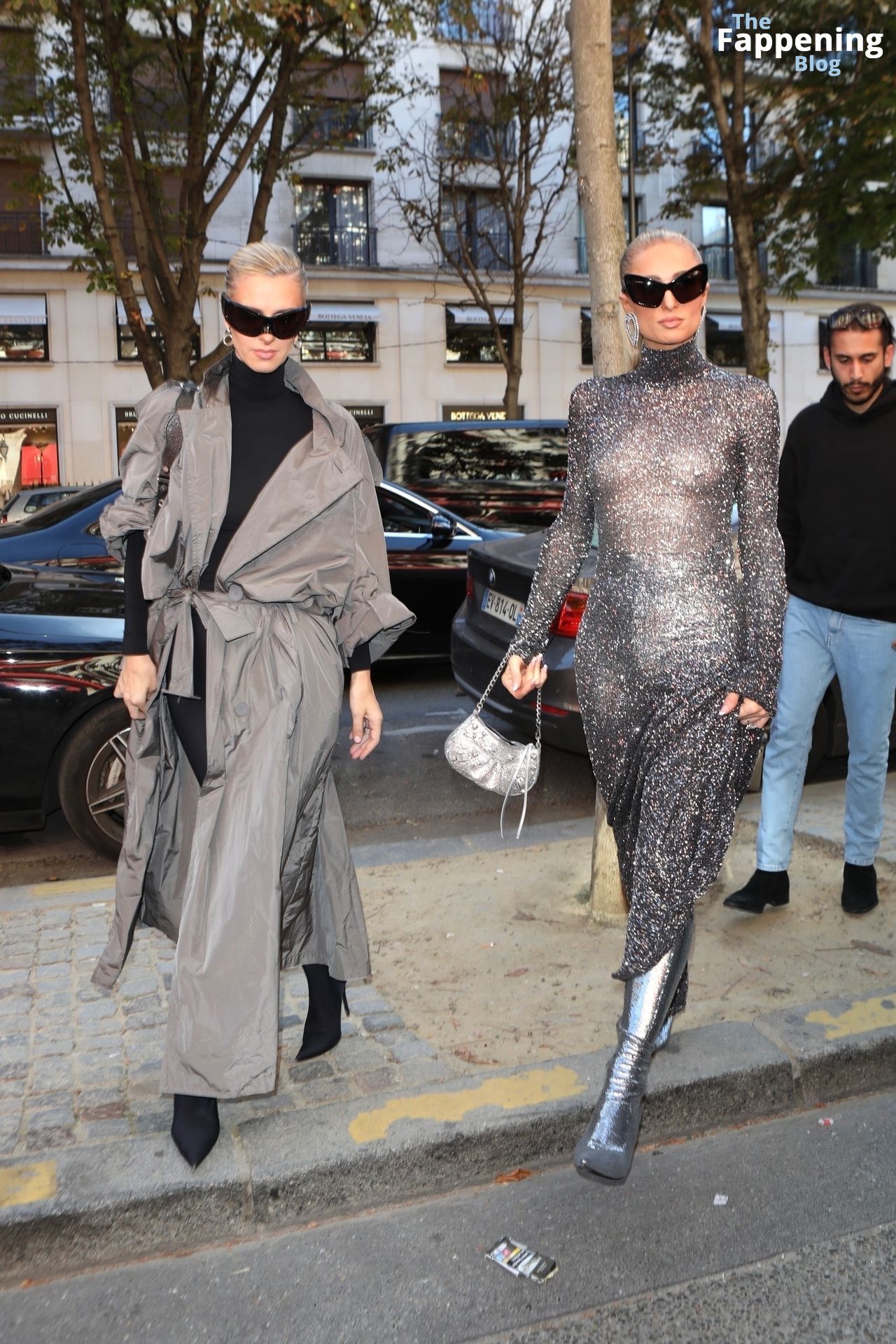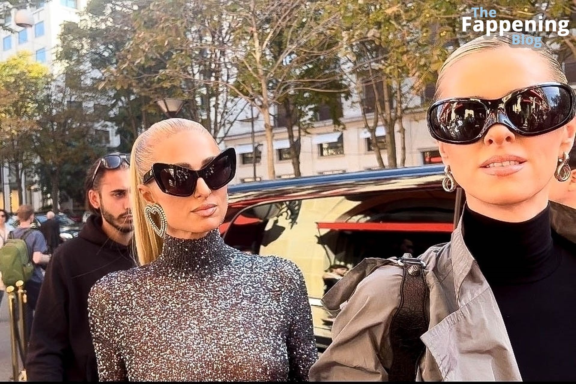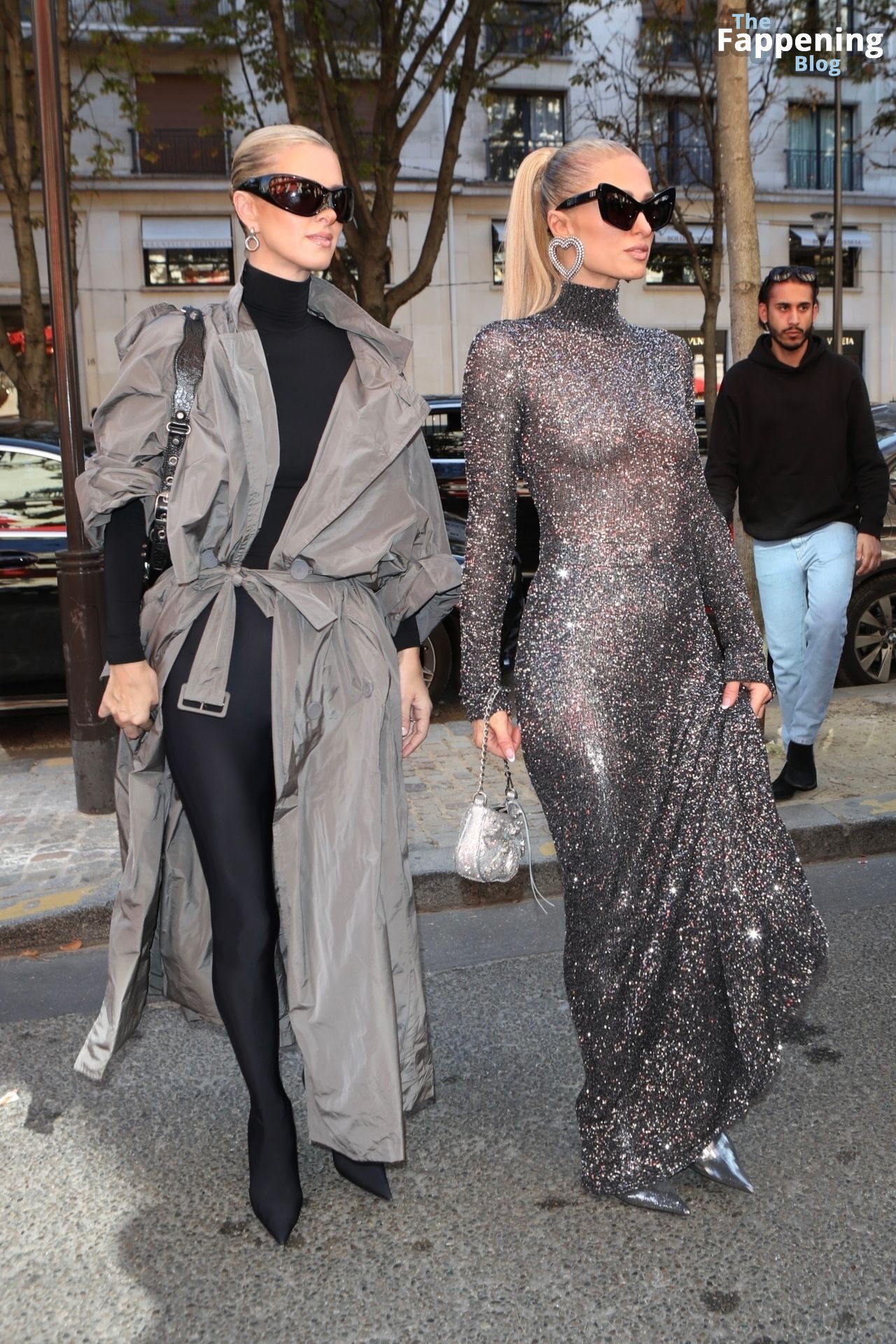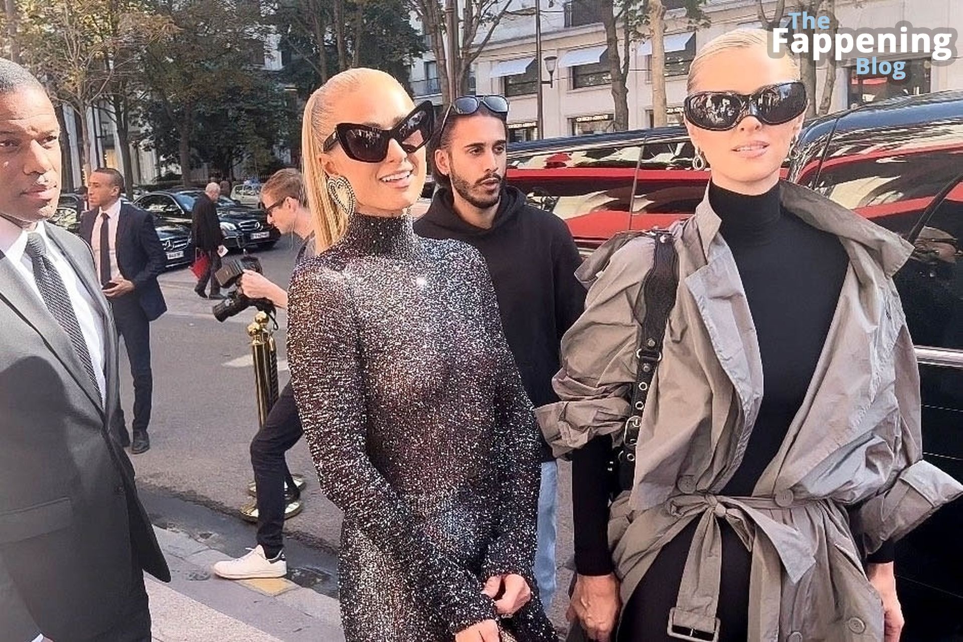 Las elegantes hermanas, Paris Hilton y Nicki Hilton Rothschild, dominando completamente el mundo de la moda mientras salen en París, Francia, después del desfile de Balenciaga. ¡Las miradas se giran a la izquierda y a la derecha, sin duda!