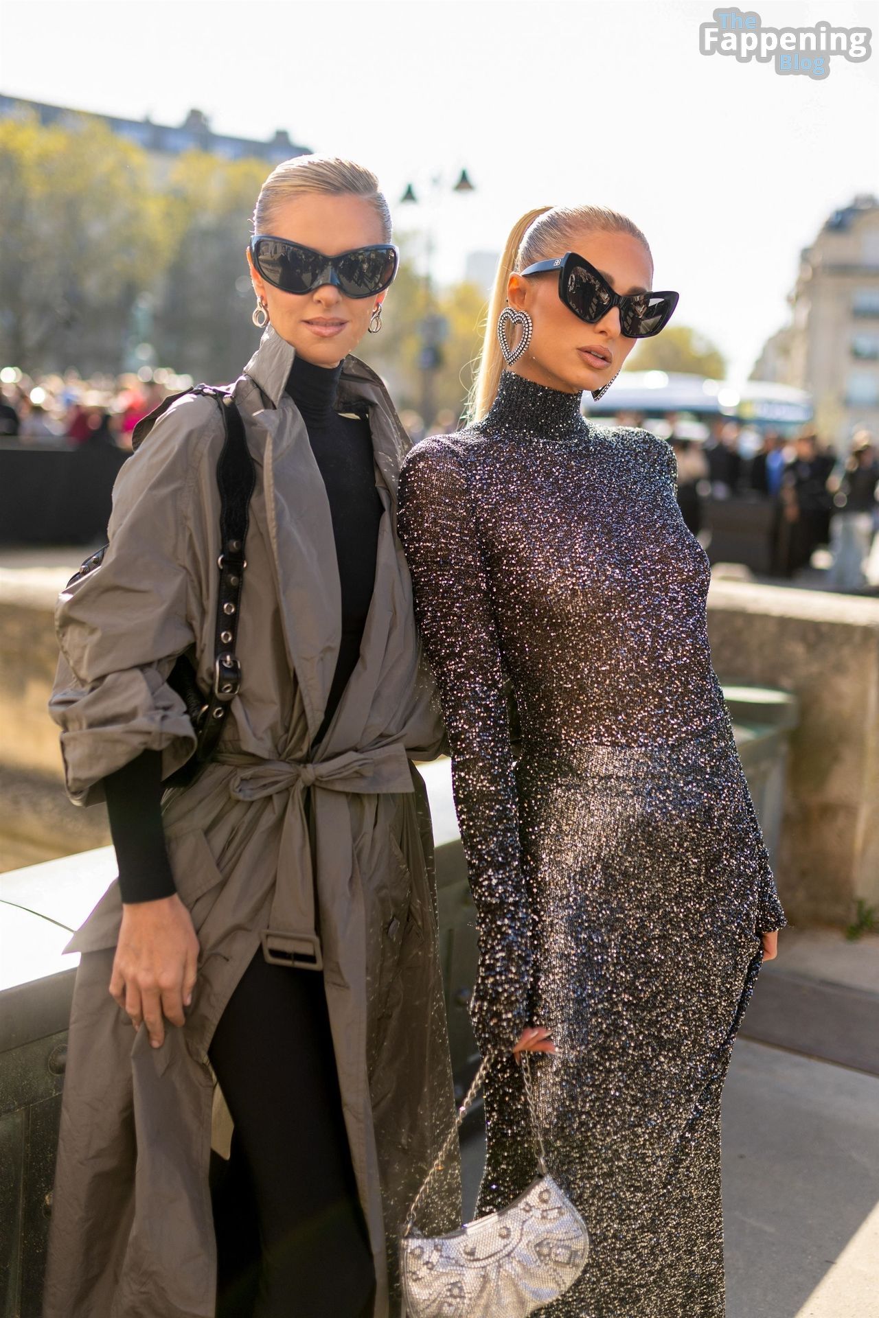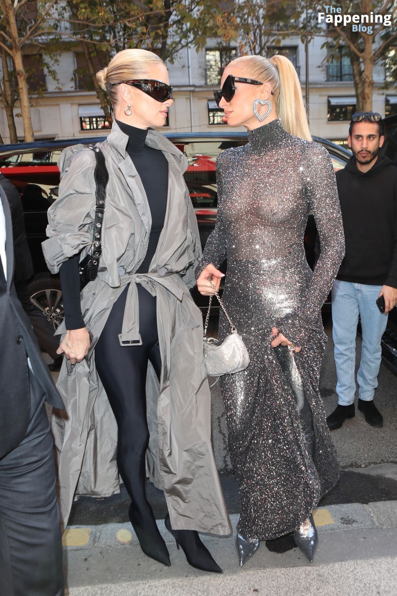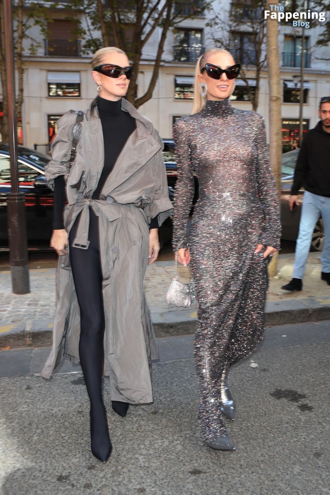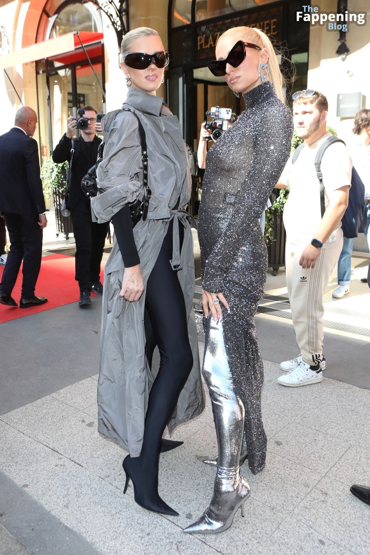 Las elegantes hermanas, Paris Hilton y Nicki Hilton Rothschild, dominando completamente el mundo de la moda mientras salen en París, Francia, después del desfile de Balenciaga. ¡Las miradas se giran a la izquierda y a la derecha, sin duda!