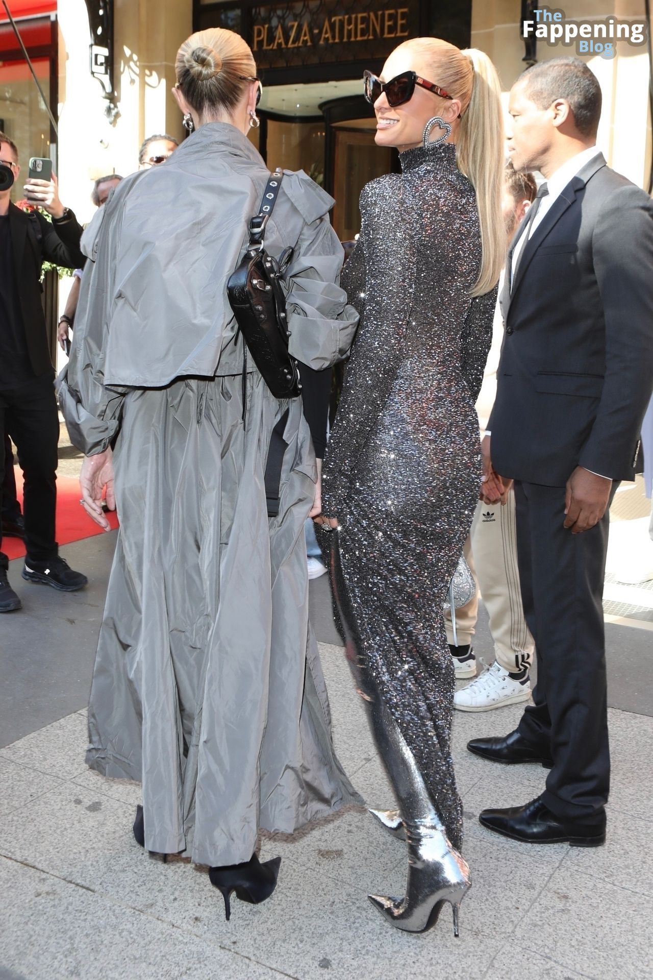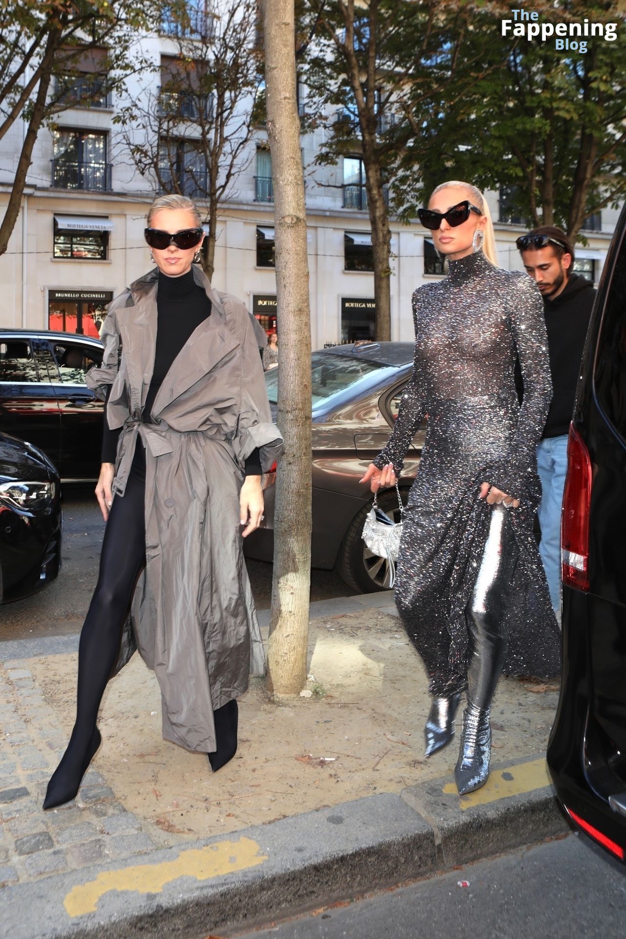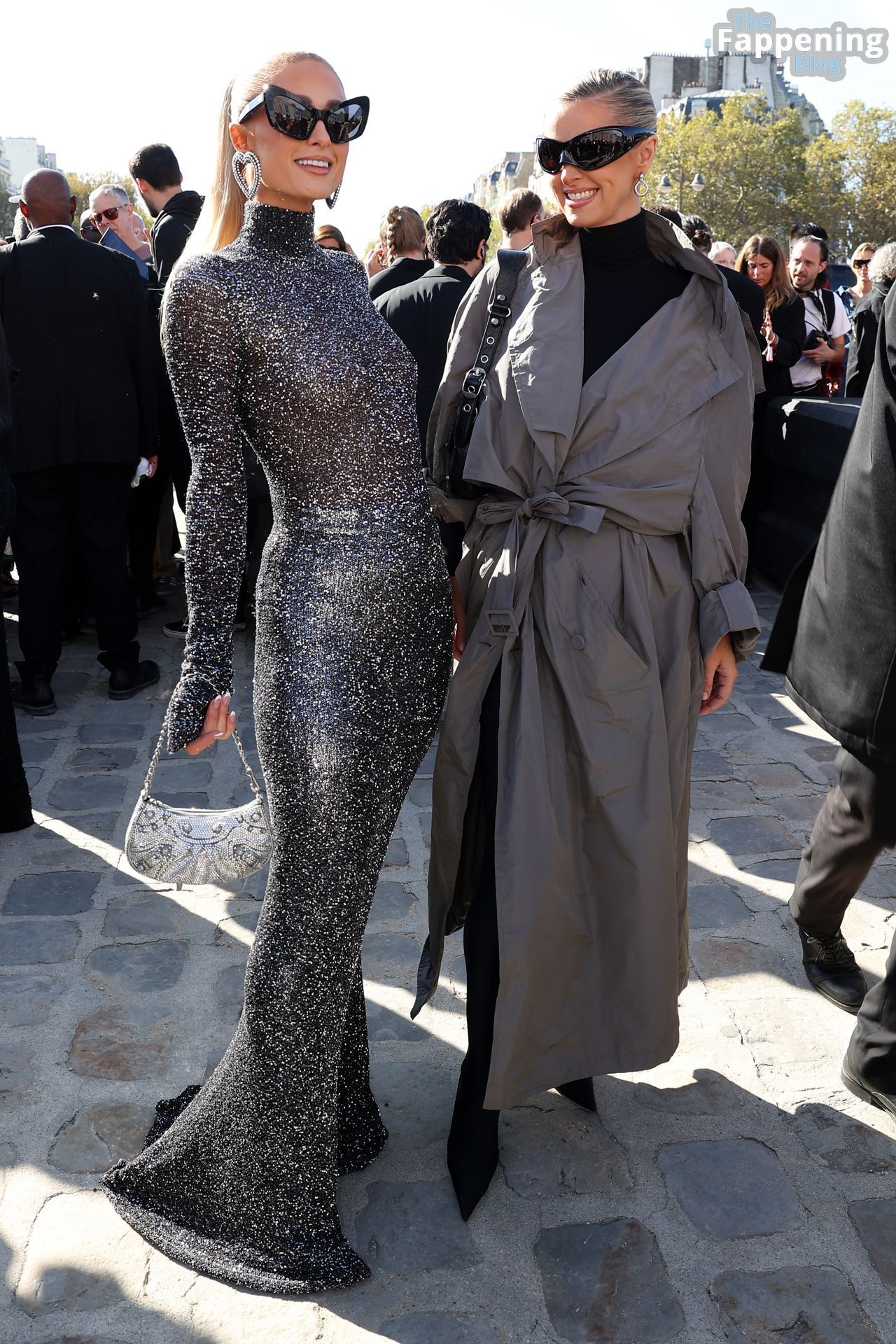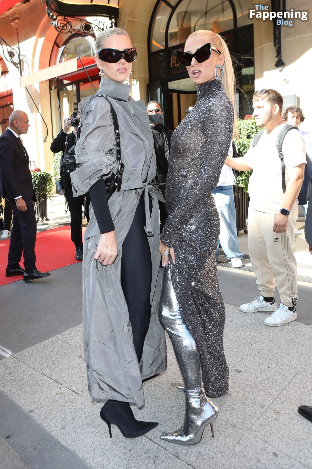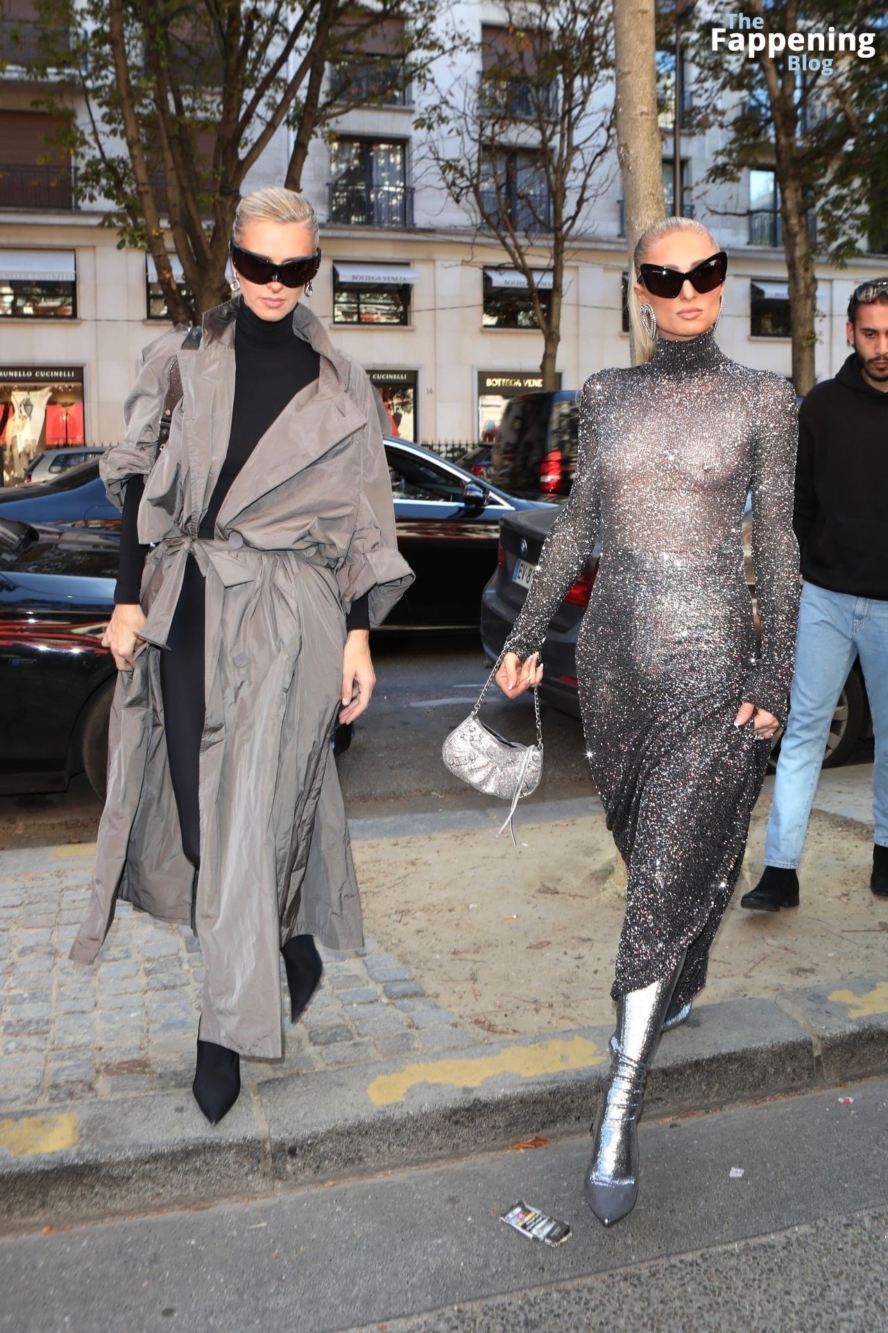 Las elegantes hermanas, Paris Hilton y Nicki Hilton Rothschild, dominando completamente el mundo de la moda mientras salen en París, Francia, después del desfile de Balenciaga. ¡Las miradas se giran a la izquierda y a la derecha, sin duda!