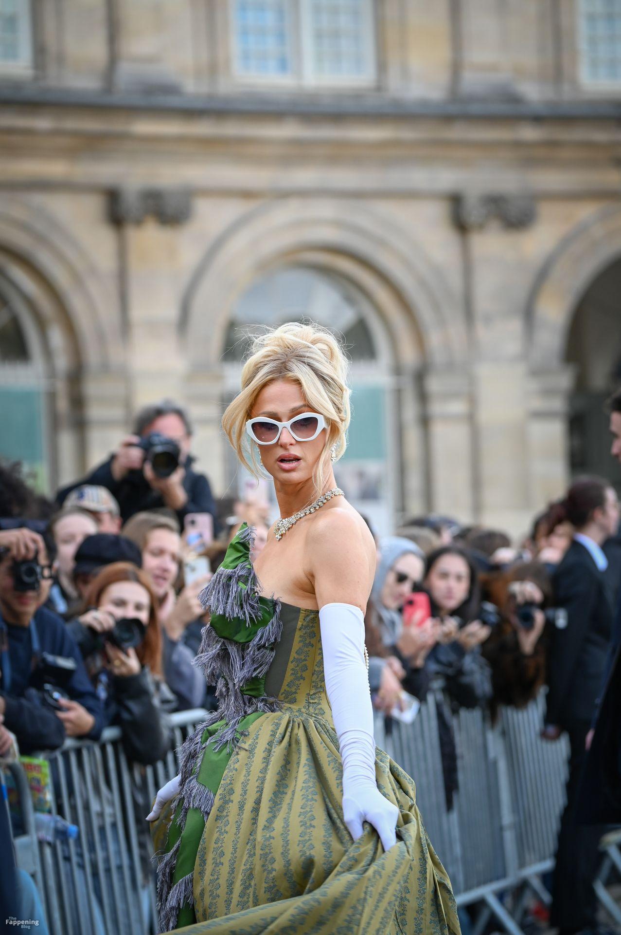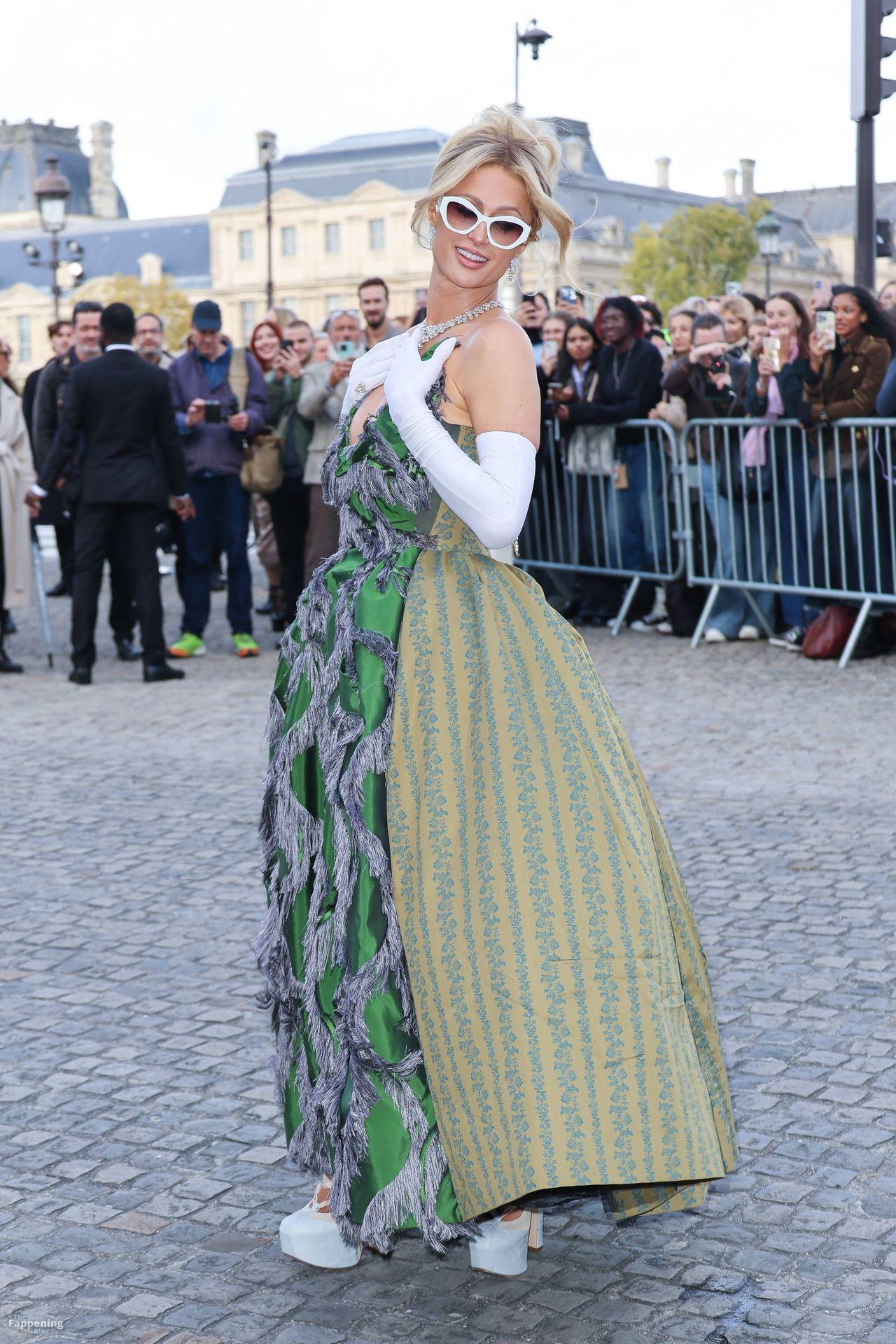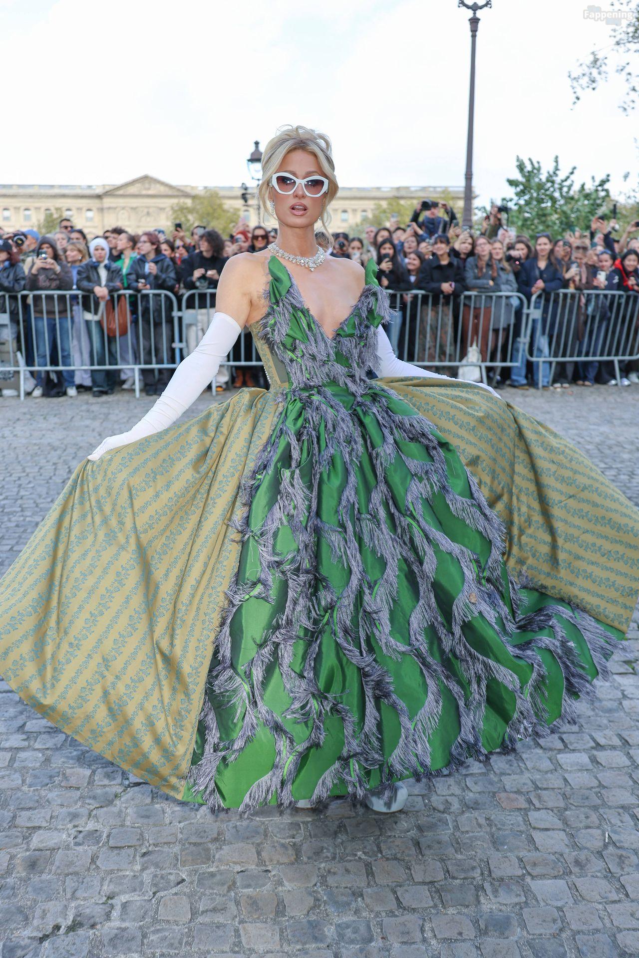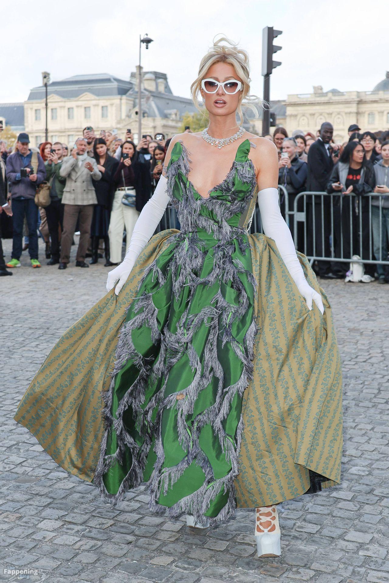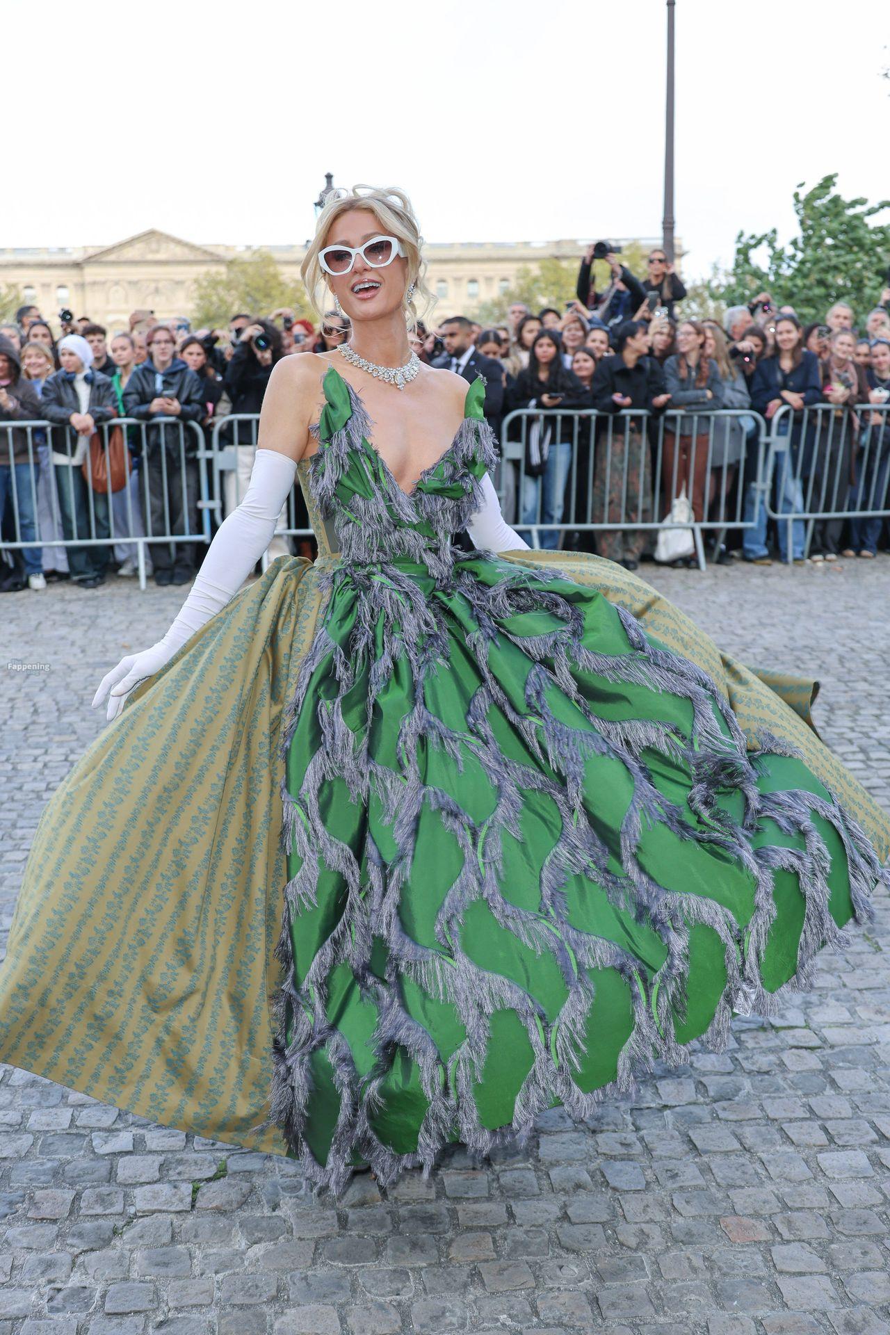 Paris Hilton Presume Sus Sexy Pechos en un Vestido Verde en París (114 Fotos)