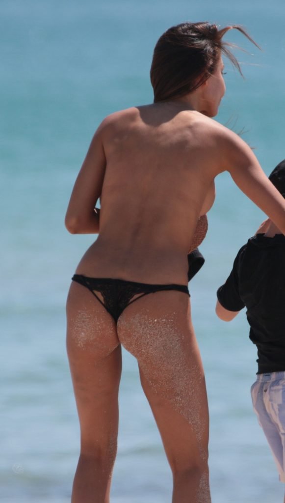 La mexicana Patricia Gloria Contreras aparece en la playa con un bikini negro de Nike durante una sesión de fotos en Miami Beach, 27/04/2018. Patricia Gloria Contreras es una belleza mexicana de 30 años, bloguera de estilo de vida y moda, modelo y actriz. ¡Hola!