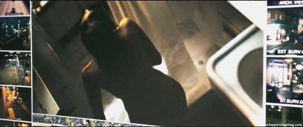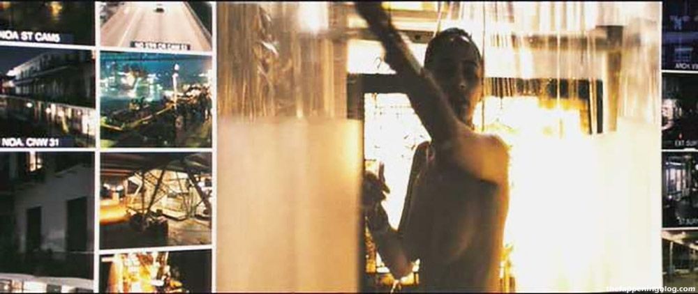 Patton being watched on a large monitor in a ‘Deja Vu’. Paula Patton removes panties and steps naked into a shower, showing her naked ass and breasts before pulling the shower curtain.