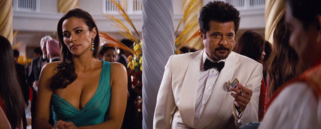 Paula Patton is seen in a scene checking herself out in a white bra and panties as she stands in front of a mirror and turns from side to side. A guy then climbs in through her window, and we see Paula still in her underwear as she makes out with the man.