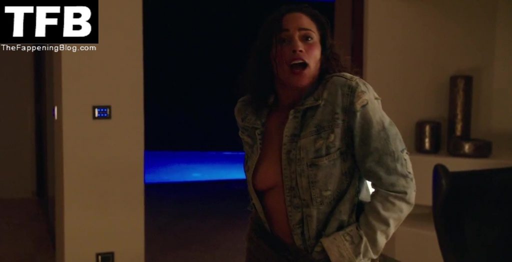 Here is Paula Patton nude, showing bare boobs, as she fixes a drink. She wears nothing but a pair of red panties. She kneels on a bed beside a guy and talks to him. At the same time, her nipples are peeking out behind the long hair.