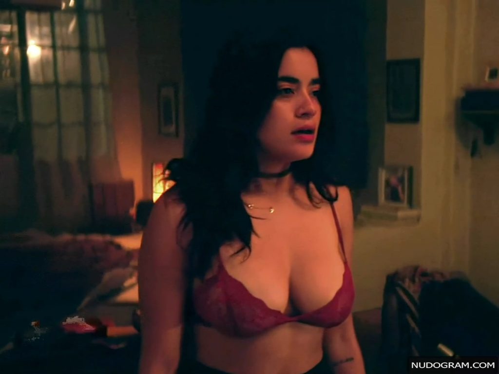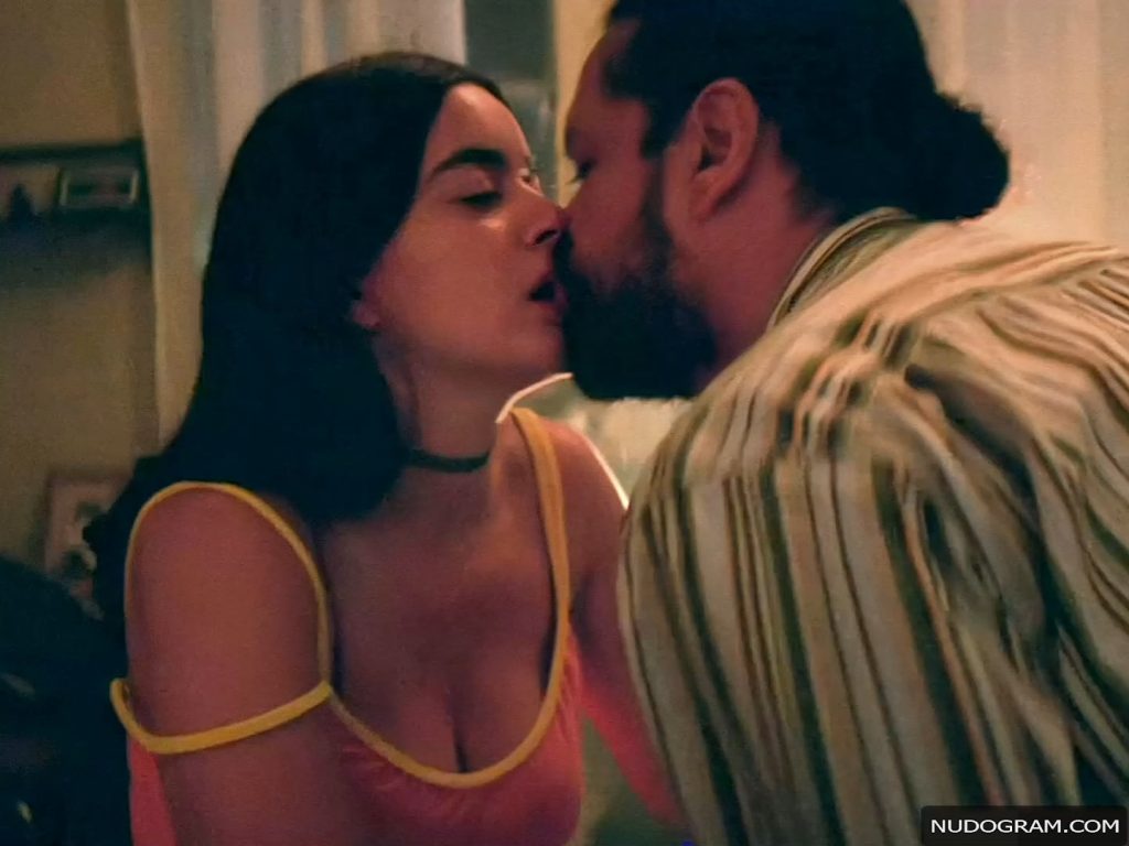 Paulina Gaitan está besándose con un chico y se quita la camisa para revelar un sostén. Luego se besan más mientras ella se quita el sostén y las panties, Paulina recostada desnuda de espaldas en una cama con el chico encima de ella.