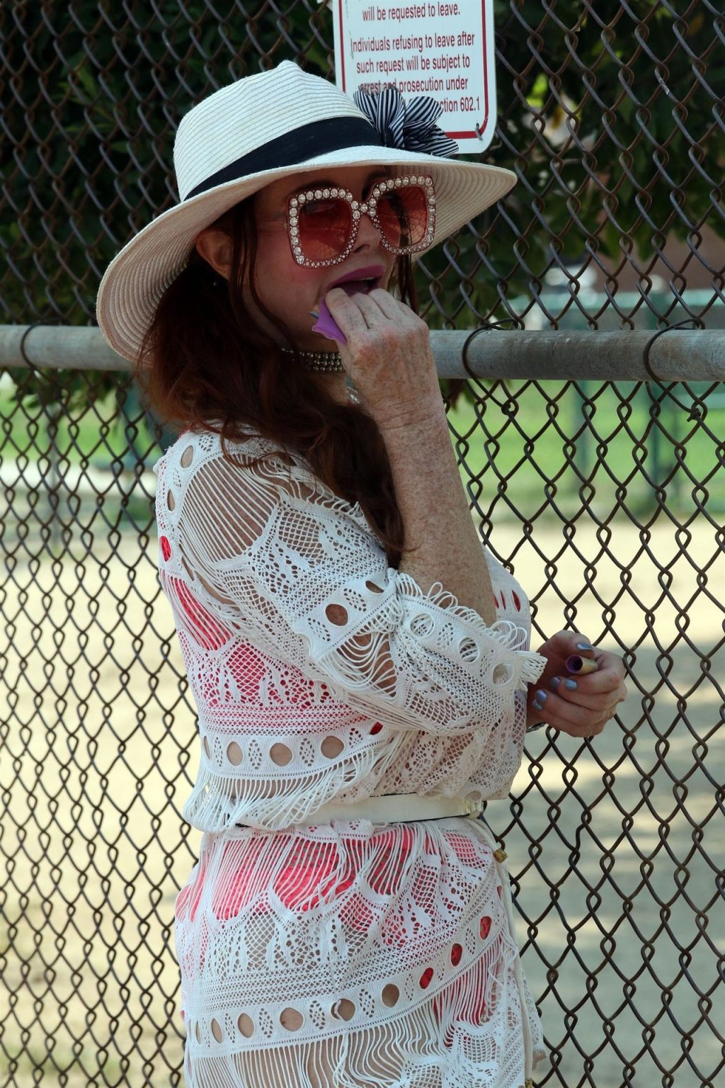 Parece un bikini transparente y ella solo lleva puesto su pañal de anciana debajo.