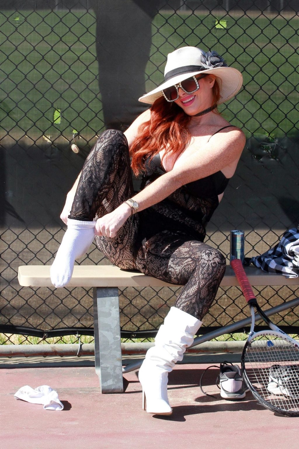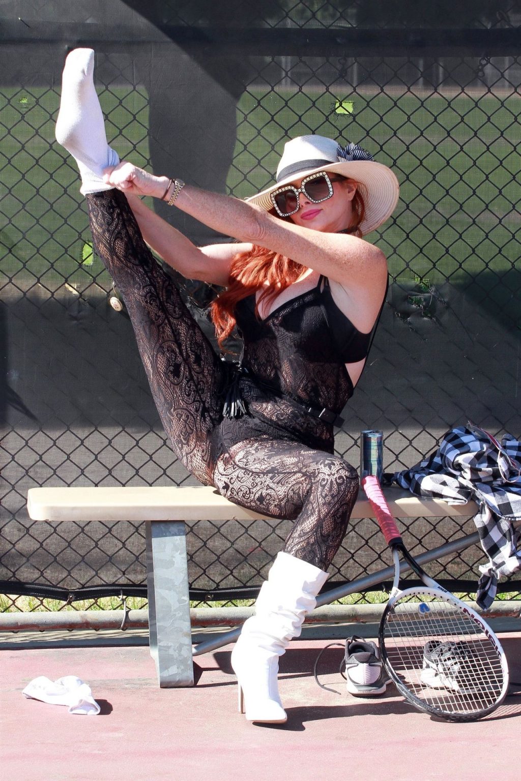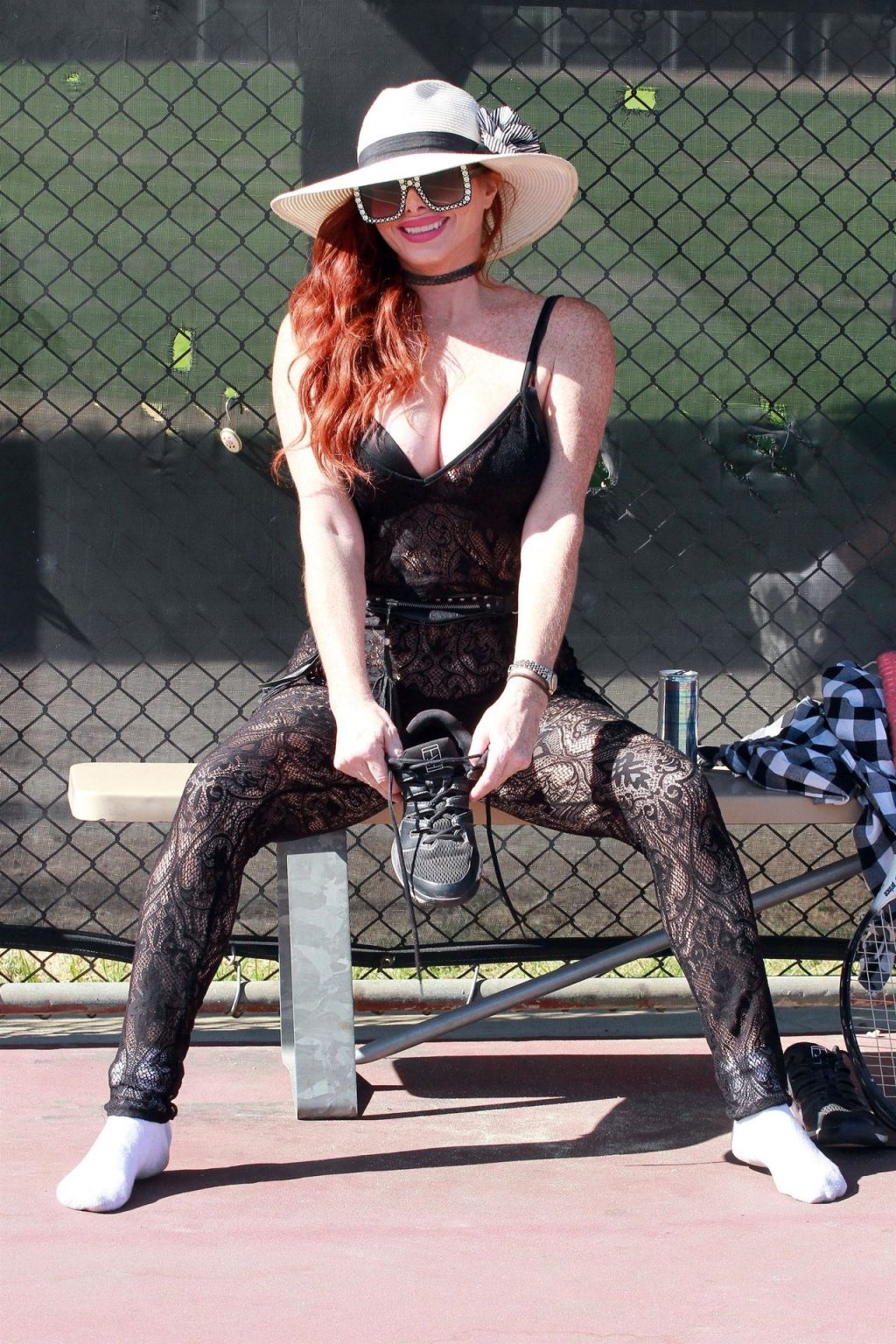 Phoebe Price es vista cambiándose de zapatos y golpeando algunas pelotas de tenis en las canchas con un body de encaje – Los Ángeles, 11/05/2020.