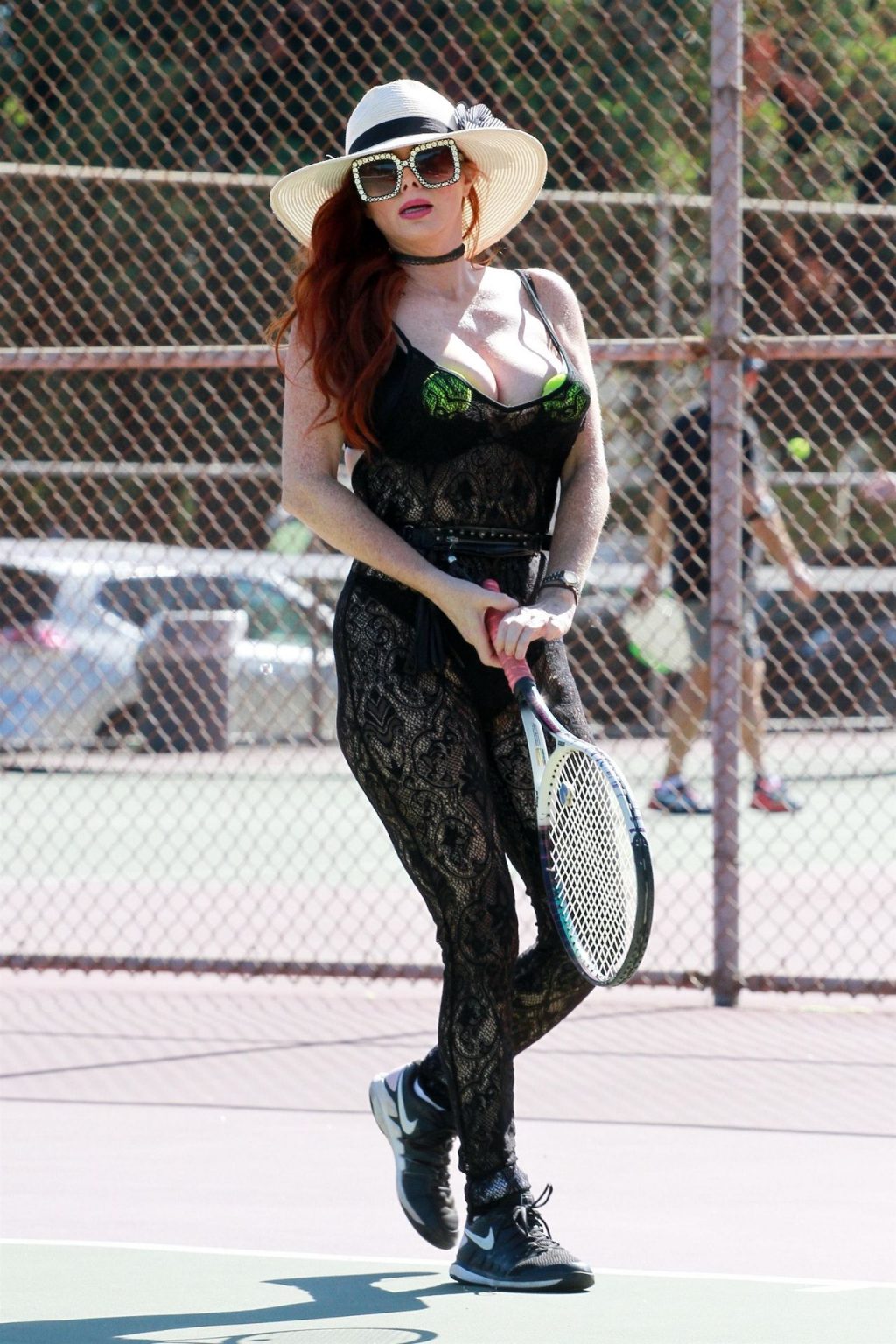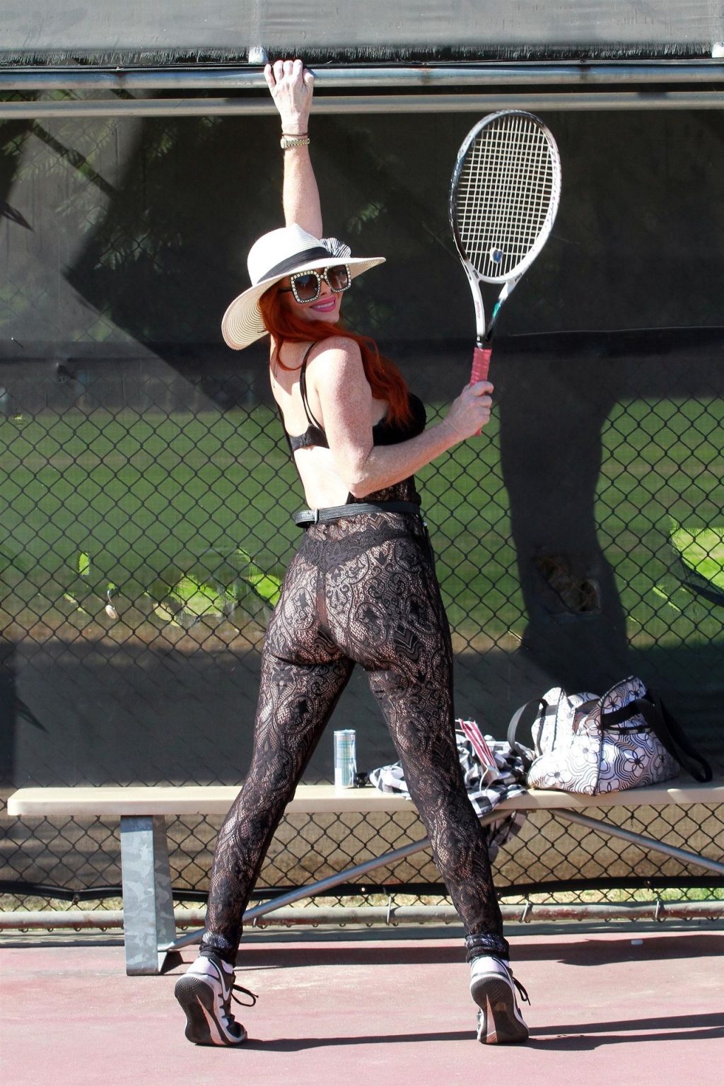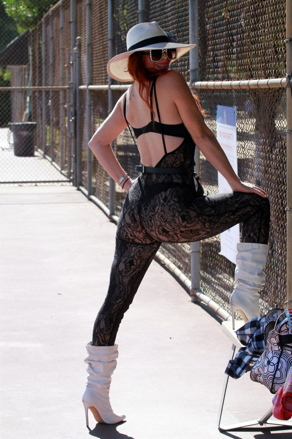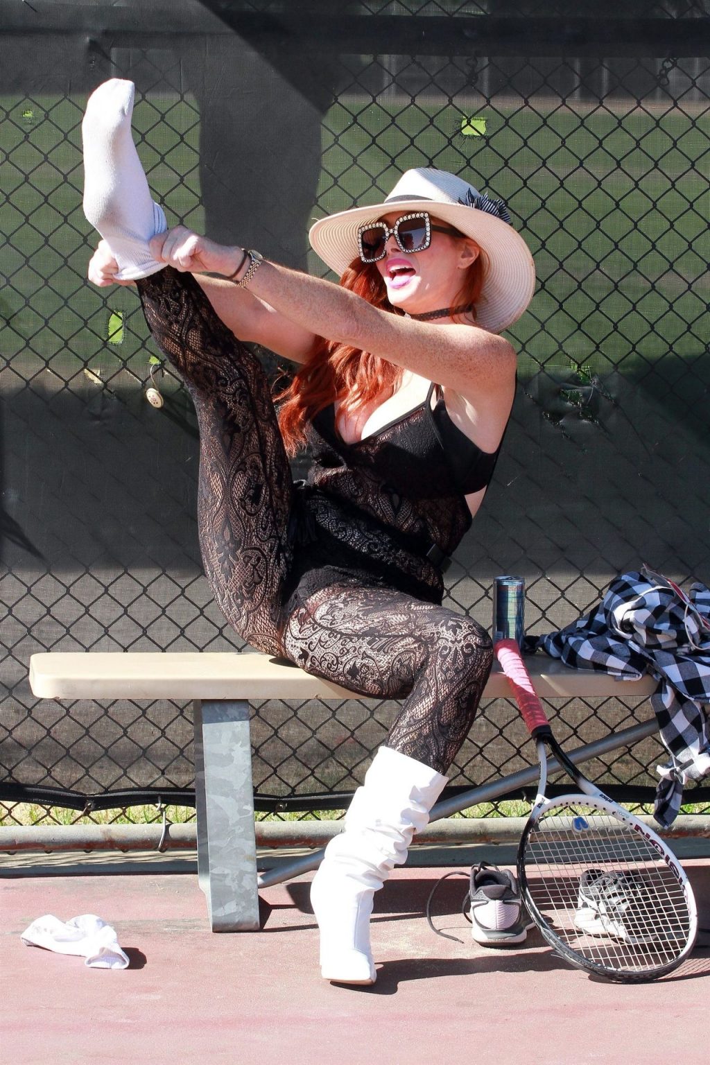 Phoebe Price es vista cambiándose de zapatos y golpeando algunas pelotas de tenis en las canchas con un body de encaje – Los Ángeles, 11/05/2020.