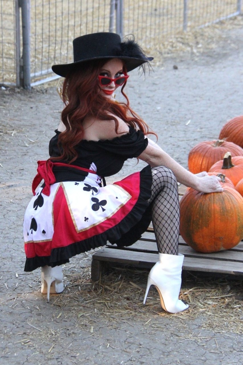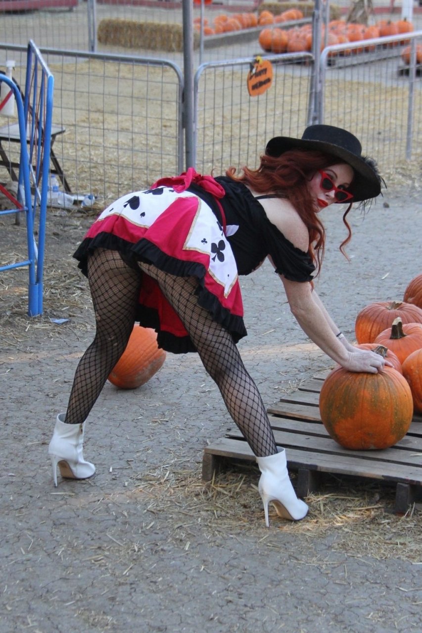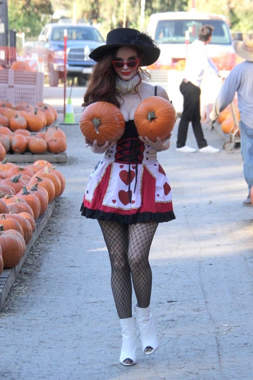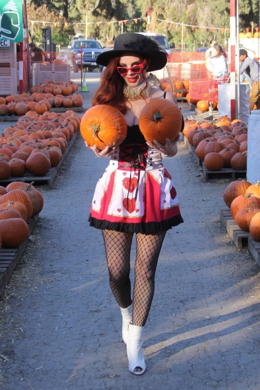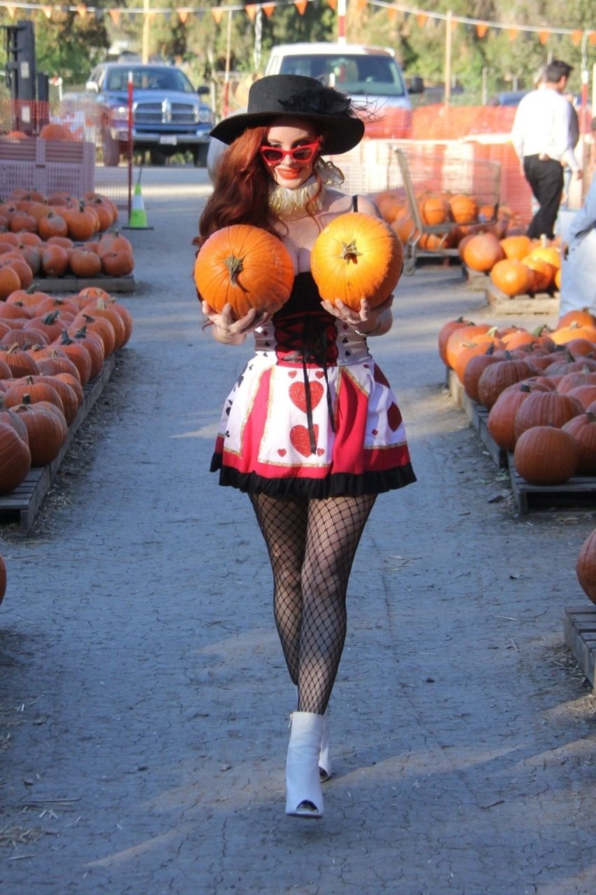 Busty Phoebe Price se mete en el espíritu de Halloween en The Pumpkin Patch en Los Ángeles, 18/10/2018.