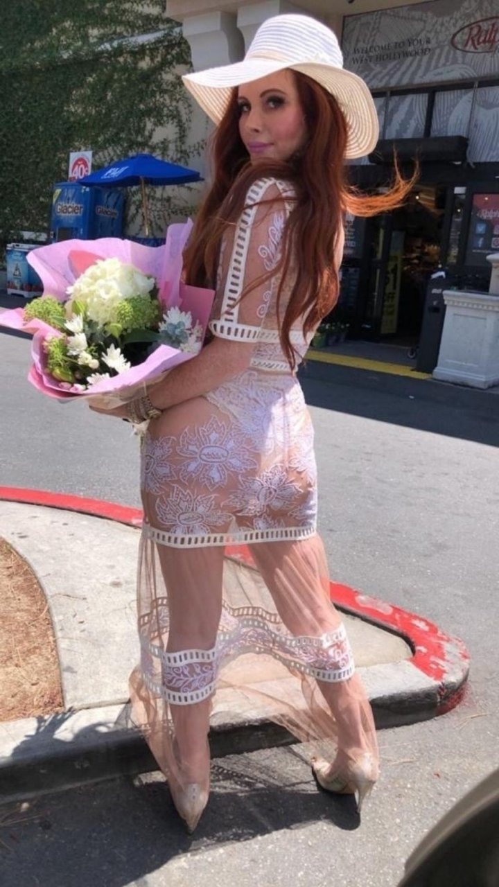 Phoebe Price compra flores para su mamá en el Día de la Madre en Los Ángeles, 12/05/2019. La eterna buscadora de atención, aspirante a actriz, mantuvo las cosas elegantes como siempre, luciendo un vestido transparente con bragas de encaje.