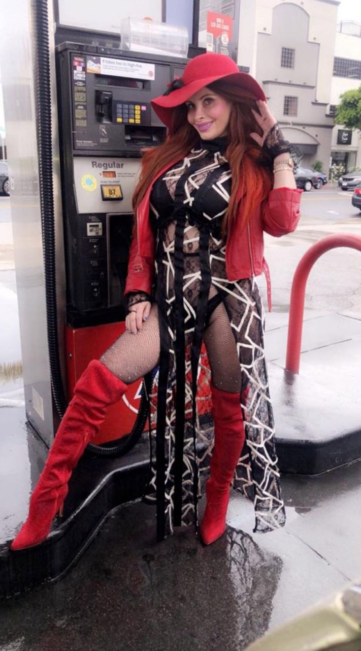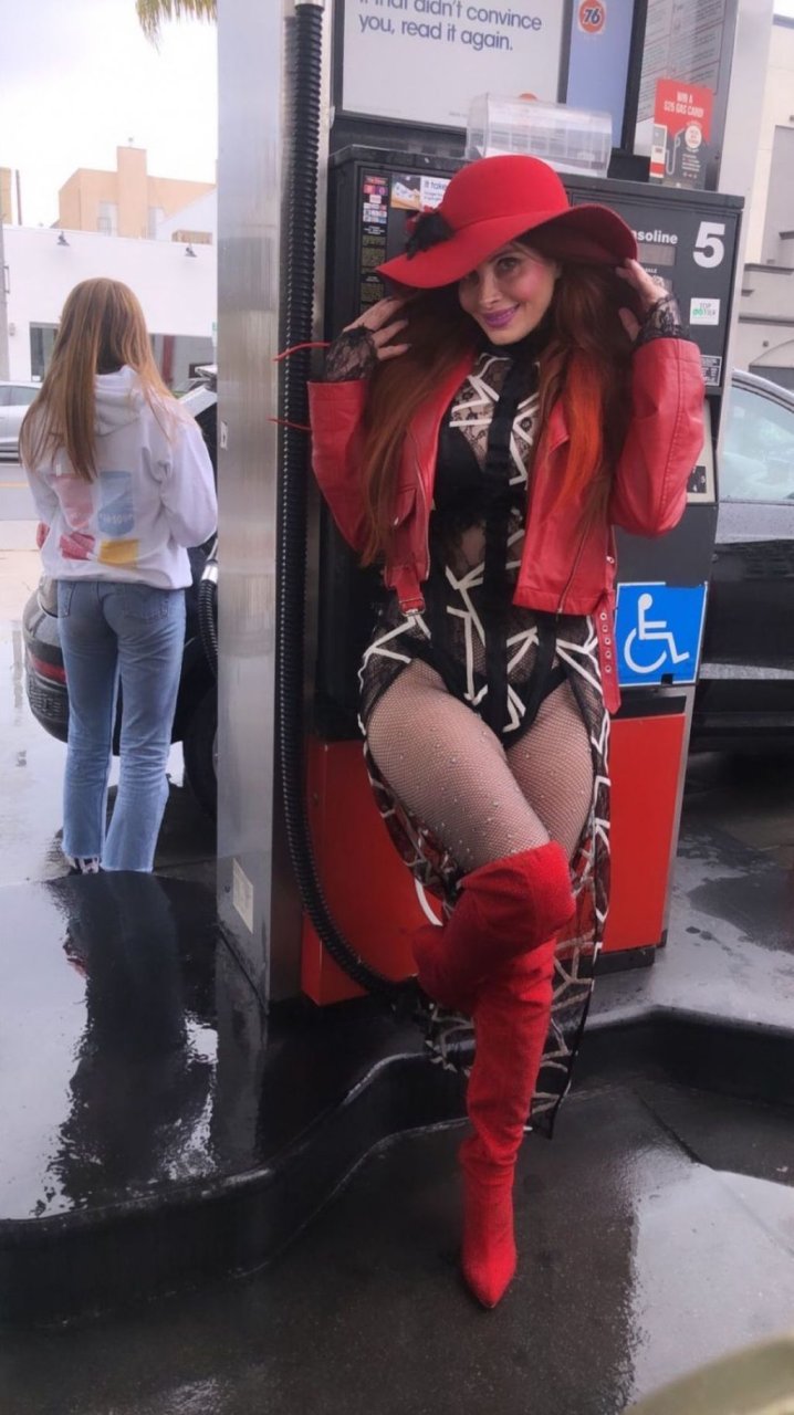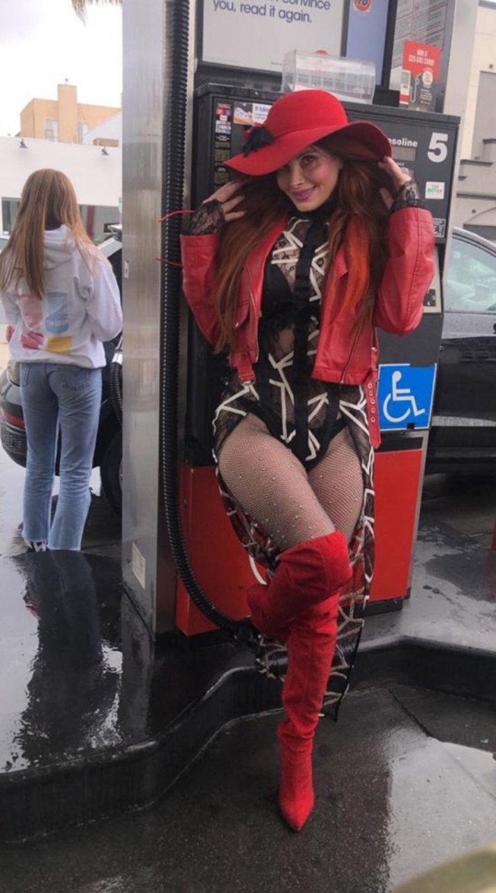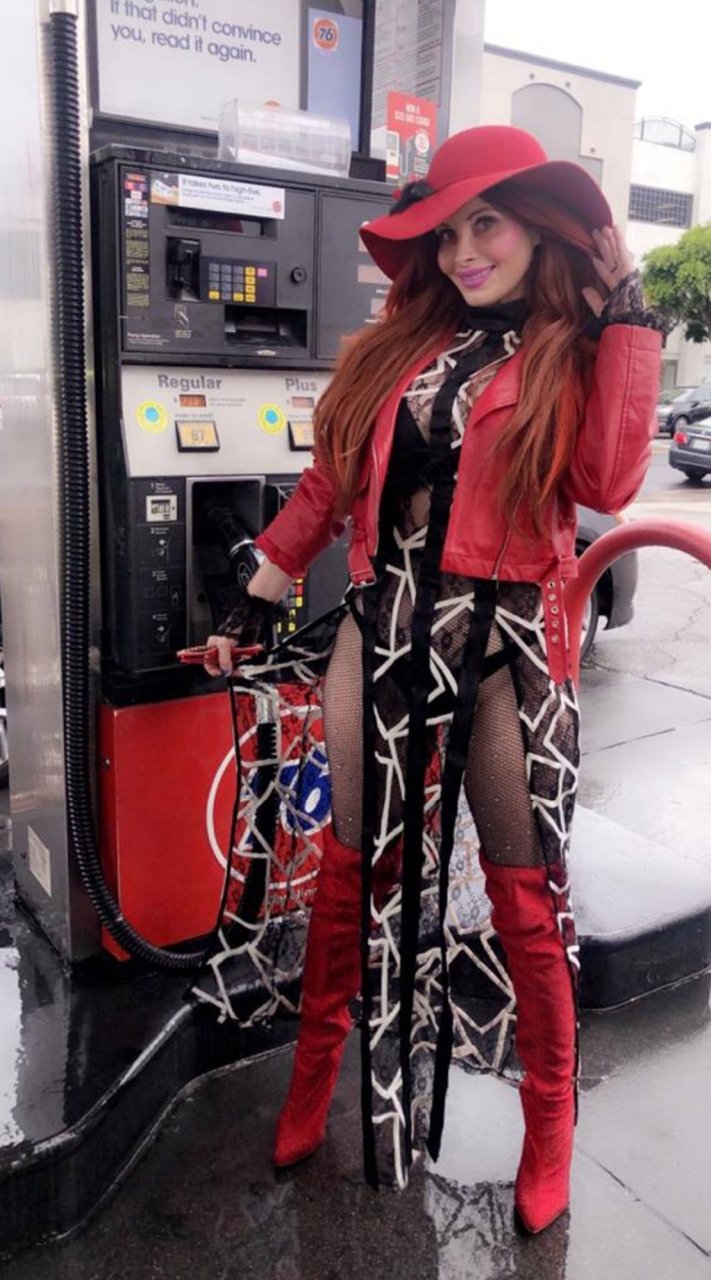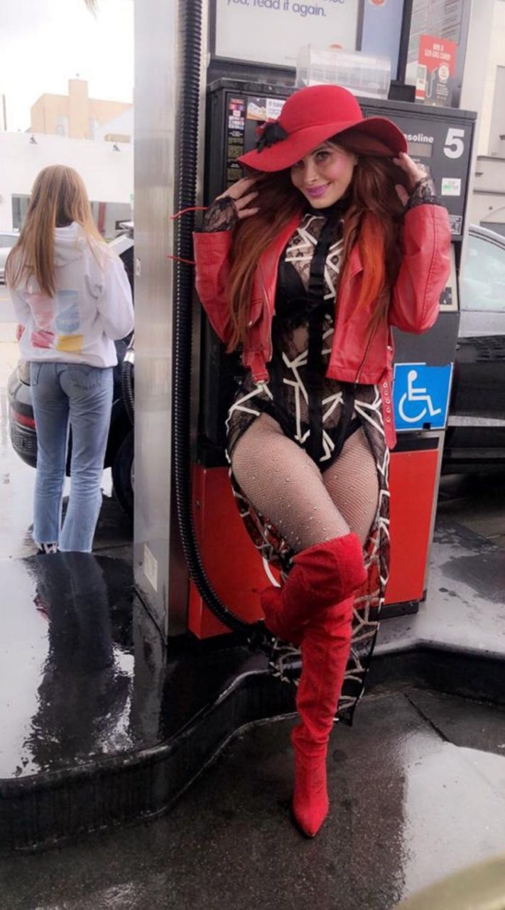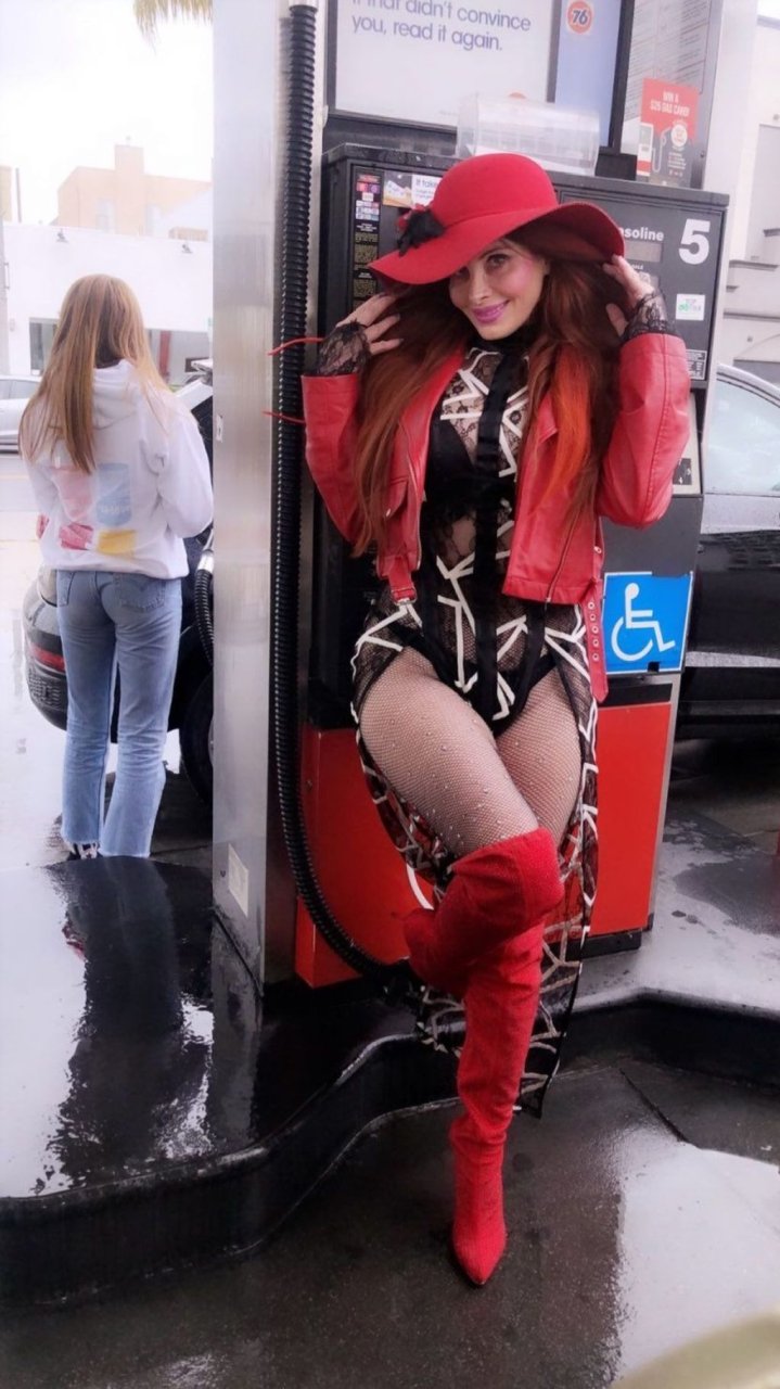 La socialité Phoebe Price entra en modo modelo mientras posa para fotos mientras llena su auto en Beverly Hills, 22/05/2019.