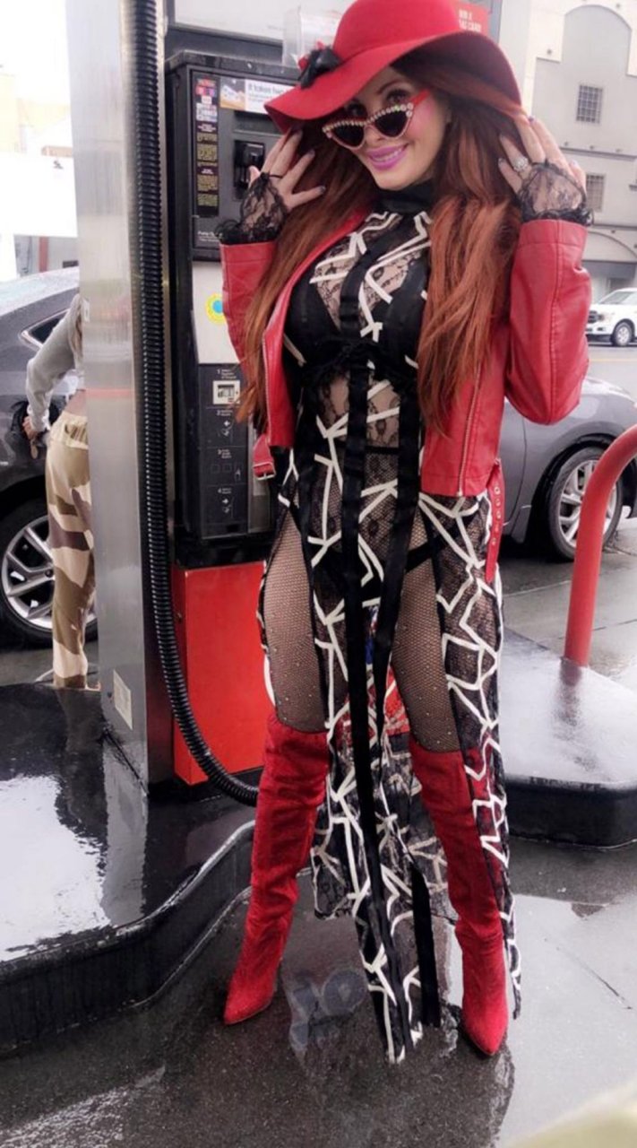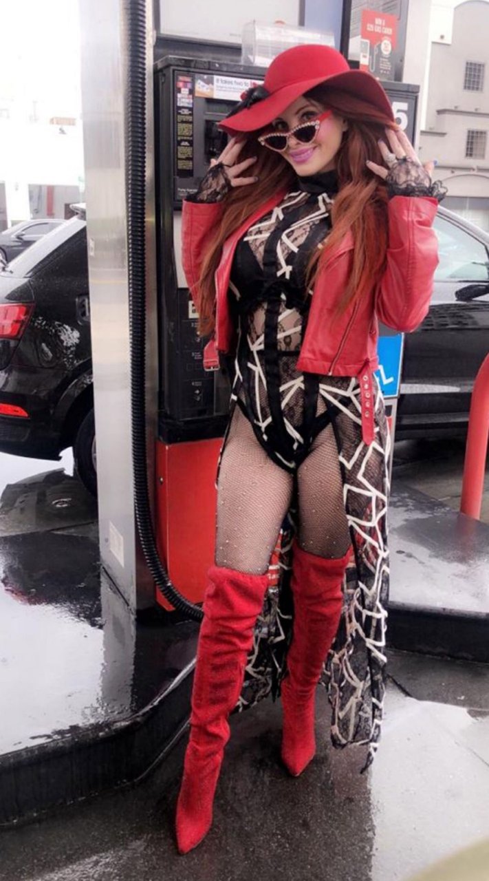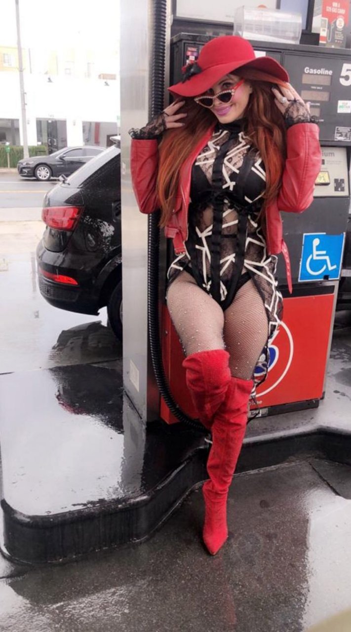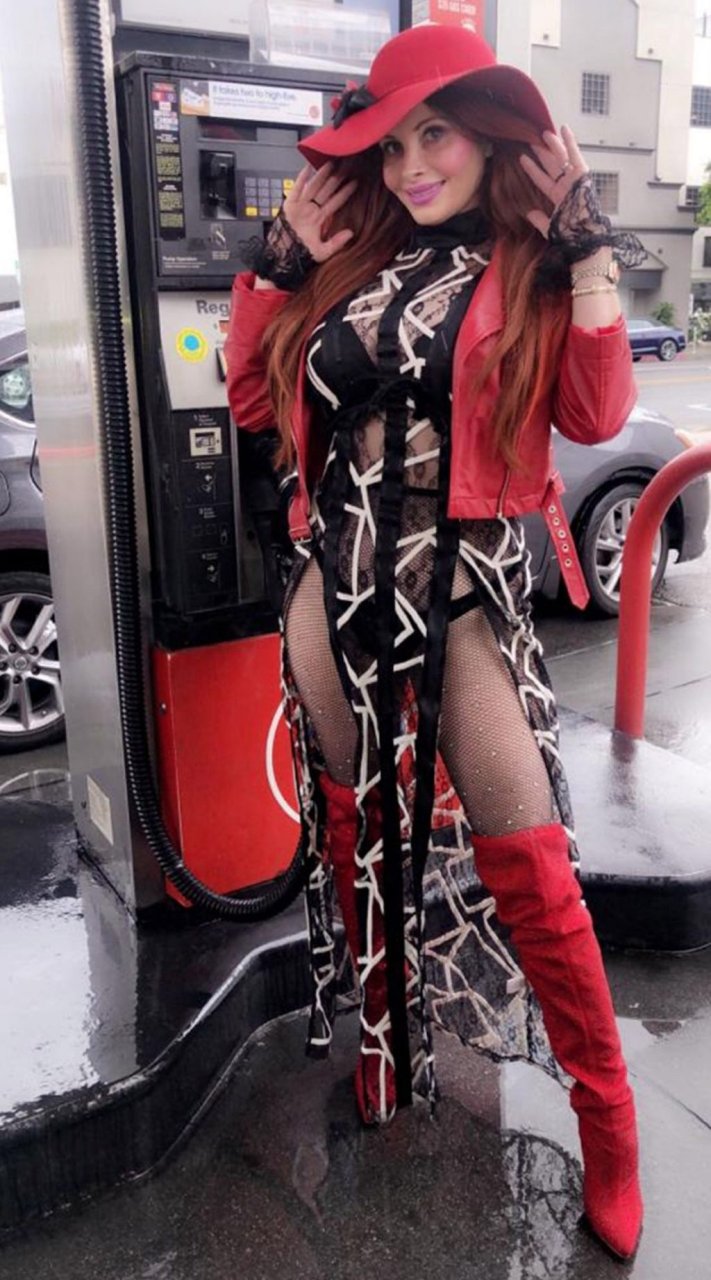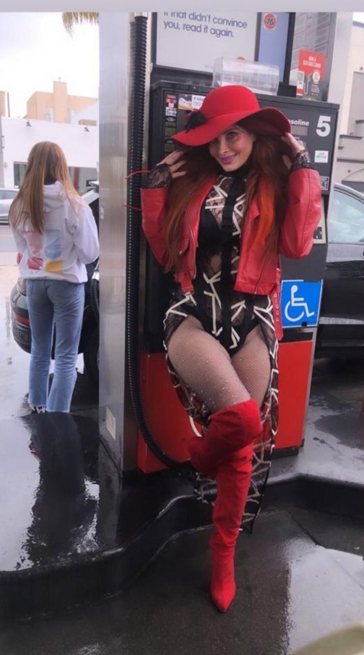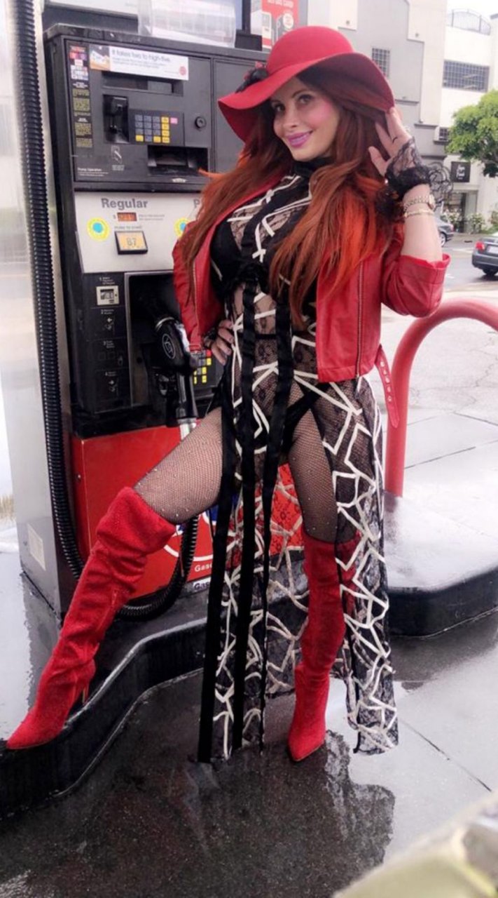 La socialité Phoebe Price entra en modo modelo mientras posa para fotos mientras llena su auto en Beverly Hills, 22/05/2019.