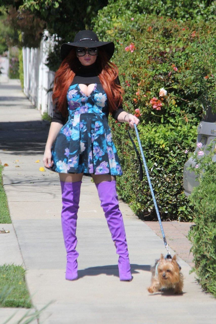Phoebe Price pasea a su amado perro por el vecindario y de repente se detiene para recoger mandarinas de un gran mandarino – Los Ángeles, 28/03/2019.
