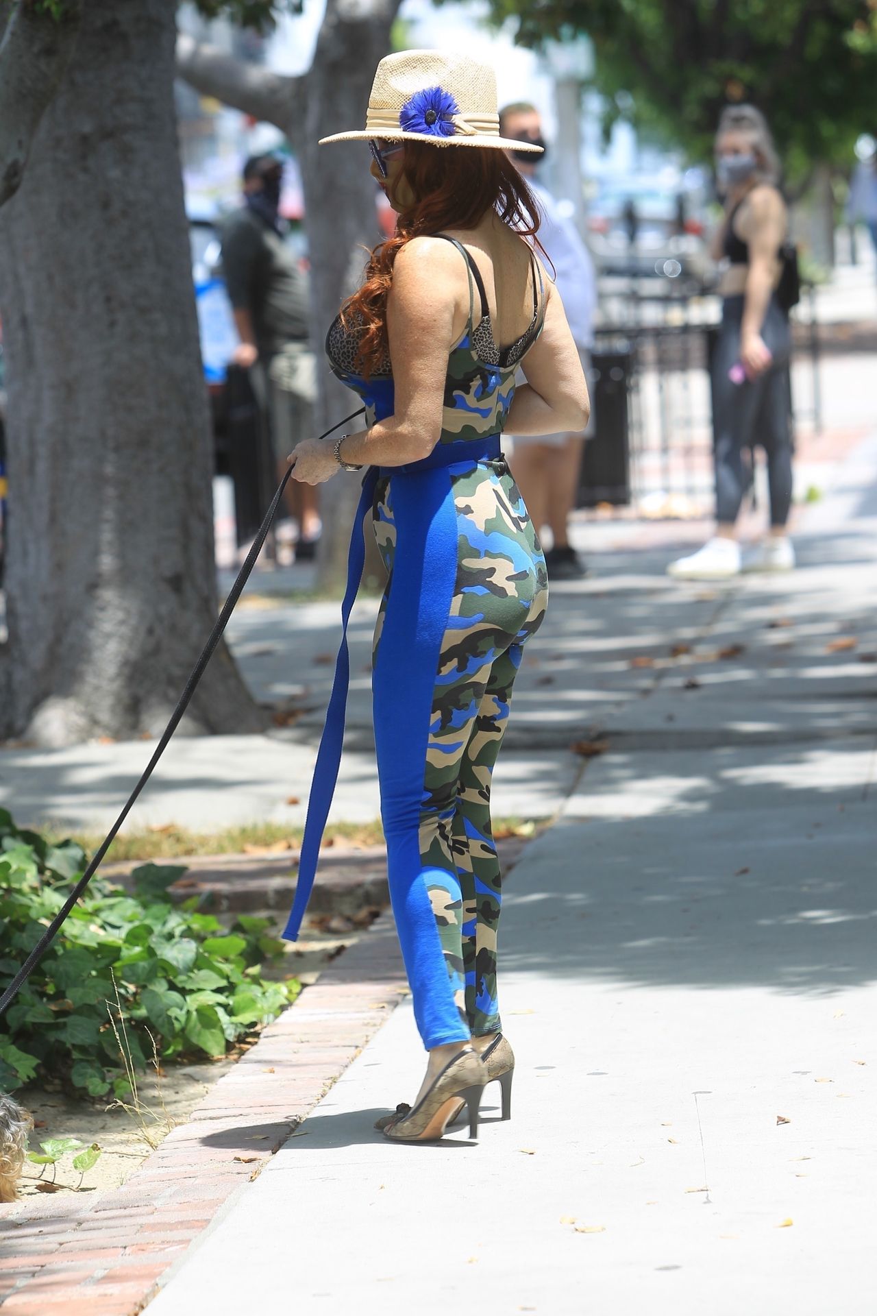 La actriz voluptuosa Phoebe Price pasea a su perro por Hollywood, 25/06/2020.