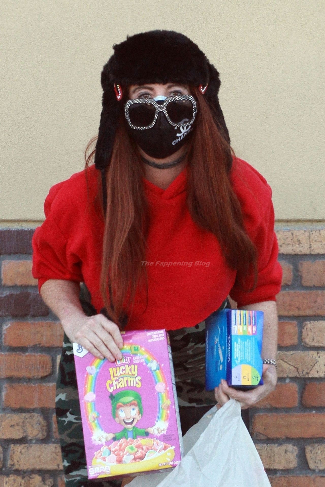Actriz Phoebe Price es vista comprando tampones y Lucky Charms en una farmacia CVS el lunes.